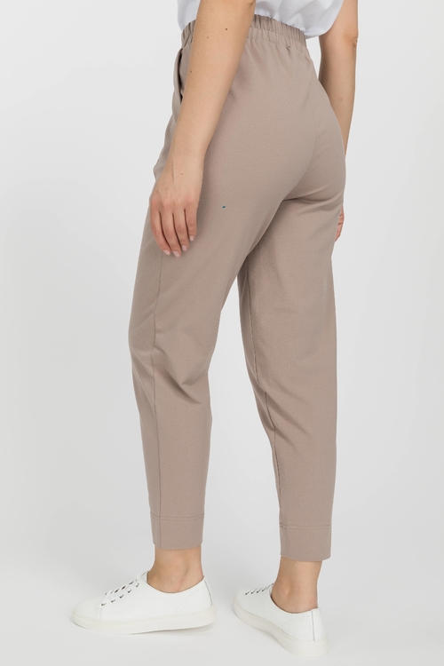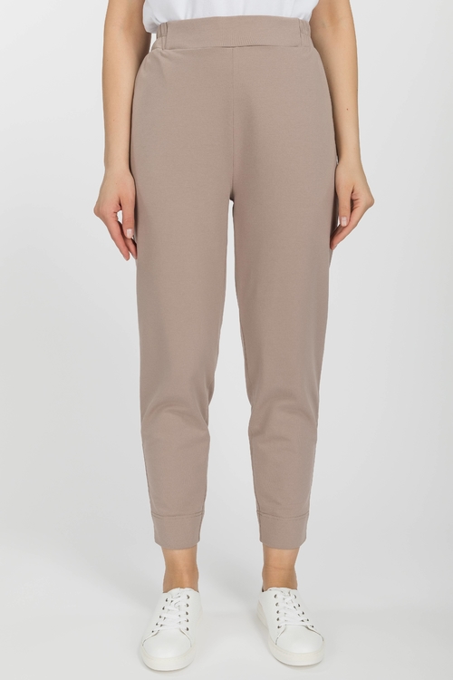 Описание: Повседневные брюки-бананы из хлопкового футера 2х нитки (без начеса). Модель с карманами. Пояс с планкой и эластичной лентой внутри. Длина брюк регулируется отворотами. Рост модели 177см.