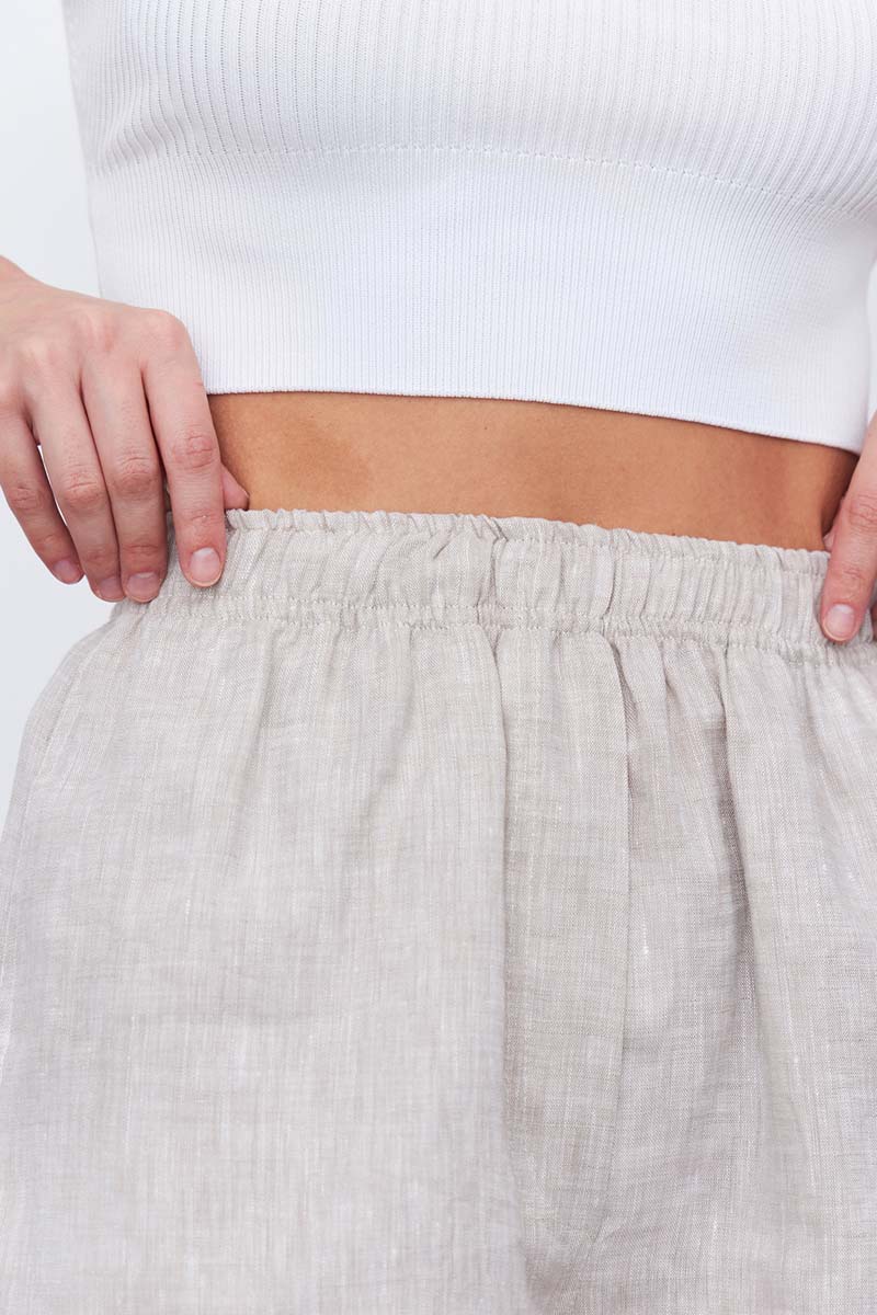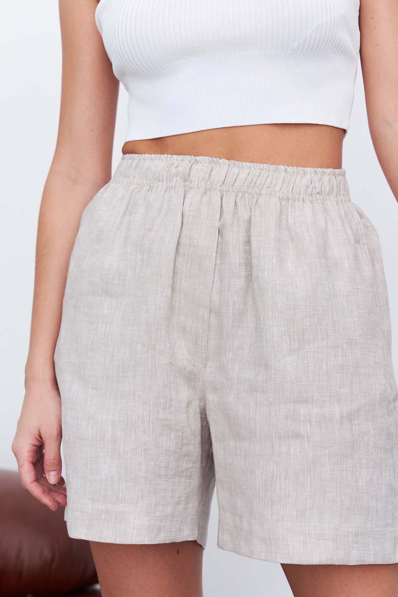 Шорты с высокой из натурального высококачественного льна, цвета шалфей, подойдут для создания непринужденного городского или домашнего образа. Шорты можно дополнить короткой или длинной рубашкой Ypsilon на пуговицах. Такой комплект—идеальный вариант для тех, кто ценит качество и минимализм. Сделано в России на собственном производстве.