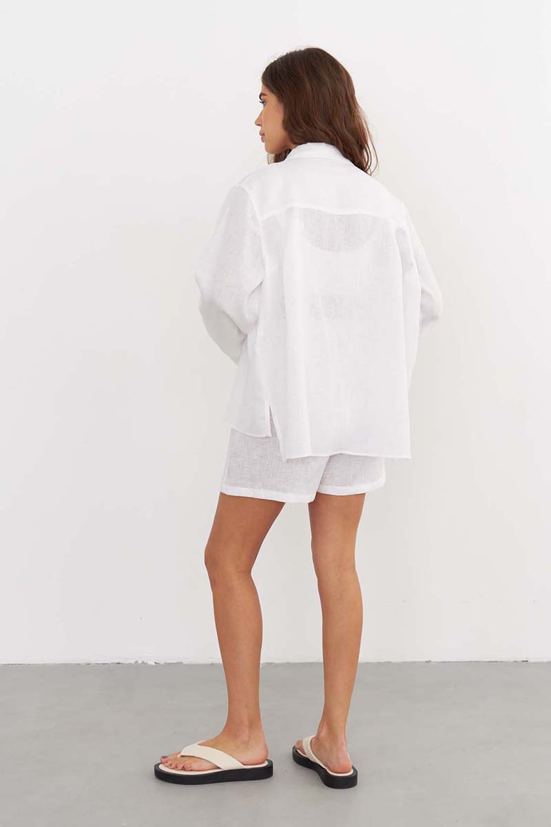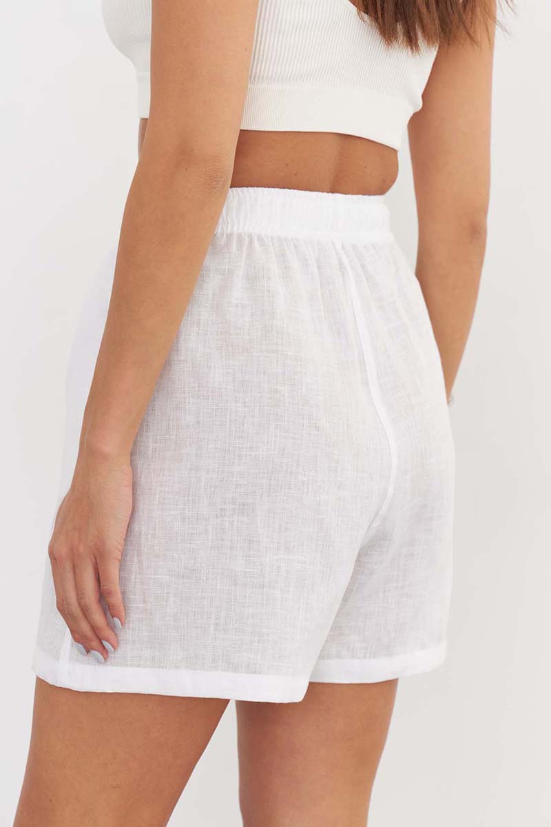 Шорты с высокой из натурального высококачественного льна, белого цвета , подойдут для создания непринужденного городского или домашнего образа. Шорты можно дополнить короткой или длинной рубашкой Ypsilon на пуговицах. Такой комплект—идеальный вариант для тех, кто ценит качество и минимализм. Сделано в России на собственном производстве.
