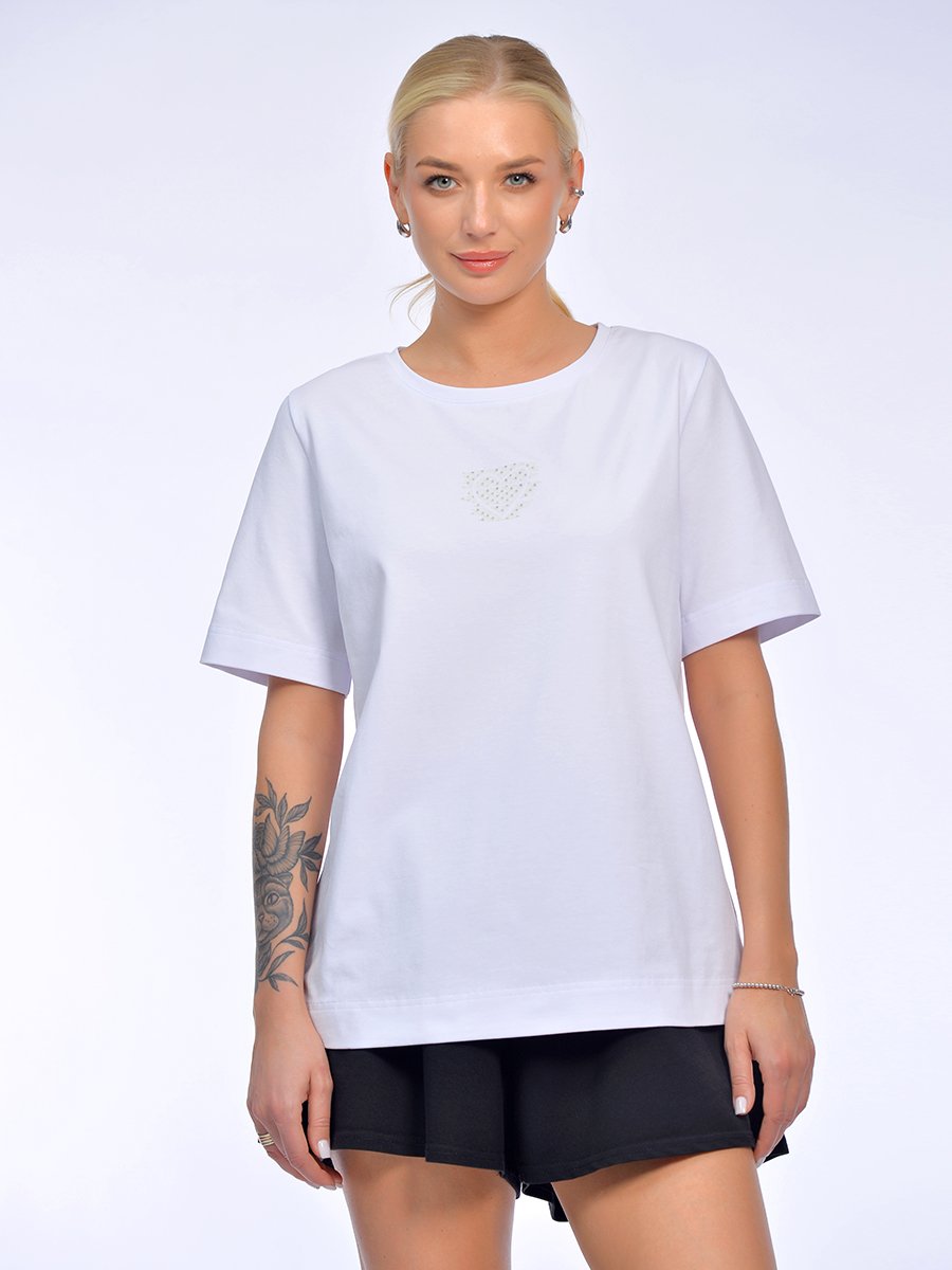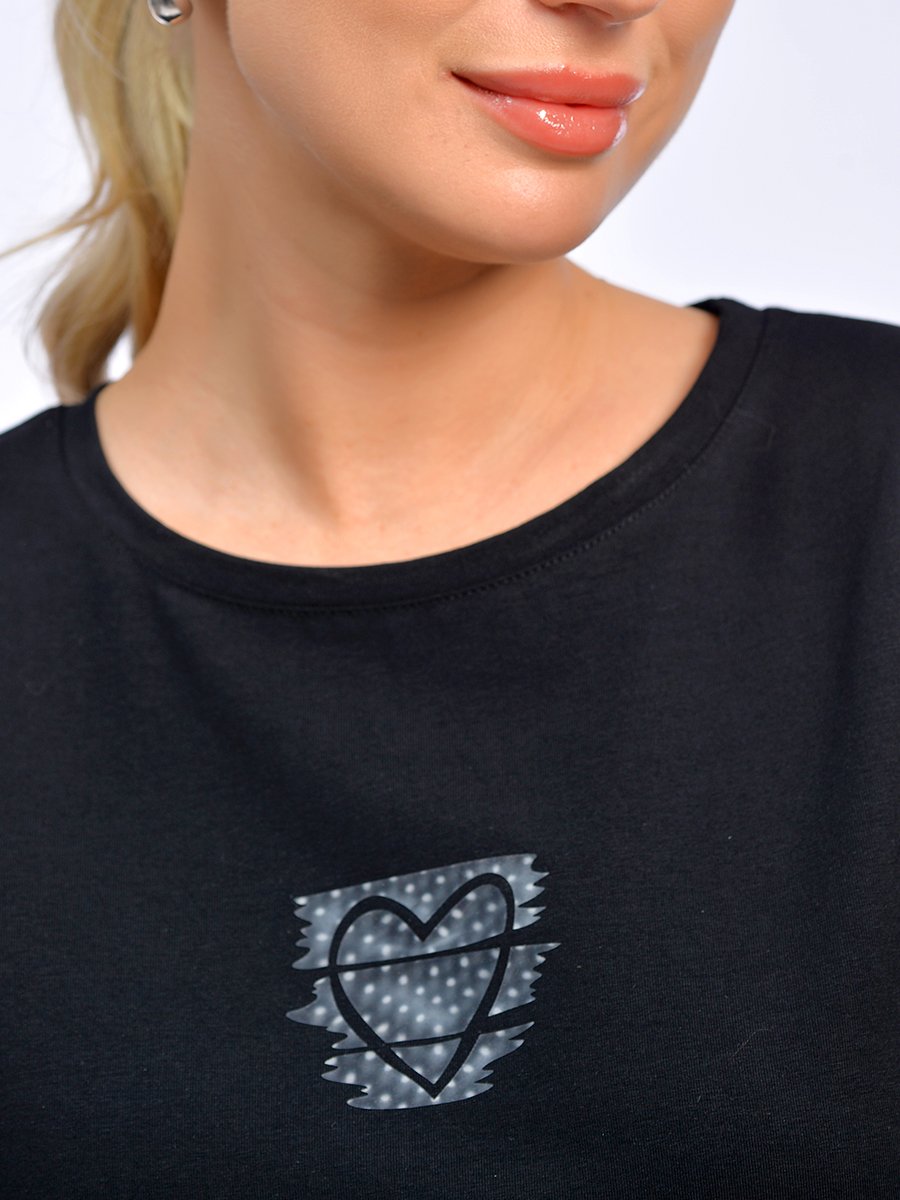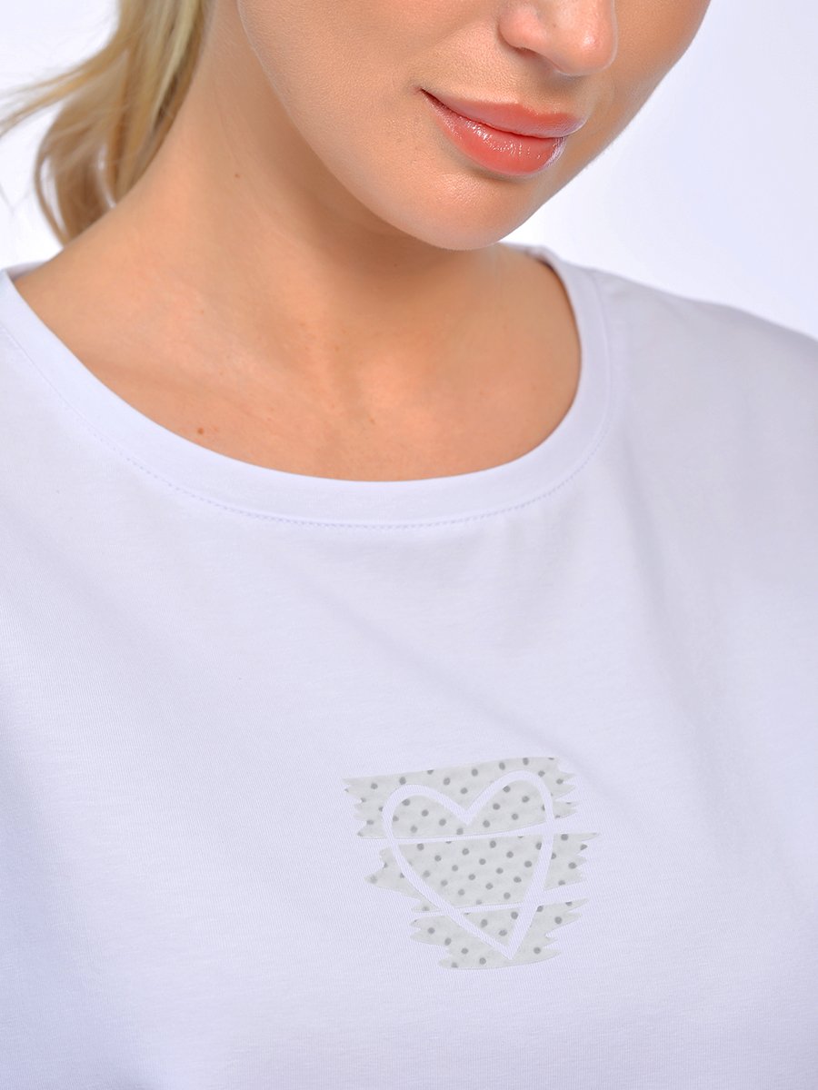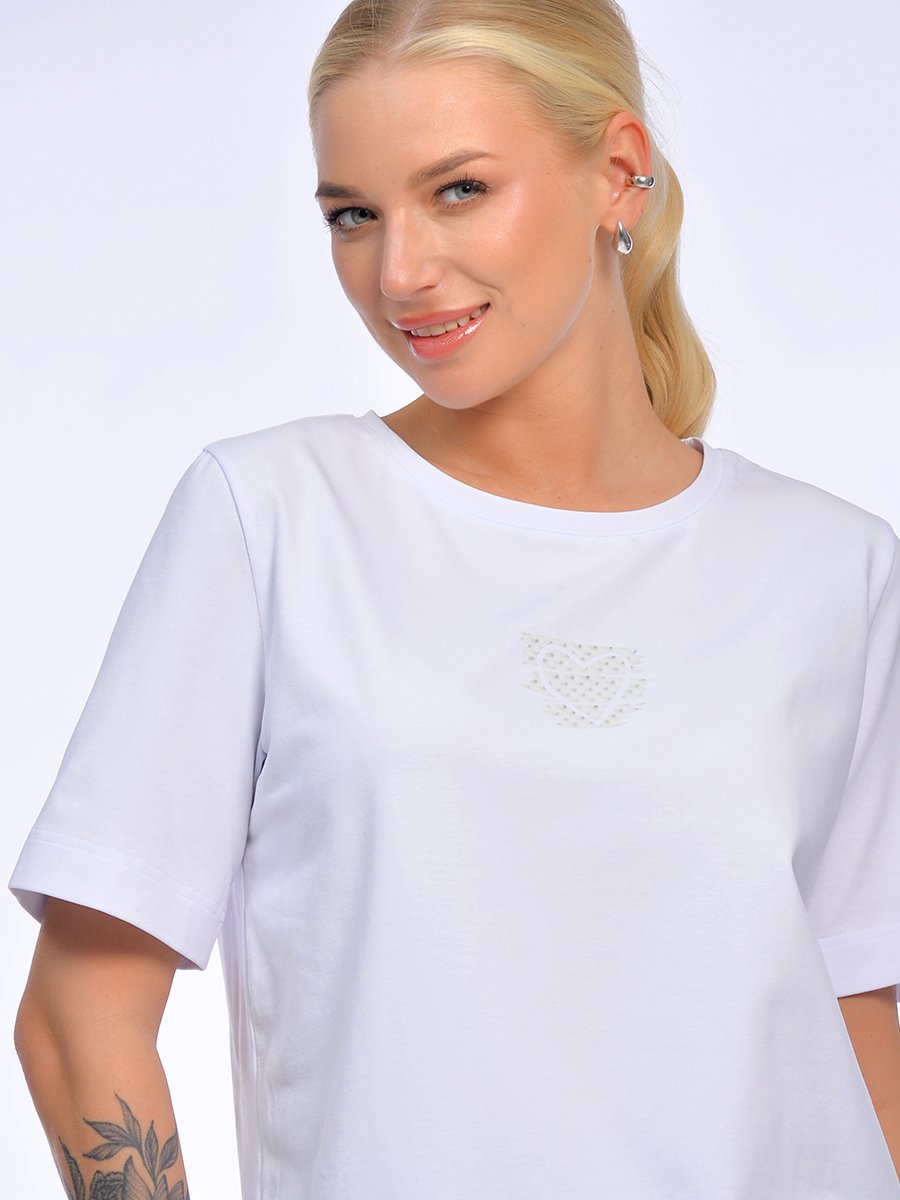 Базовая футболка с инновационным 3D эффектом глубины и объема. Бело-Черная классика+WOW принт . Полотно премиум качества 95% хлопка и 5% эластана обеспечивает безупречную посадку на фигуре. Трикотаж плотностью 190 г м2 достаточно плотный, приятный к телу, не просвечивает и не пилингуется. Эластан в составе гарантирует сохранность формы изделия после носки и стирки, футболка не вытягивается и не перекручивается по боковым швам. Классический свободный силуэт с втачным рукавом, аккуратная горловина и идеальные швы. Широкая подгибка по низу рукавов и по низу изделия придает футболке структурность и премиальный внешний вид. Не облегает, но и не создает лишнего объема, баланс формы и качества. Принт в виде сердца по центру полочки в цвет изделия из 3D пленки, выглядит как дорогая не кричащая деталь, которая однозначно привлечет к себе внимание! Эффект глубины раскрывается максимально деликатно, создает игру света и объема. Футболка подходит под любой образ, любой возраст и стиль.