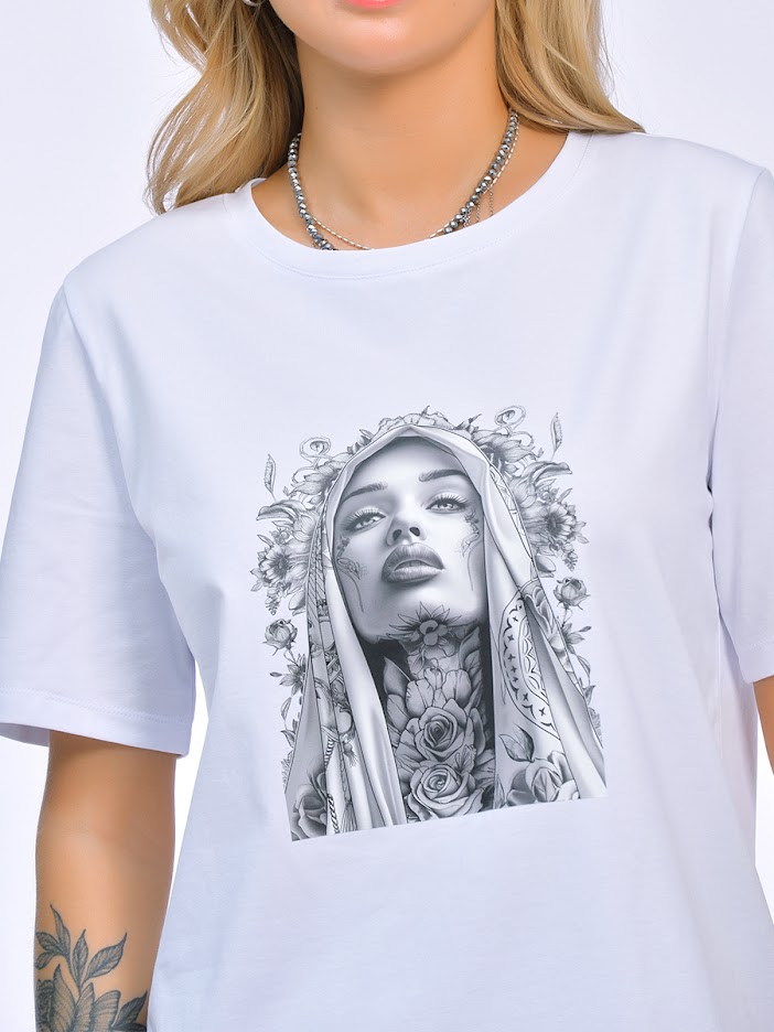 Фуфайка женская с круглым вырезом и коротким рукавом. Изделие полуприлегающего силуэта будет не заменимо на отдыхе, в быту и для занятий спортом.