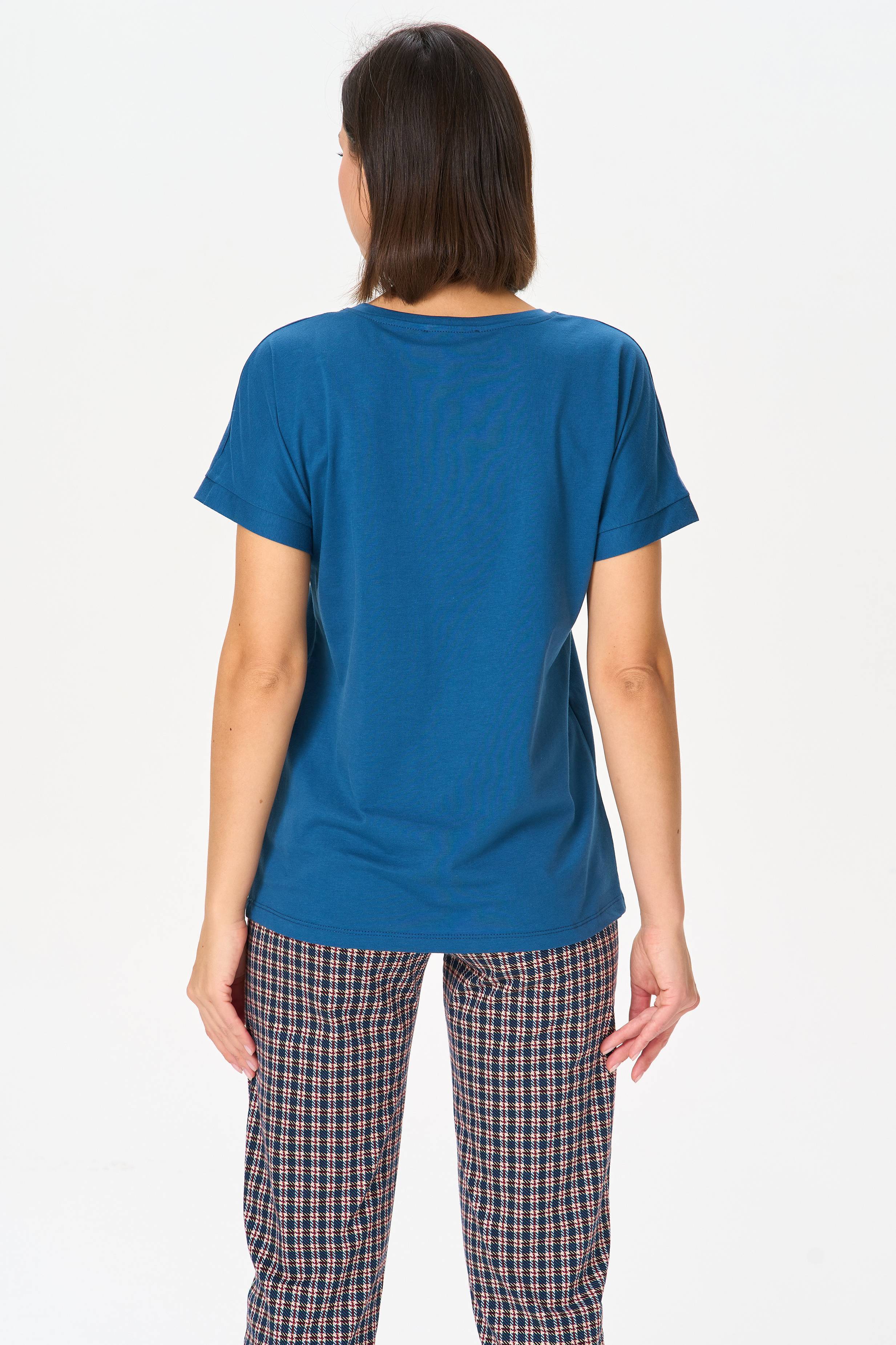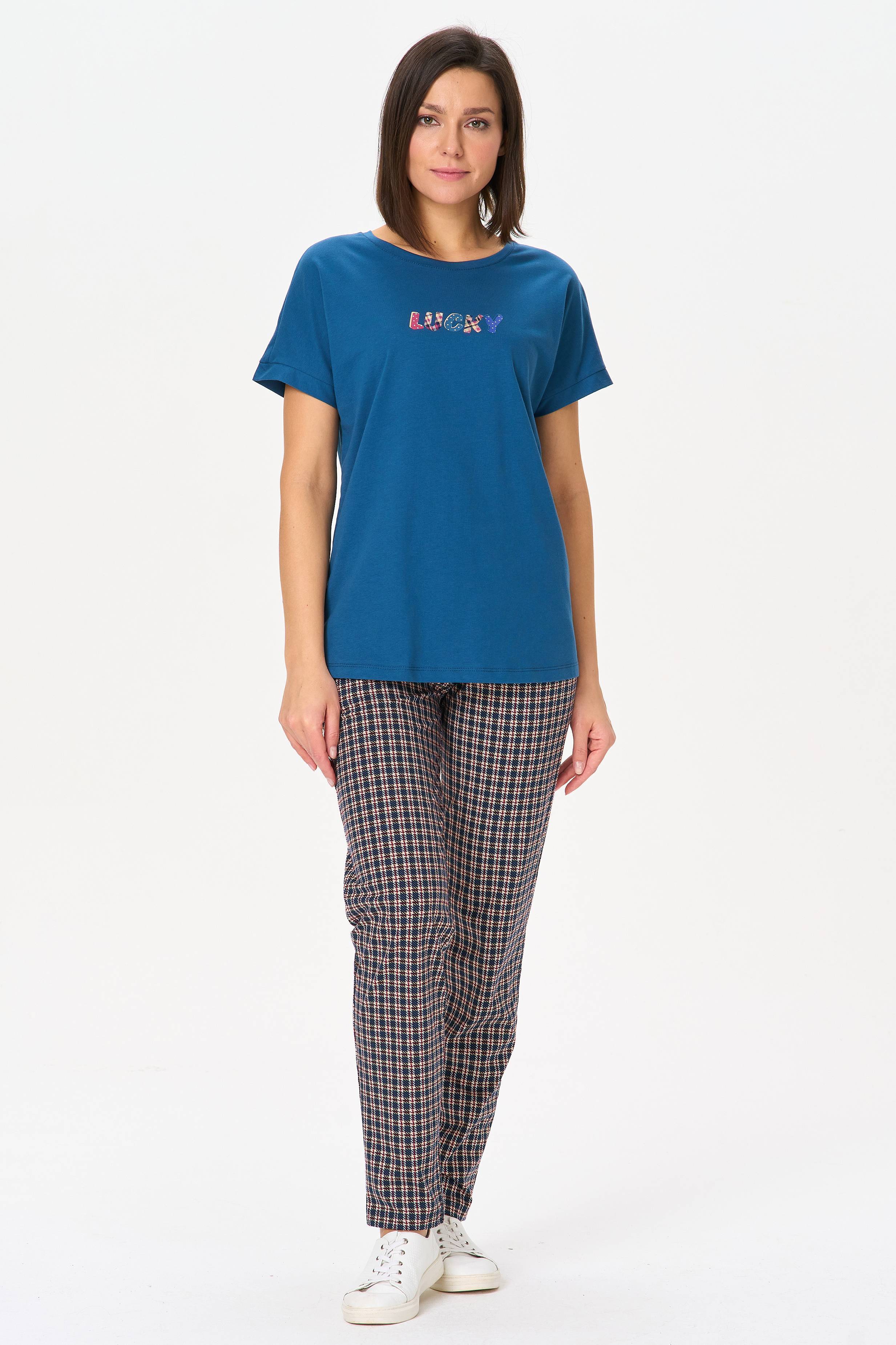 Описание: Футболка с принтом из хлопкового полотна качества пенье. Круглый вырез горловины, цельнокроеные короткие рукава с манжетами. Рост модели на фото 170