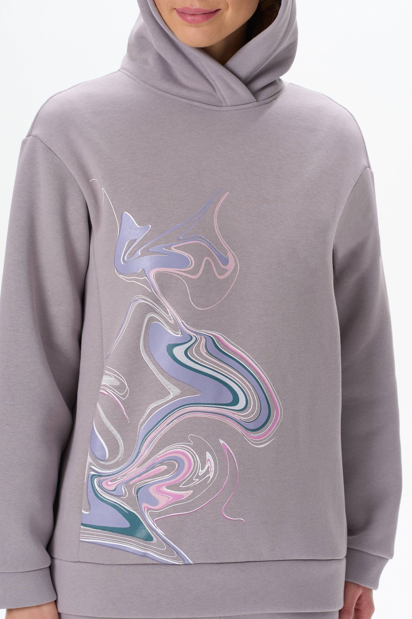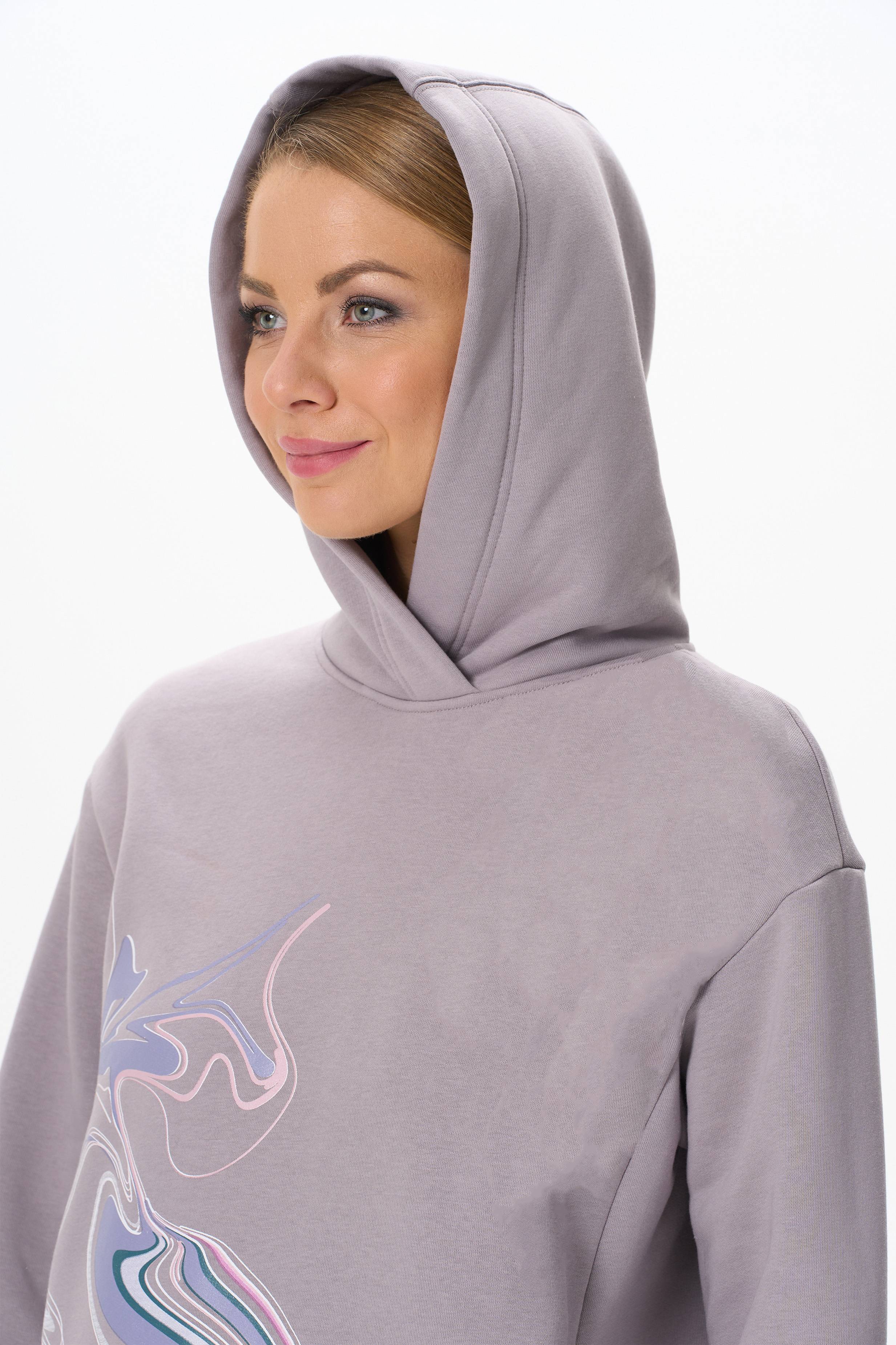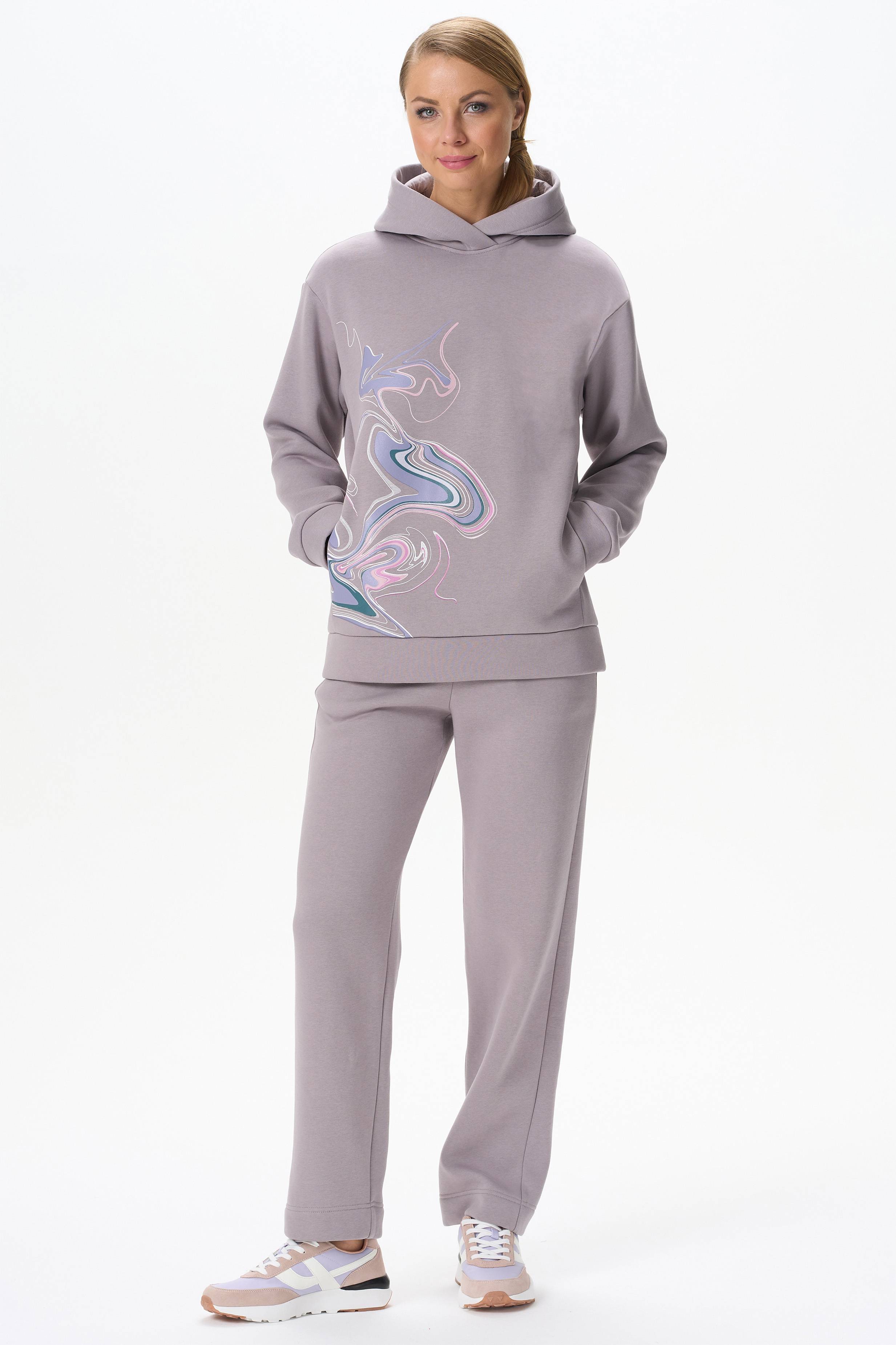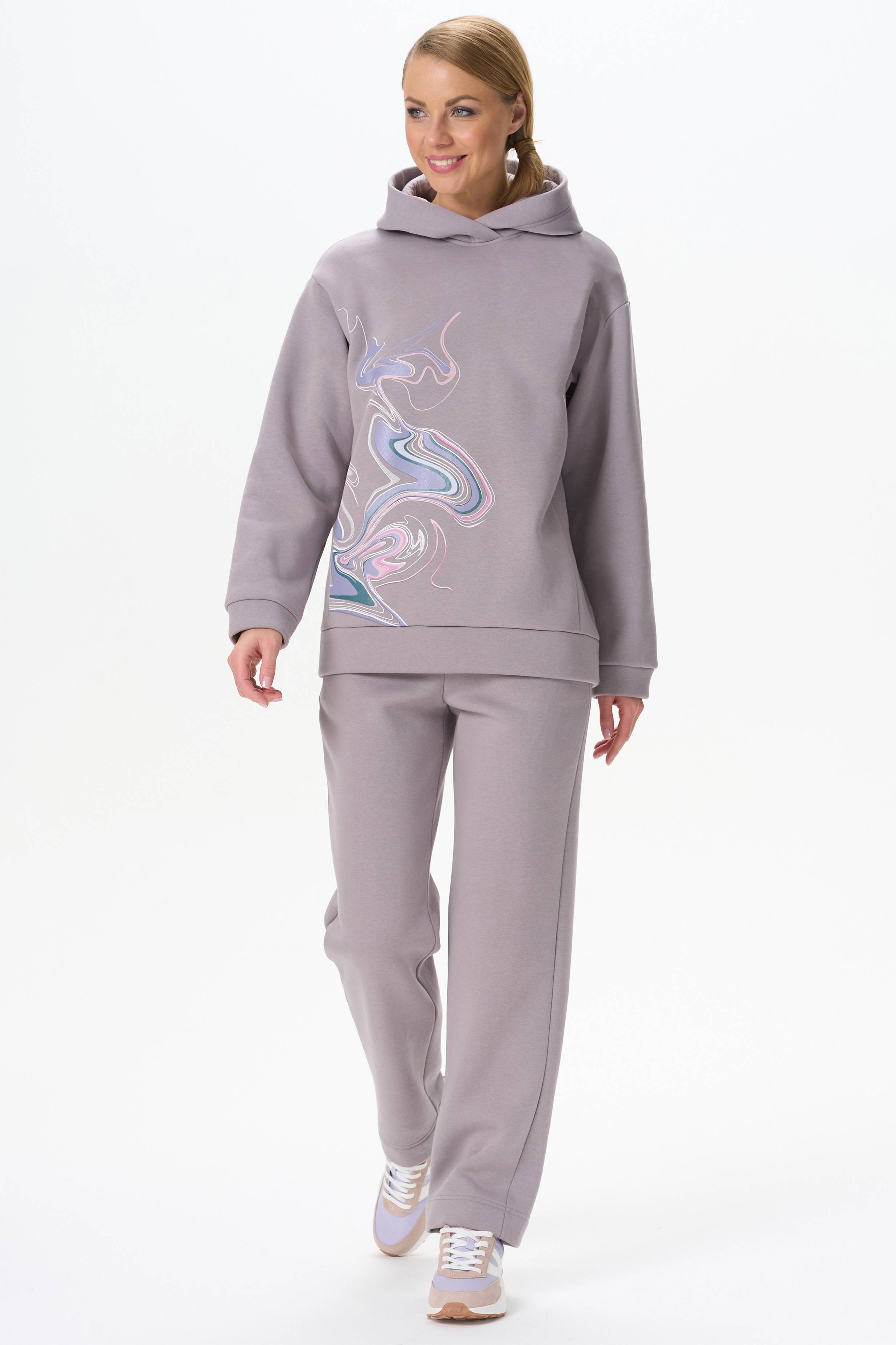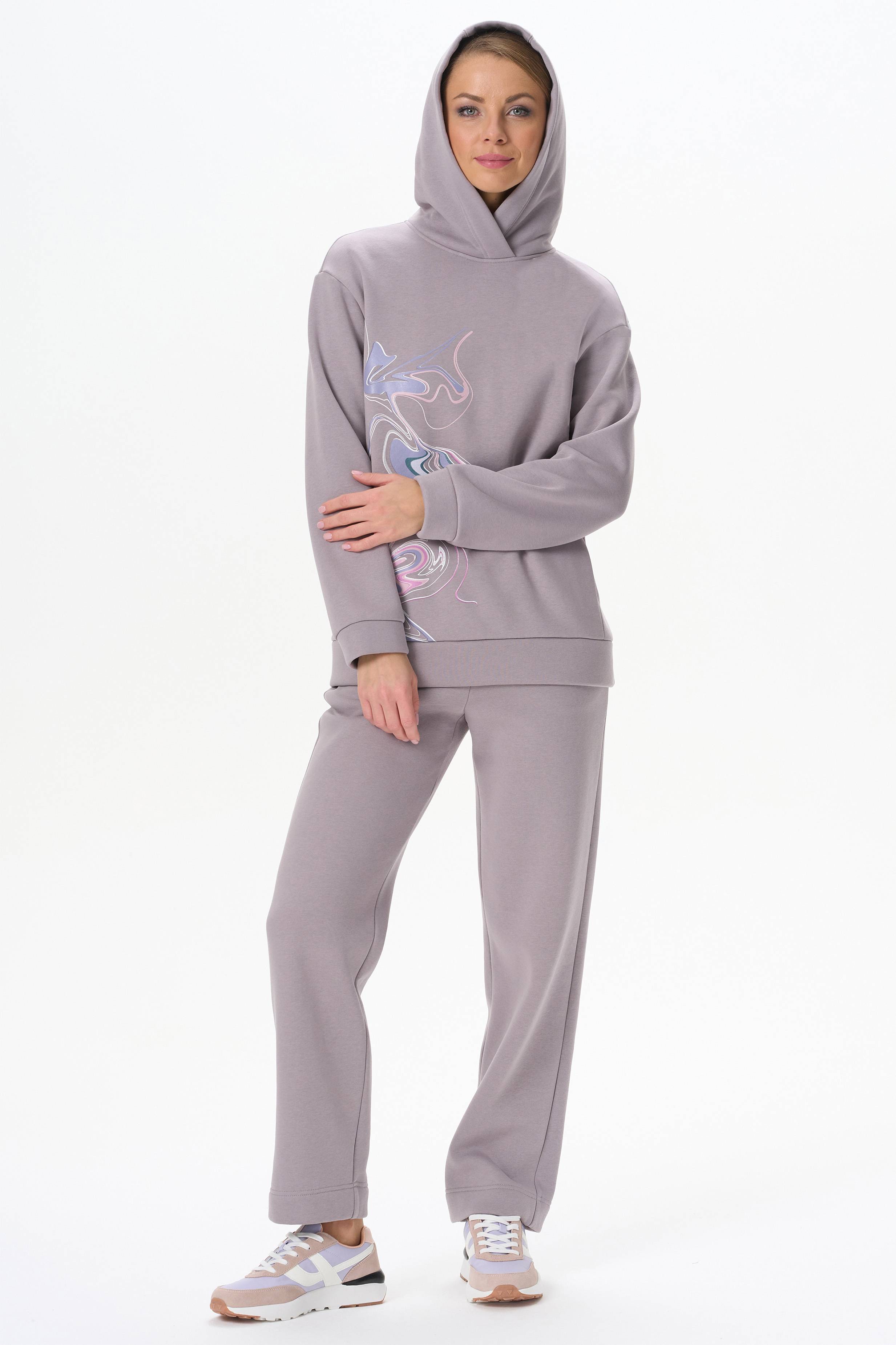 Описание: Комплект из хлопкового футера высого качества 3-х нитки стриженный начес, состоит из толстовки и брюк. Толстовка украшена ярким принтом. Капюшон на подкладке, карманы в рельефных швах. Длинные прямые брюки с карманами и поясом с эластичной тесьмой внутри. Рост модели на фото 177