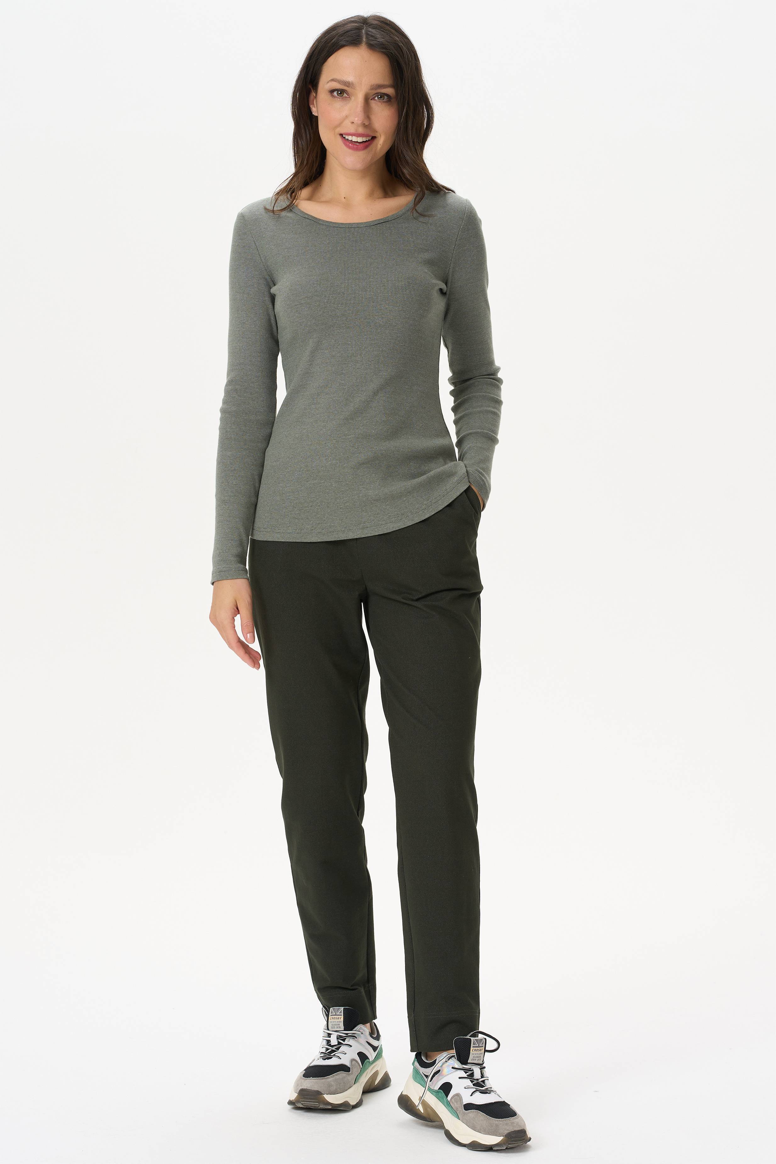 Описание: Повседневный лонгслив из хлопкового полотна с эластаном. Круглый вырез горловины, длинные втачные рукава. Рост модели на 177.