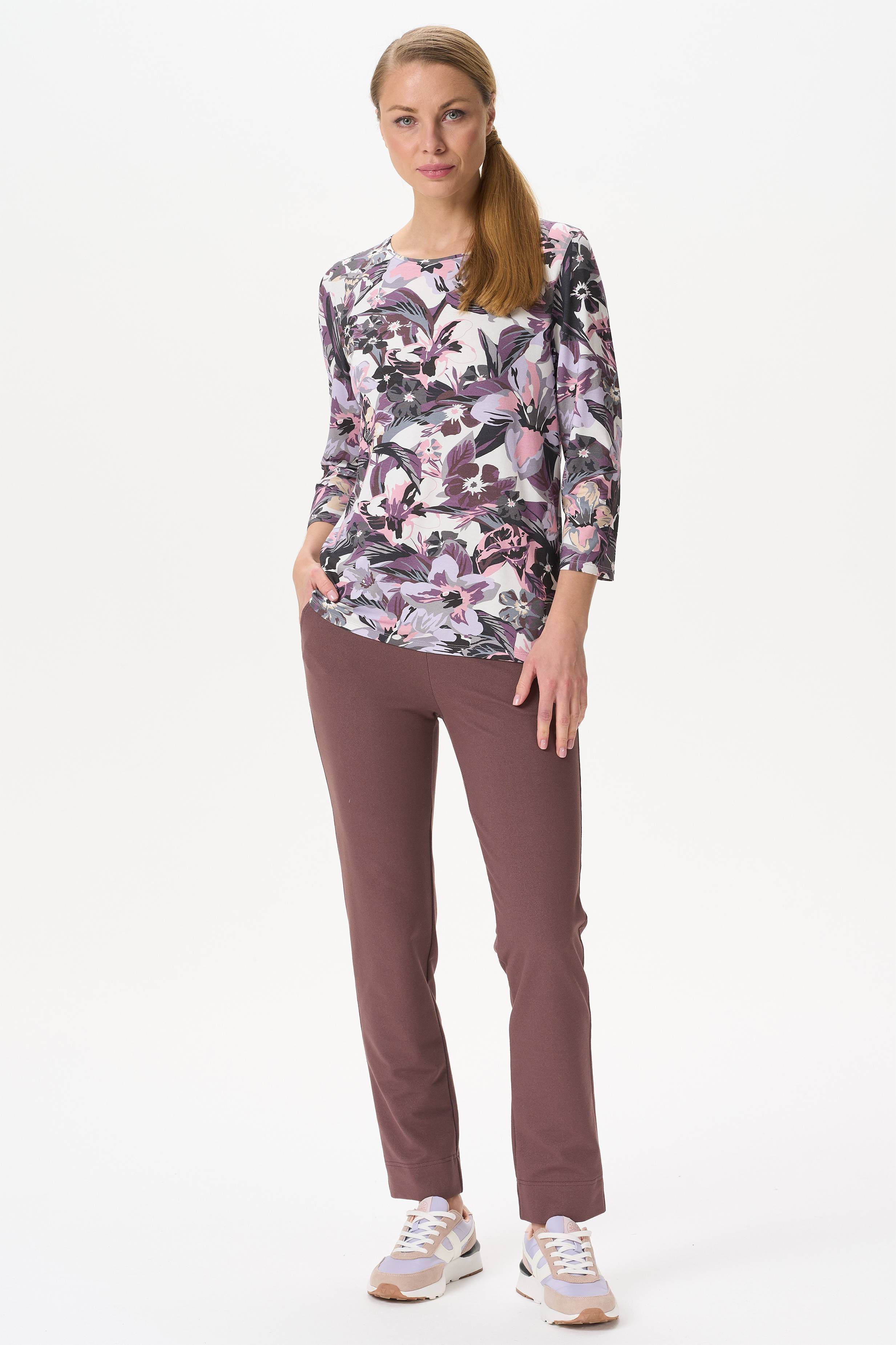 Описание: Повседневная блузка из вискозного полотна прямого покроя. Круглый вырез горловины, длинные втачные рукава. Рост модели на фото 177 см.