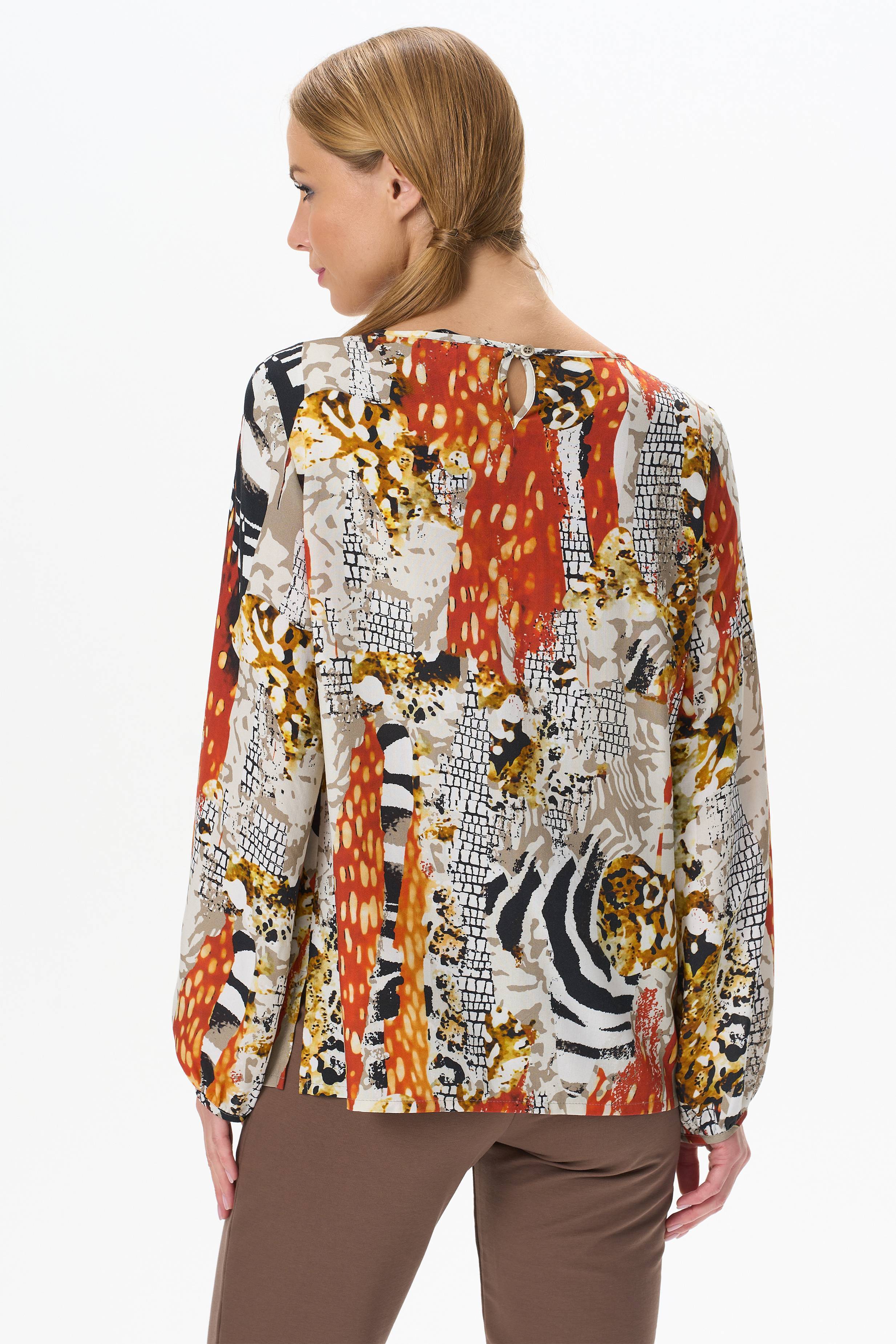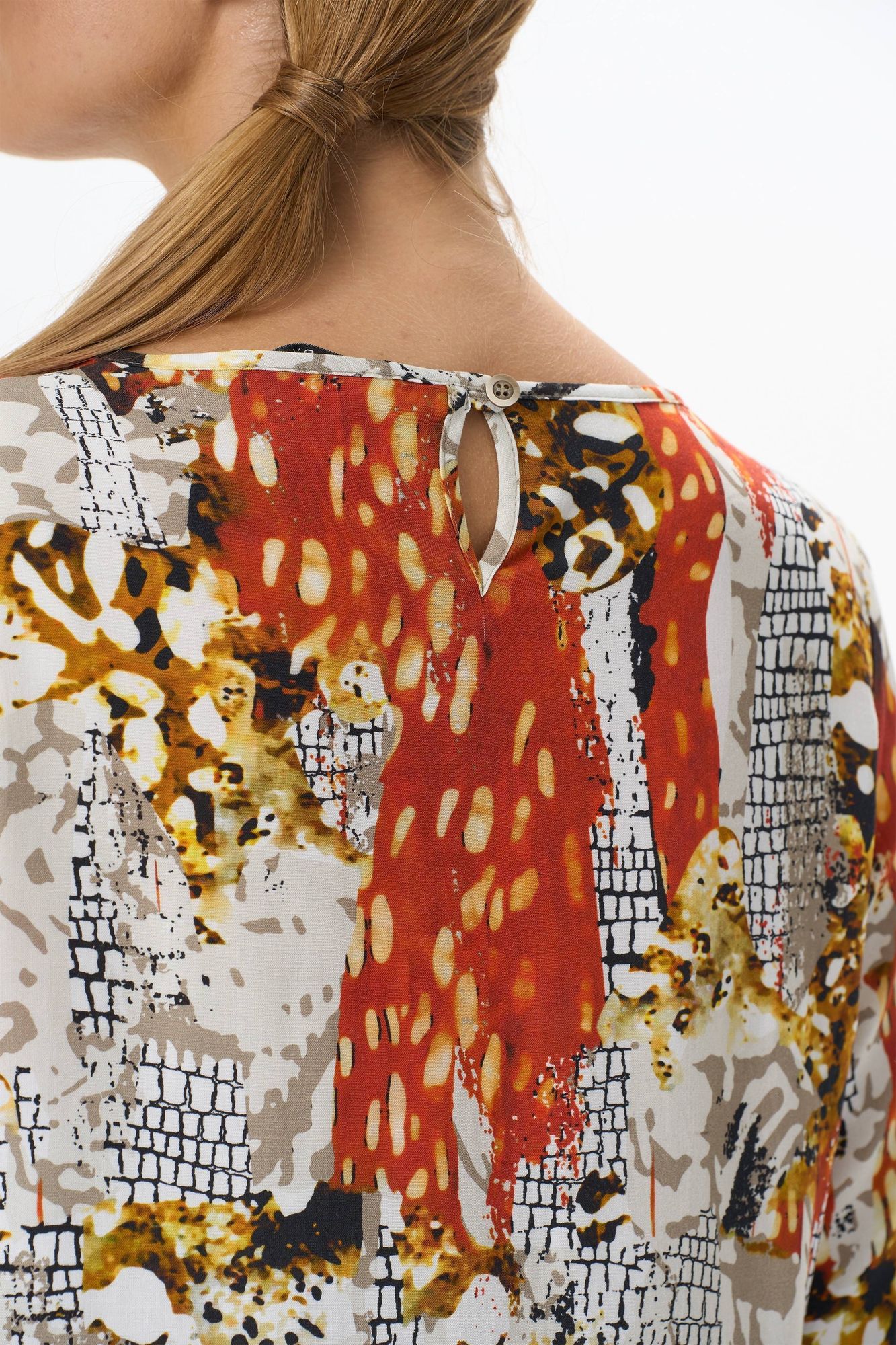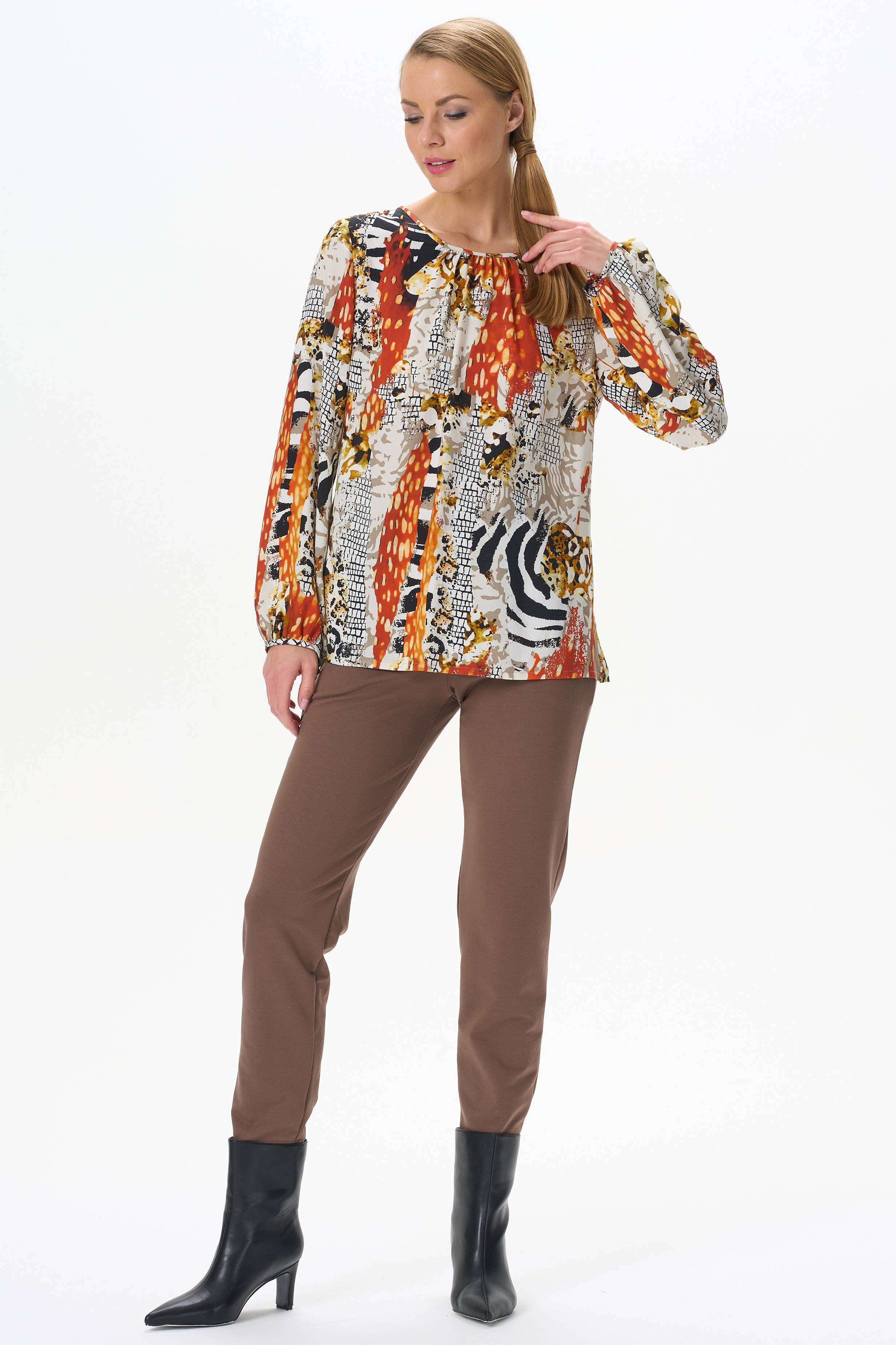 Описание: Блузка из штапеля прямого силуэта. Круглый вырез горловины с застежкой на пуговицу. Длинные втачные рукава с застежкой на пуговицу. По низу в боковых швах разрезы. Рост модели на фото 177