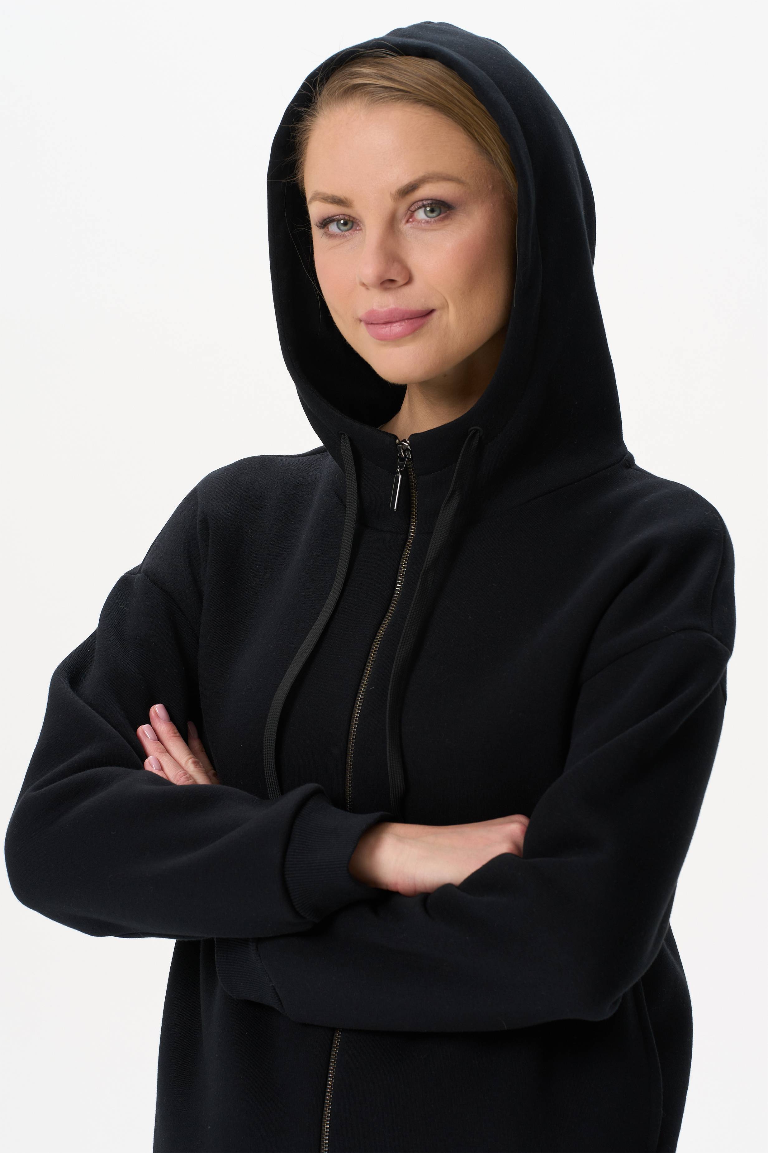 Описание: Утепленная куртка с капюшоном, из хлопкового футера высокого качества 3-х нитки стриженный начес, на молнии. В рельефных швах карманы, спущенная линия плеча, втачные длинные рукава с притачными манжетами. Капюшон на подкладке. По низу куртки притачной пояс. Манжеты и пояс выполнены из хлопкового полотна кашкорсе. Рост модели на фото 177