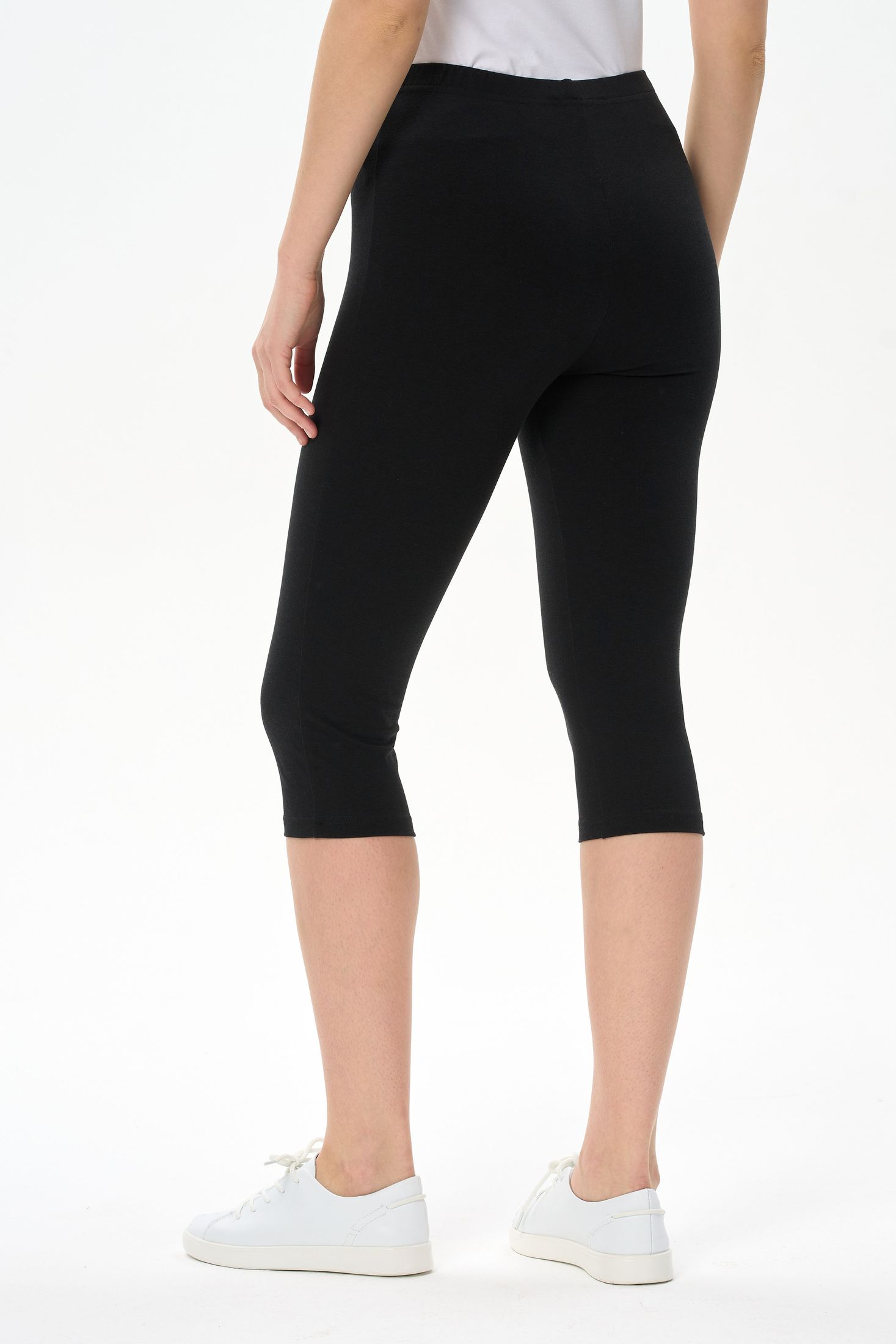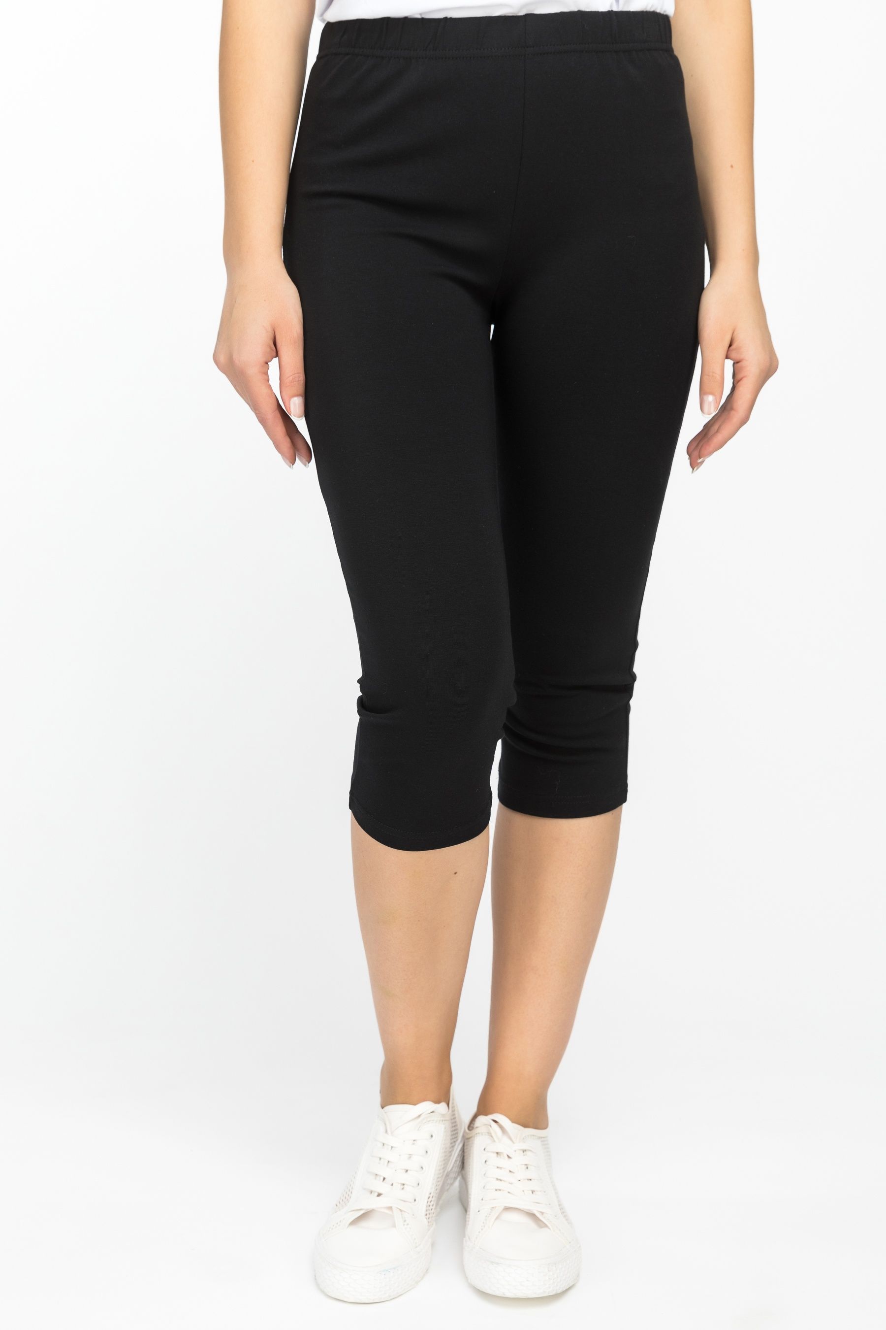 Описание: Комфортные облегающие бриджи выполнены из хлопкового трикотажного полотна с эластаном. Пояс с эластичной лентой внутри. Рост модели на фото 170