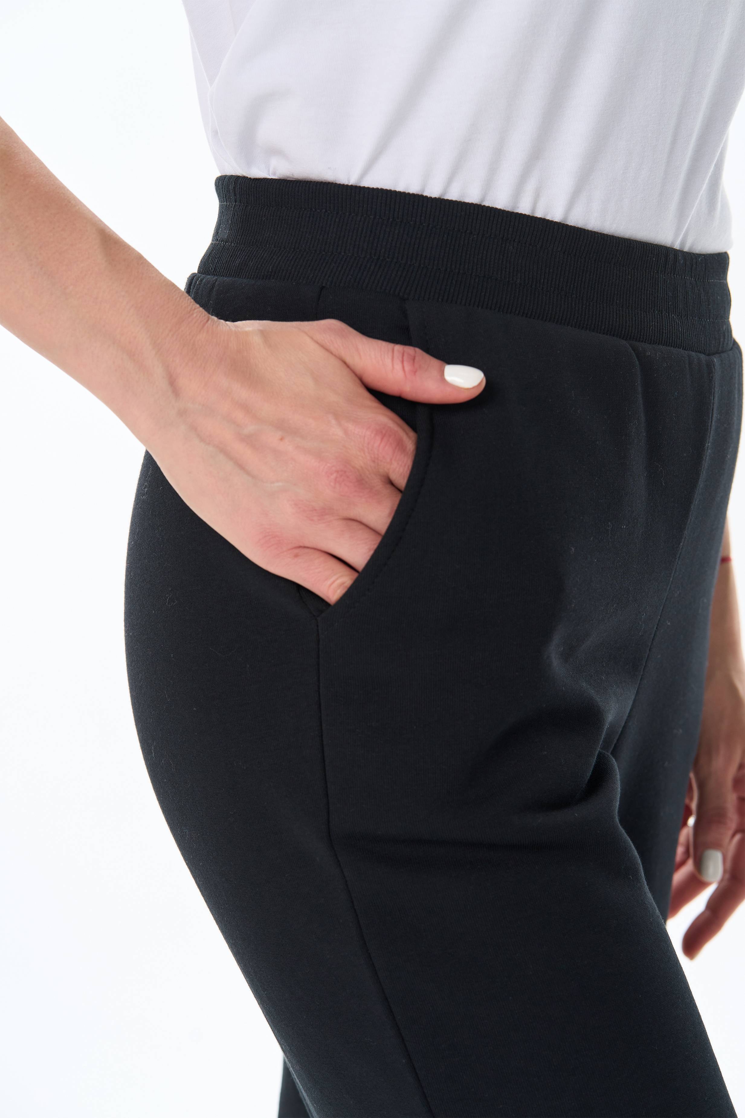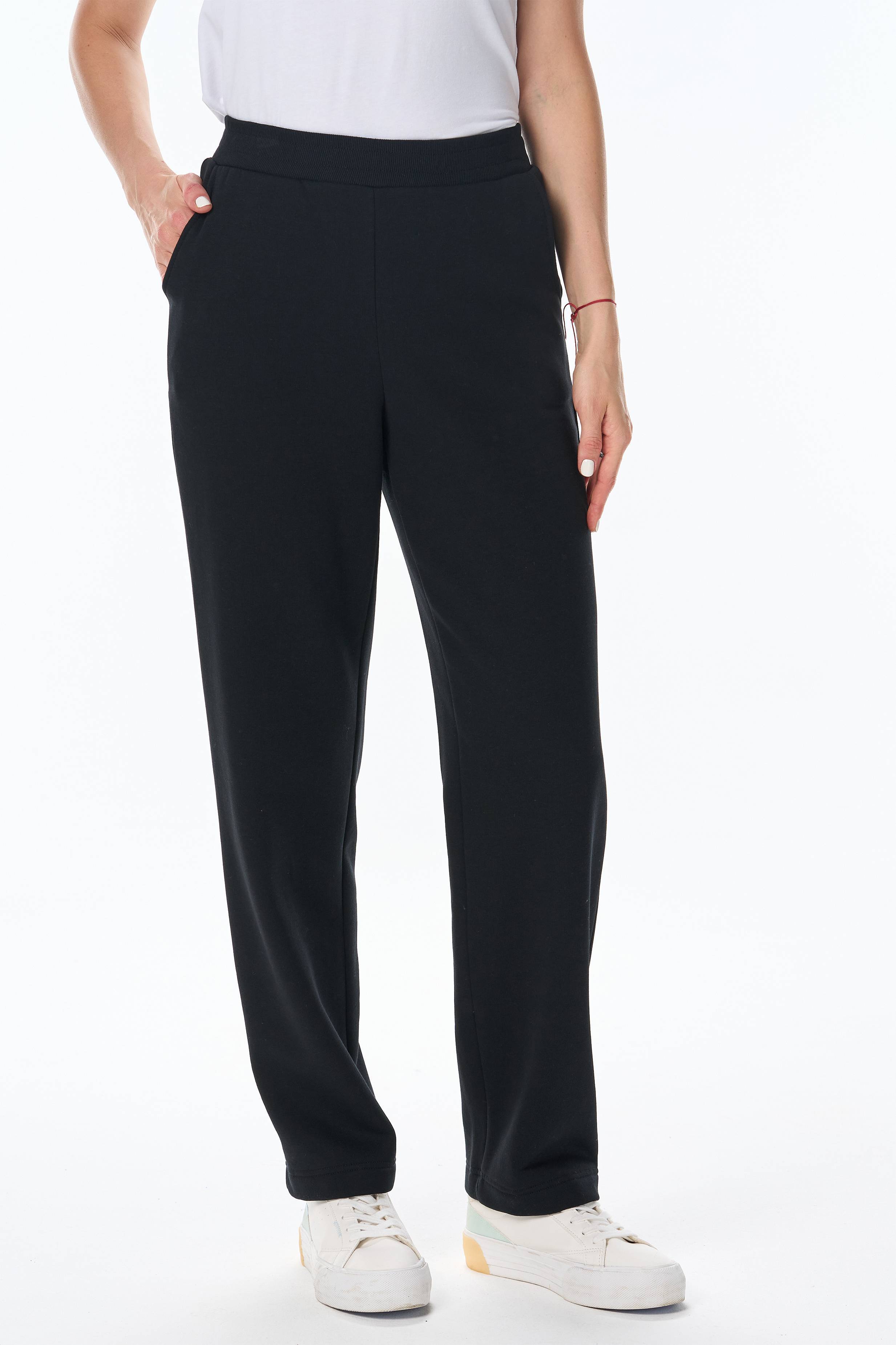Описание: Стильные прямые брюки с карманами из хлопкового футера высокого качества 3-х нитки стриженный начес. Цельнокроеный пояс с эластичной лентой внутри. Длина брюк по боковом шву в 44 размере 107см. Рост модели на фото 177см.