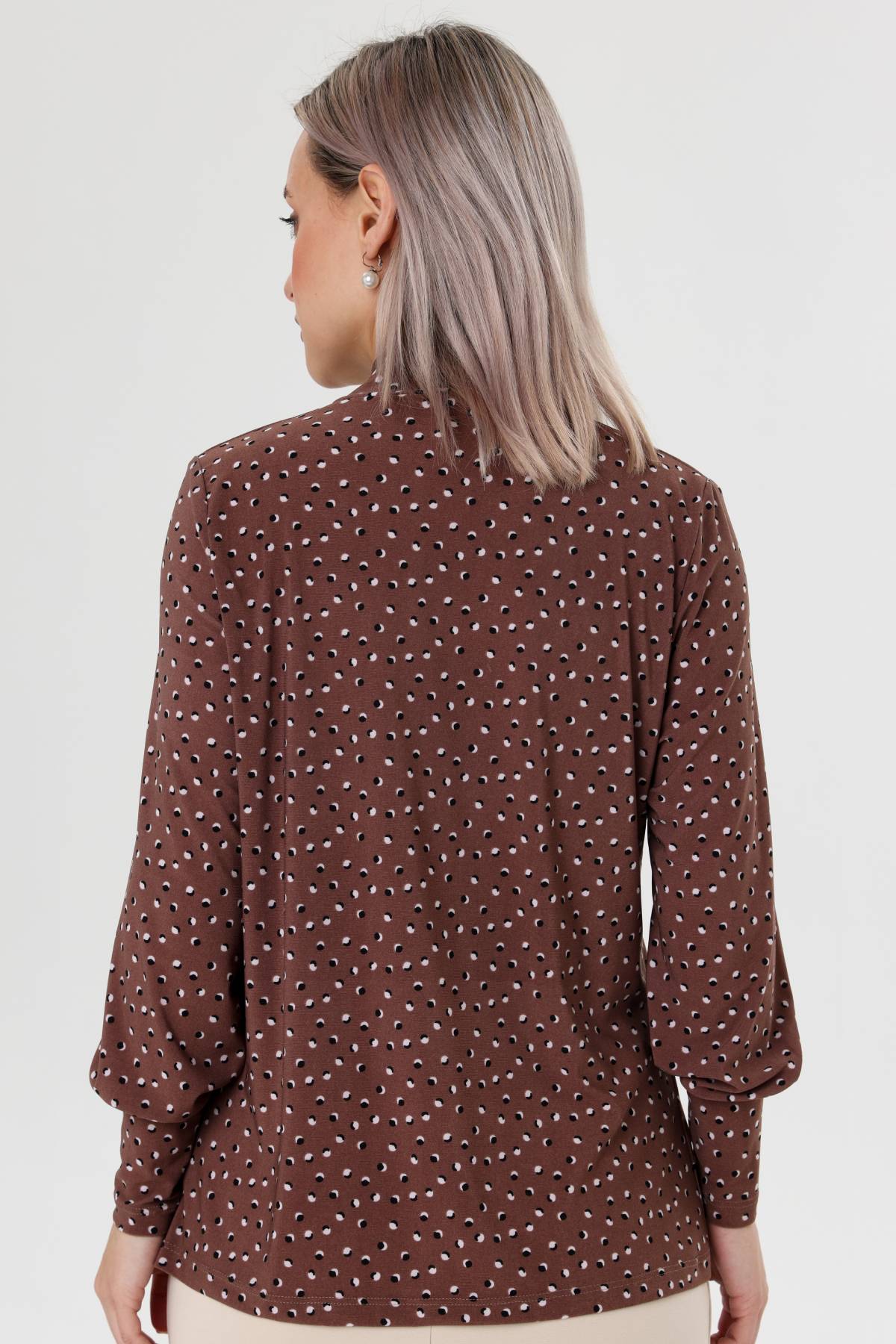 Описание: Блузка выполнена из трикотажного полотна, рукав - масло, высокий манжет. Элегантно смотрится, легко стирается, не теряет и не меняет цвет. Так как в ткани используется большое количество вискозы, ткань дышащая и легко пропускает воздух, сохраняет форму и посадку даже после многочисленных стирок.  Блуза представлена в ярких, современных и модных расцветках. Блузка станет неотъемлимой частью Вашего образа.  Блуза прекрасно подходит для торжеств и повседневных мероприятий. Сочетайте блузу с брюками, юбками, и с любым типом обуви. Блузка бренда RISE - это стиль, качество и комфорт! Пояс в комплект не входит.
