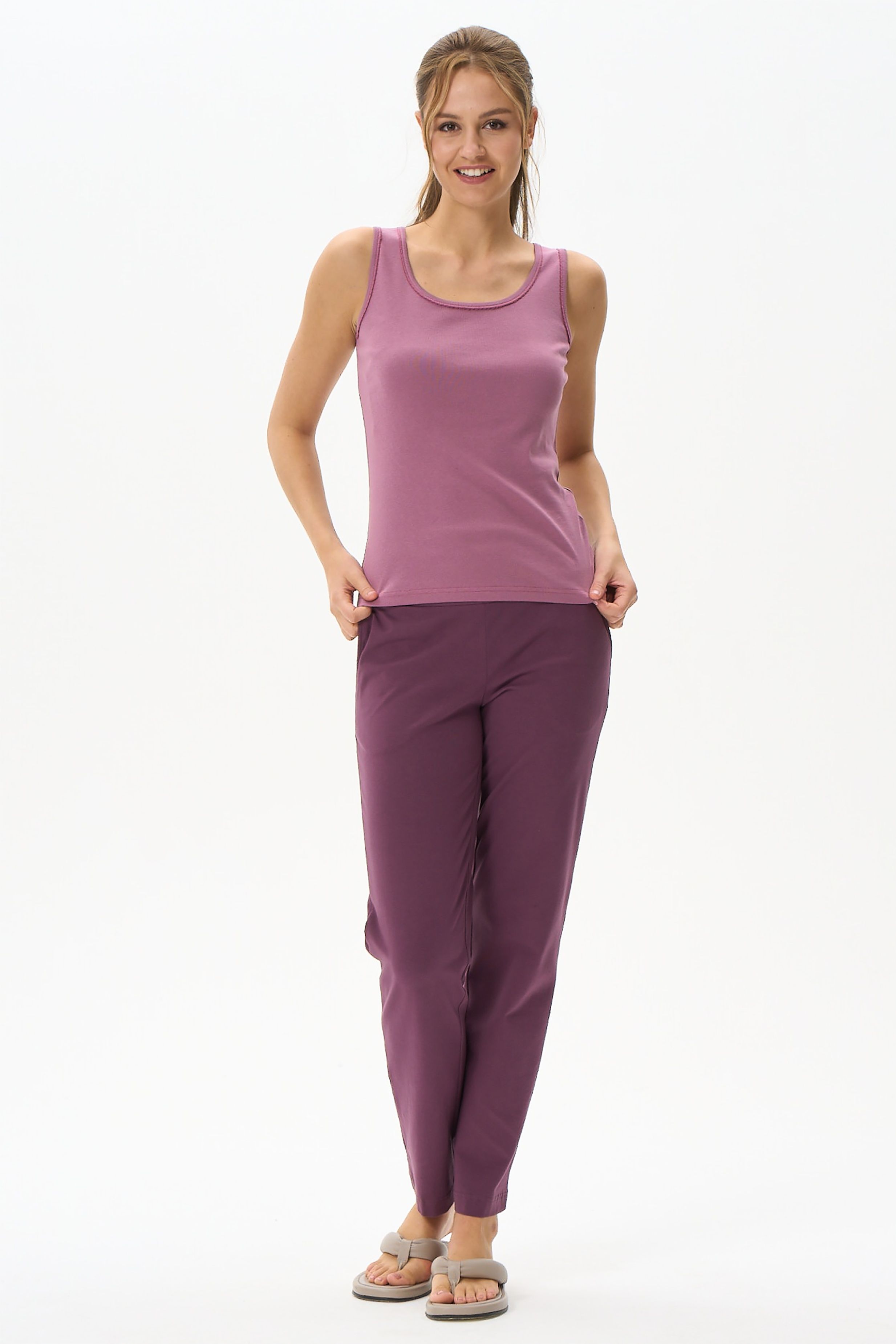 Описание: Комфортная майка из хлопкового трикотажного полотна рибана. Вырез горловины и проймы окантованы. Рост модели на фото 178 см.