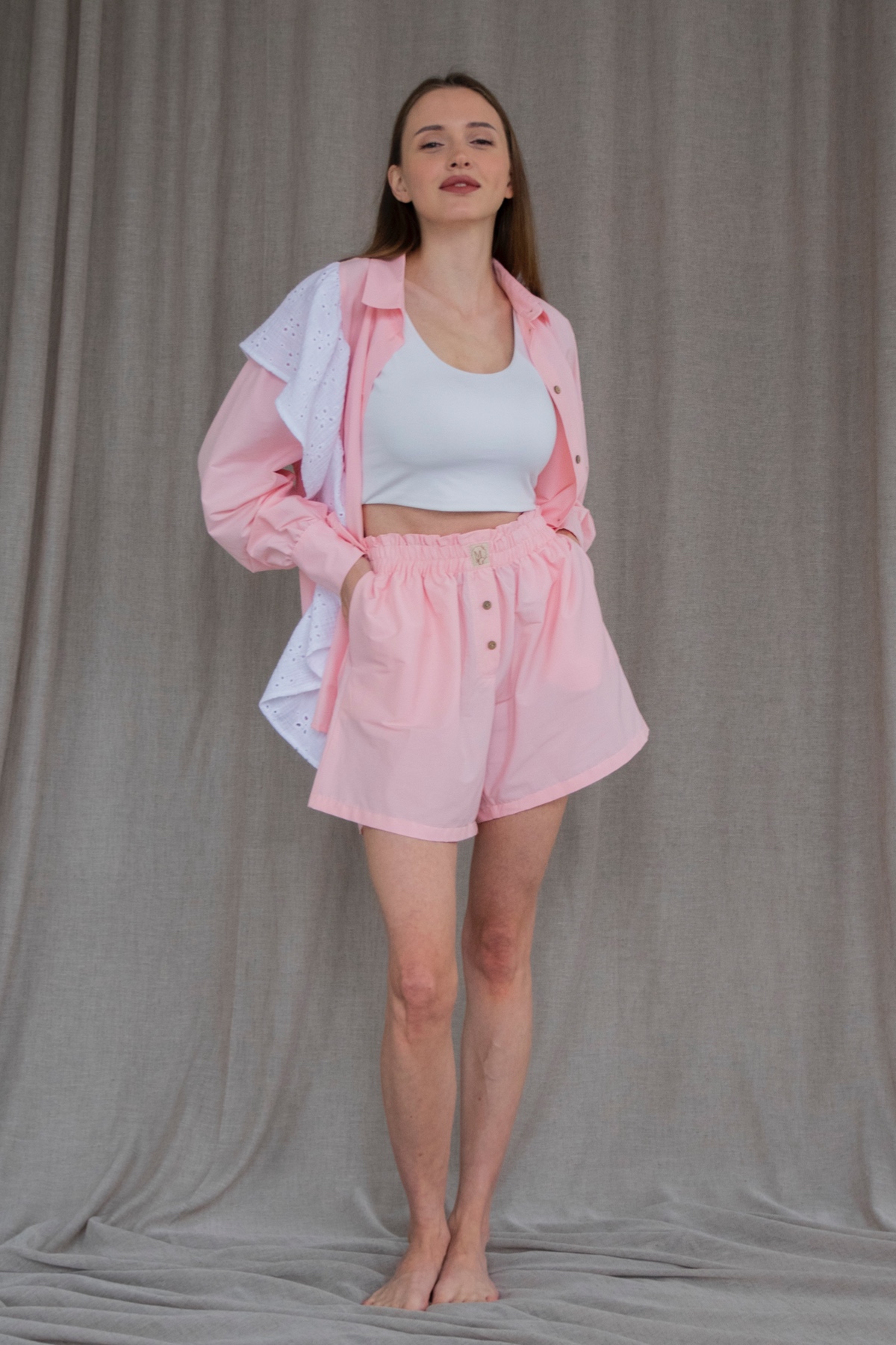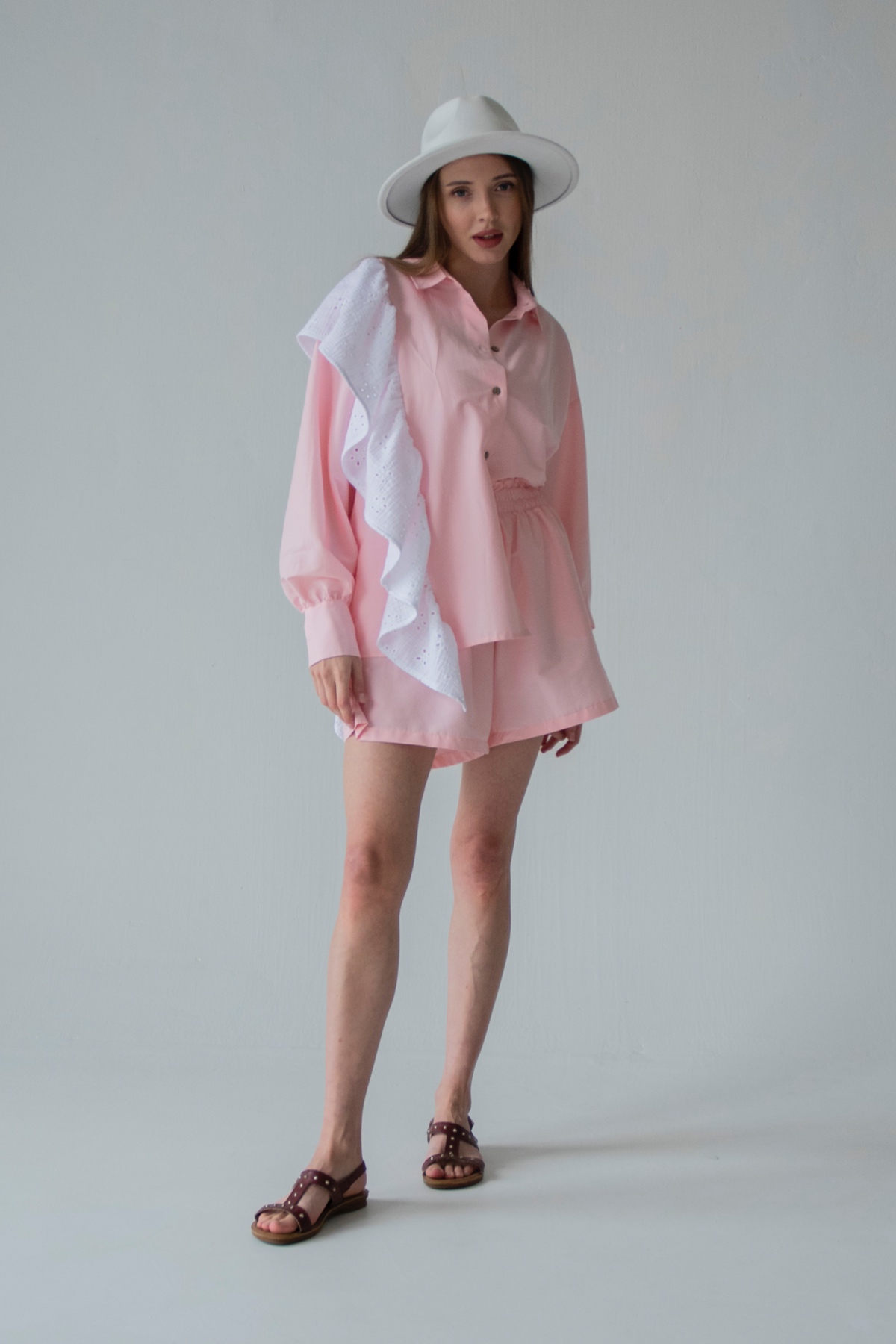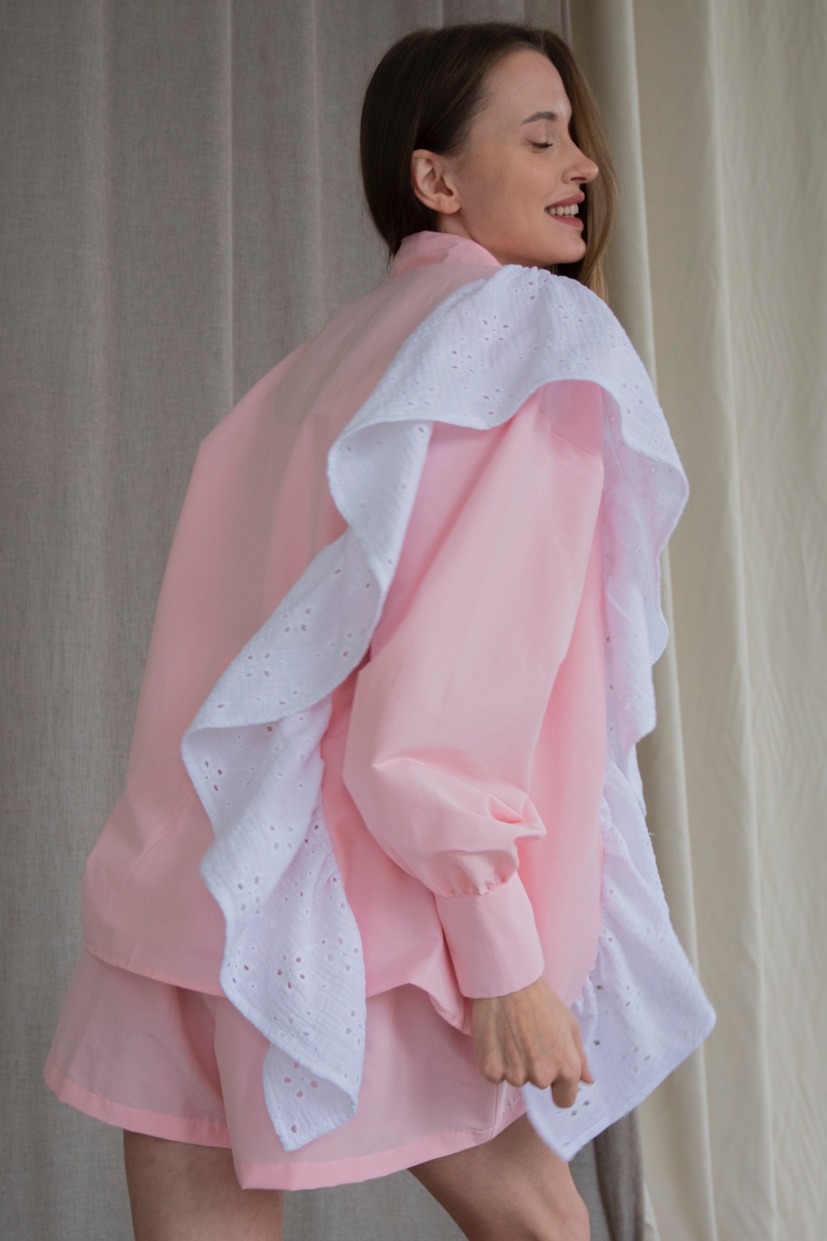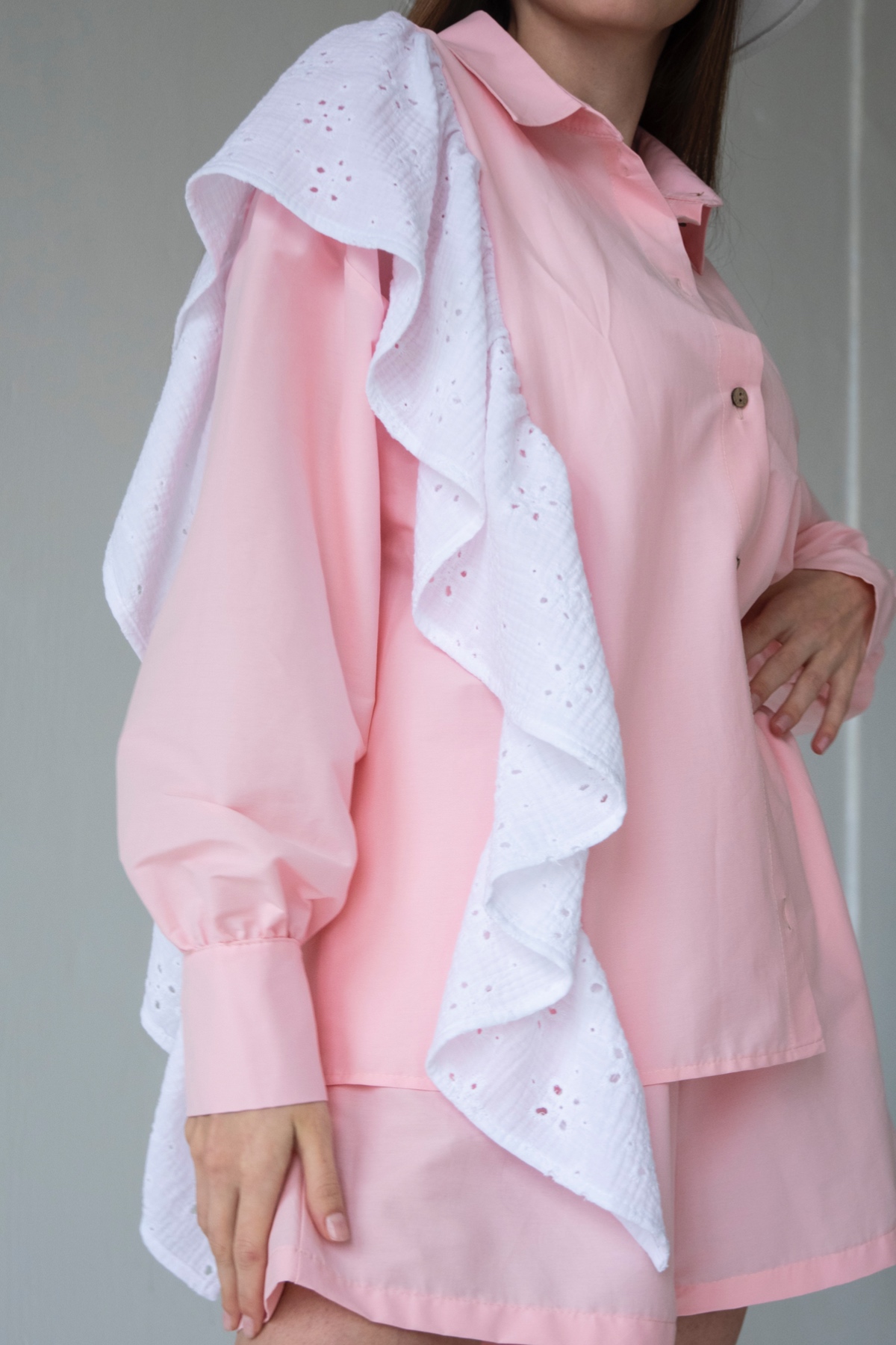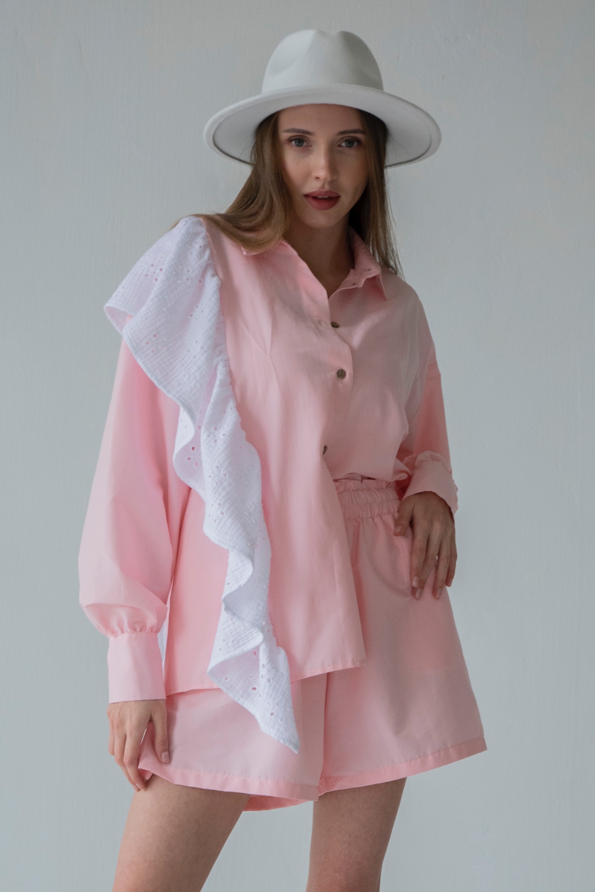 Описание: Все изделия имеют безупречный пошив и идеальную посадку. Костюм MUSE рубашка с воланчиком, шорты из хлопка с вискозой. Свободный крой рубашки и шорт не стесняет ваши движения, шорты с карманами (высокая посадка, на мягкой резинке, ручной работы) не давят. Костюм идеально садится на любой тип фигуры. Все изделия уникальны и отшиваются небольшими партиями. Стирка изделий вручную либо использовать машинную стирку в деликатном режиме (не более 30 градусов).