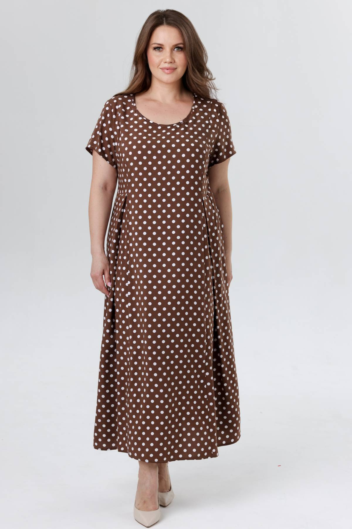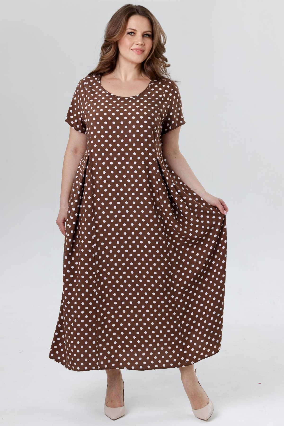 Описание: Летнее женское платье из вискозы. Вы будете чувствовать себя комфортно даже в самую жаркую погоду. Юбка эффектно струится при ходьбе. Этот образ подчеркнет вашу женственность и романтичность. Фирменные лекала гарантируют хорошую посадку. Стирка при 30 градусов, усадка 5%, учитывайте при выборе размера.