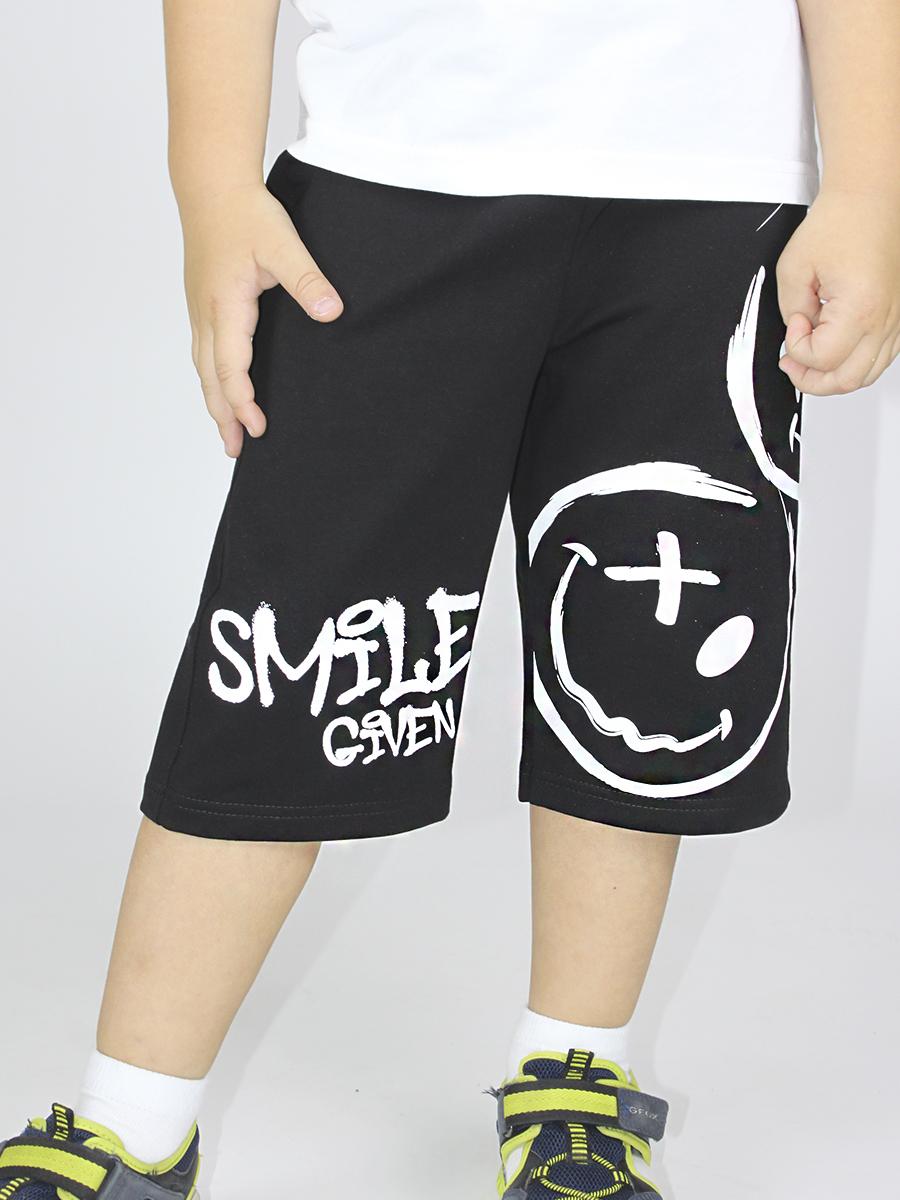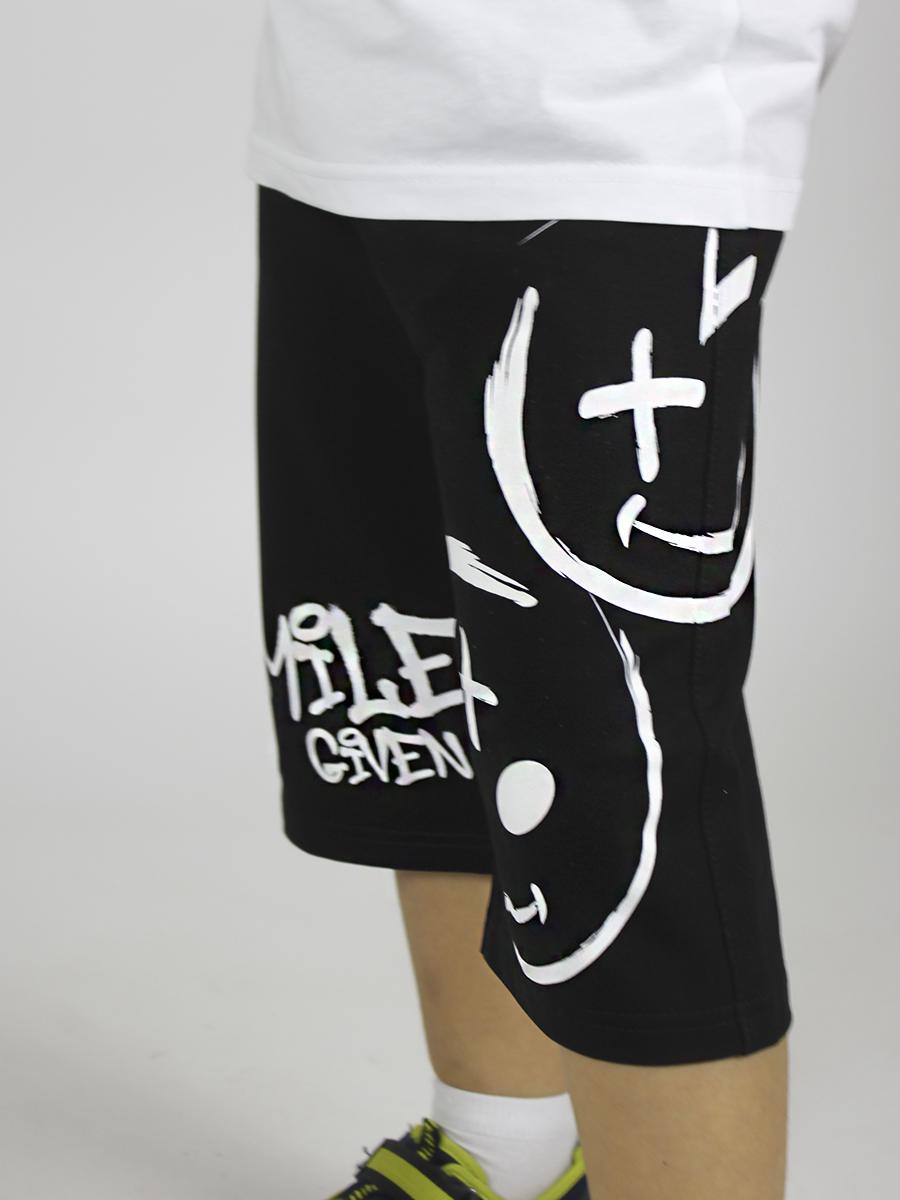 Шорты-удлиненные с притачным поясом, с резинкой. Печать на правой передней половинке внизу и левой стороне (сзади на перед).