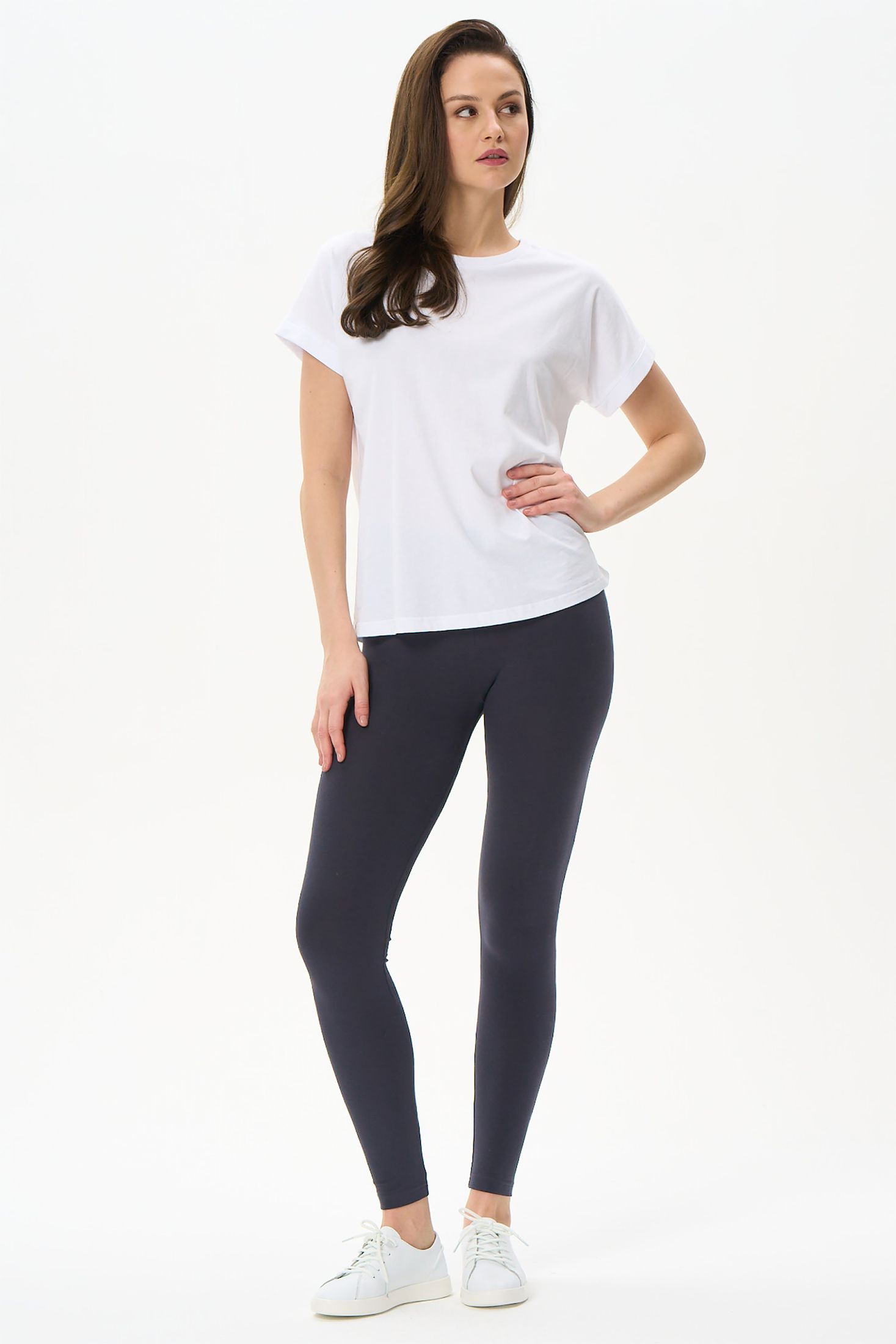 Описание: Комфортные облегающие леггинсы из хлопкового трикотажного полотна с эластаном. Пояс с эластичной лентой внутри. Рост модели на фото 177см.
