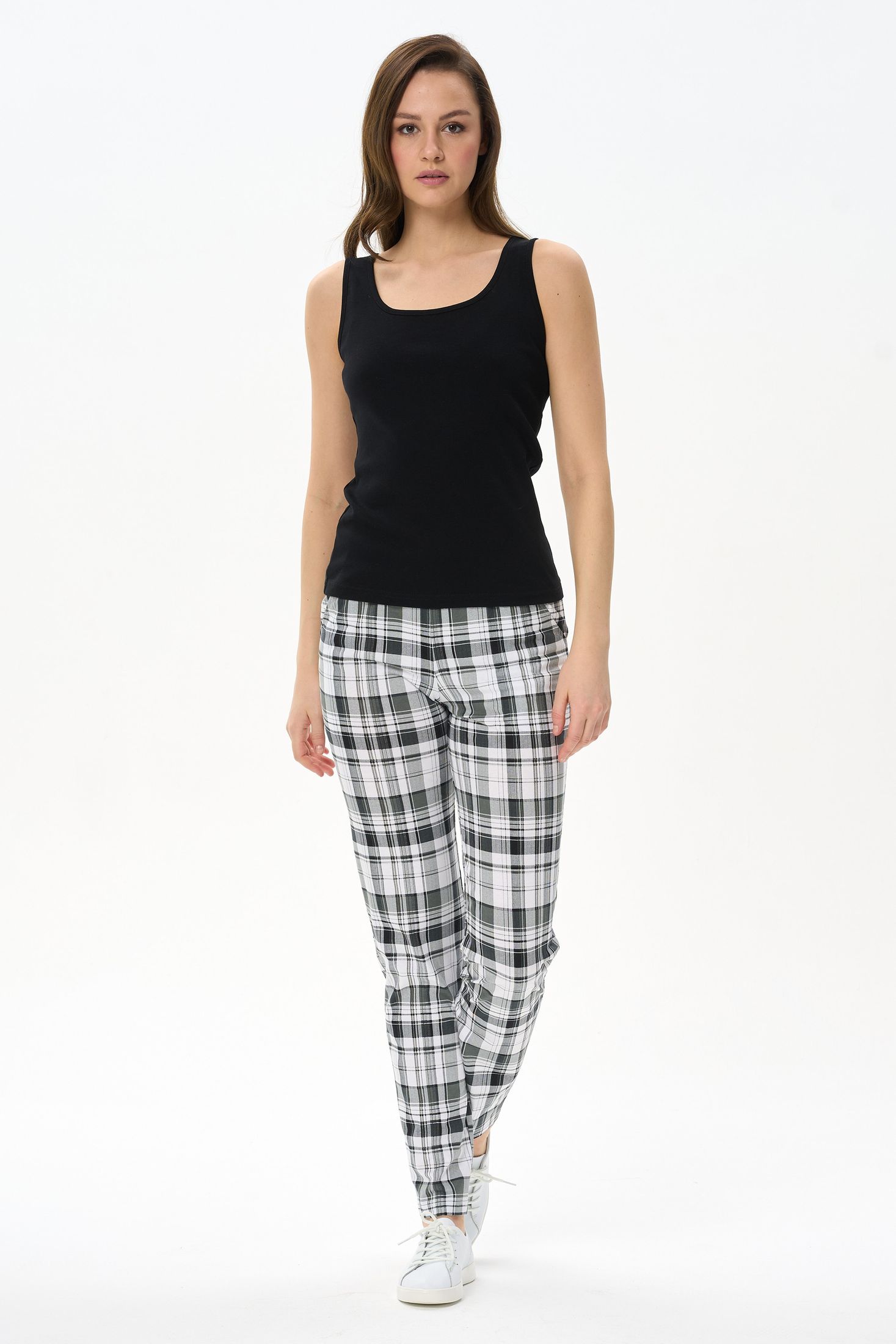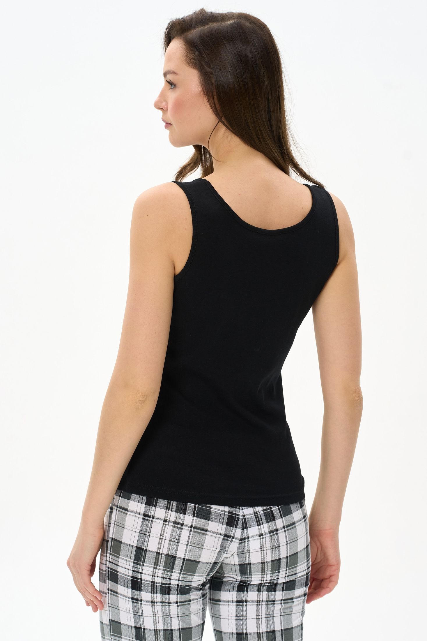 Описание: Комфортная майка из хлопкового трикотажного полотна рибана. Вырез горловины и проймы окантованы. Рост модели на фото 178 см.