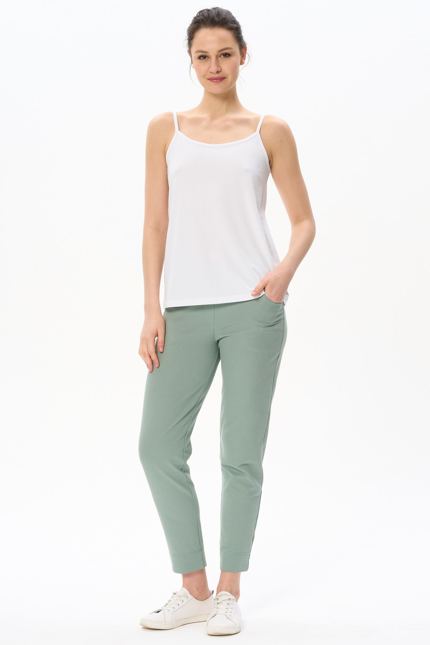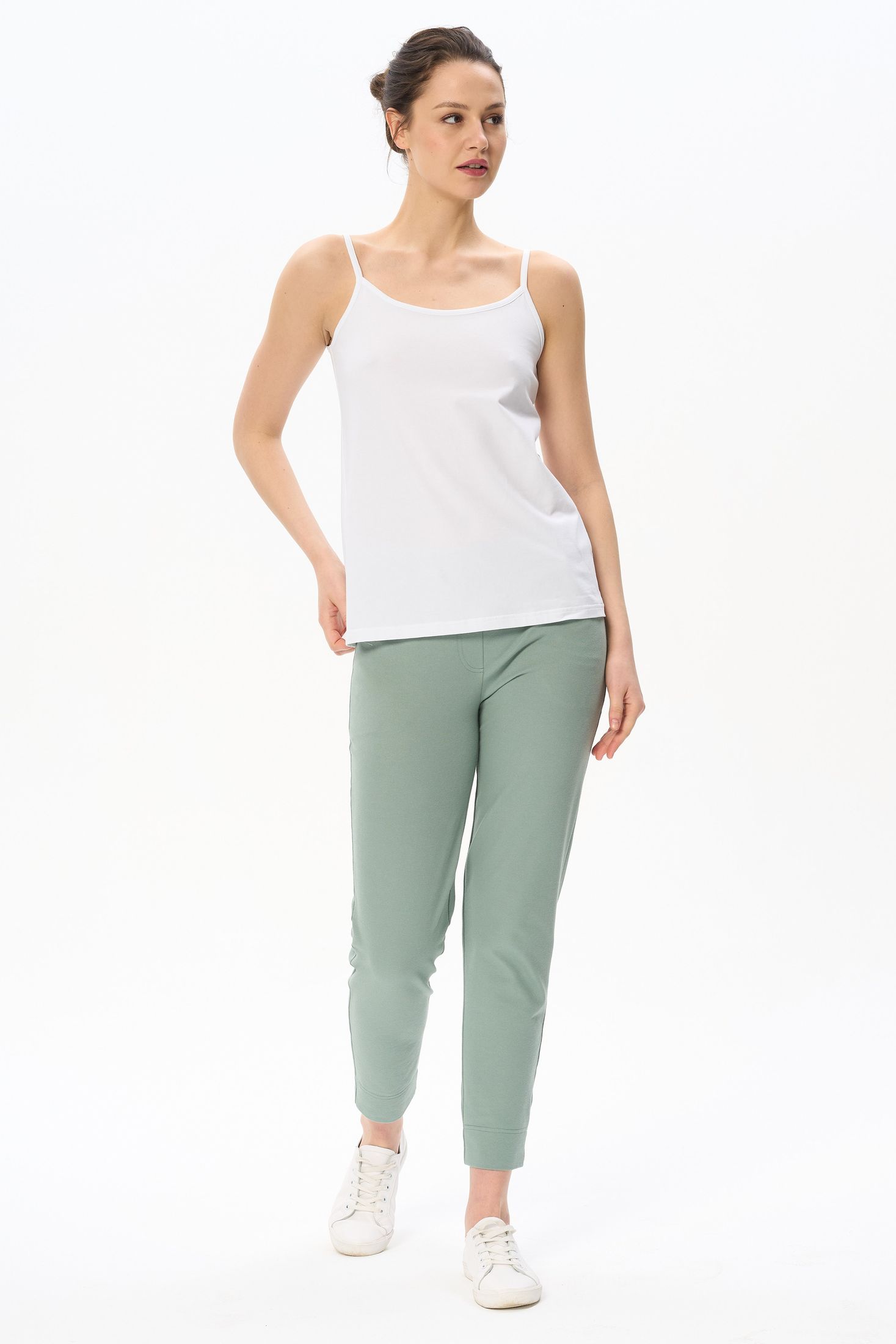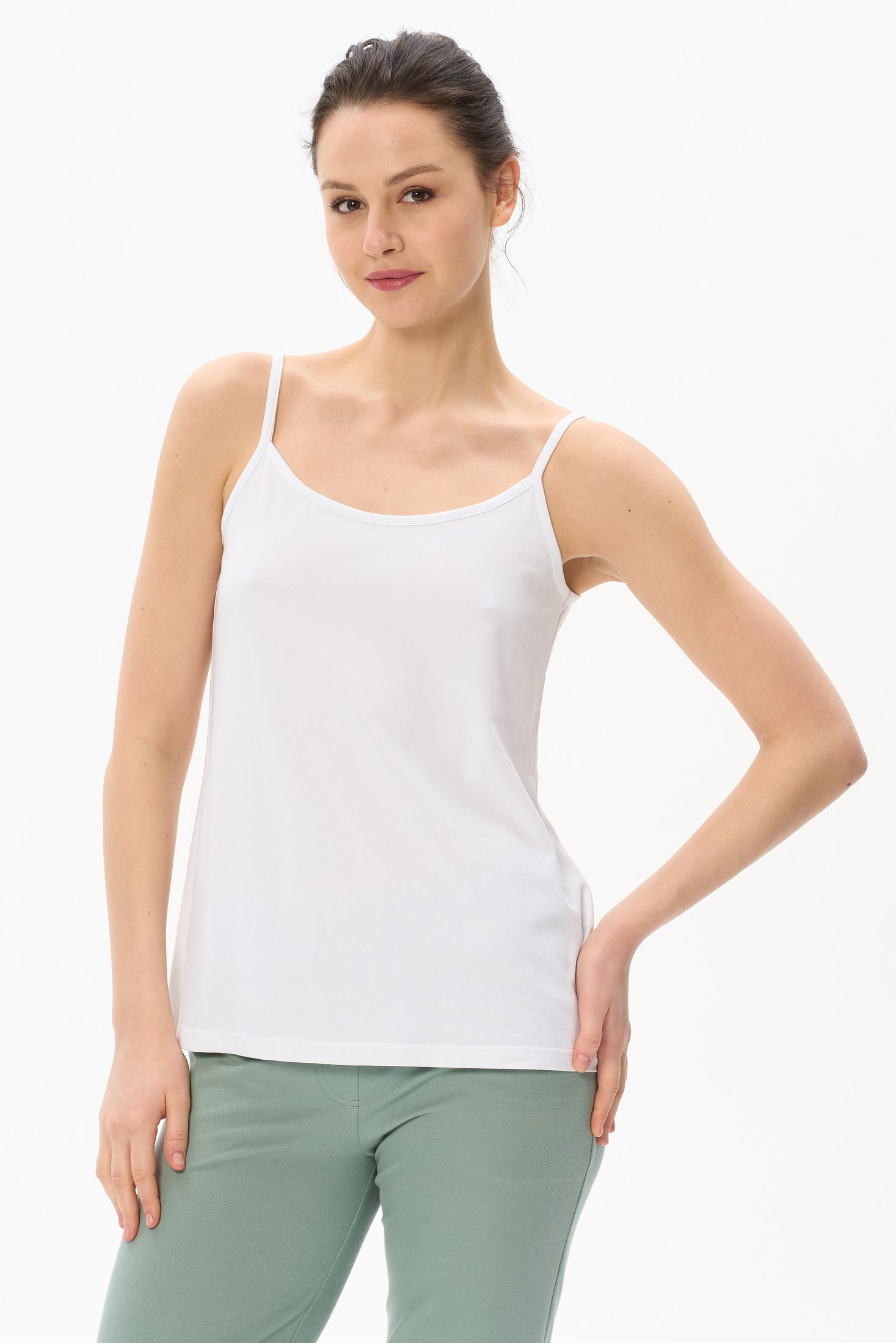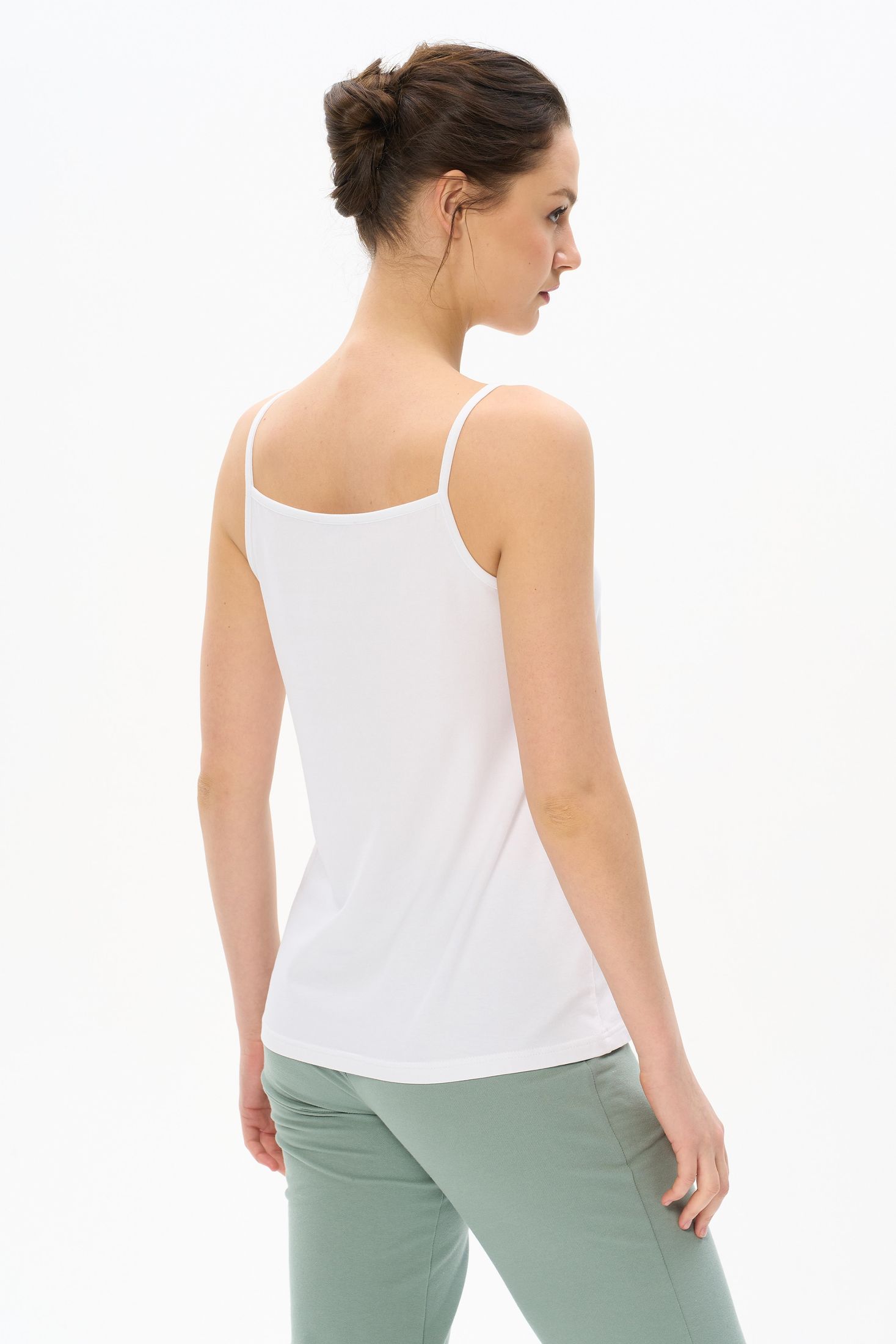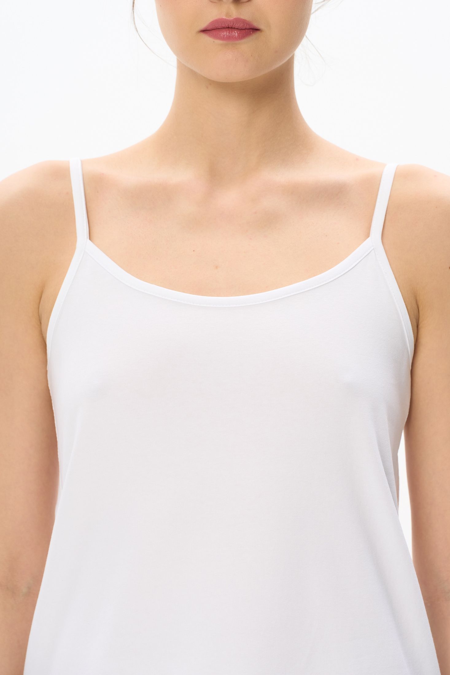 Описание: Майка на тонких бретелях из хлопкового трикотажного полотна с эластаном. Рост модели на фото 177см.