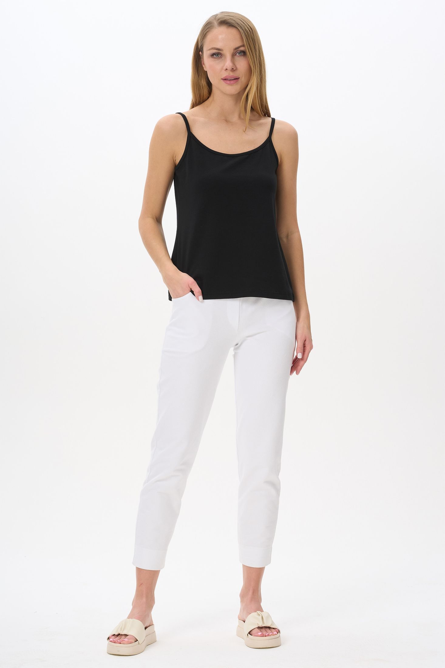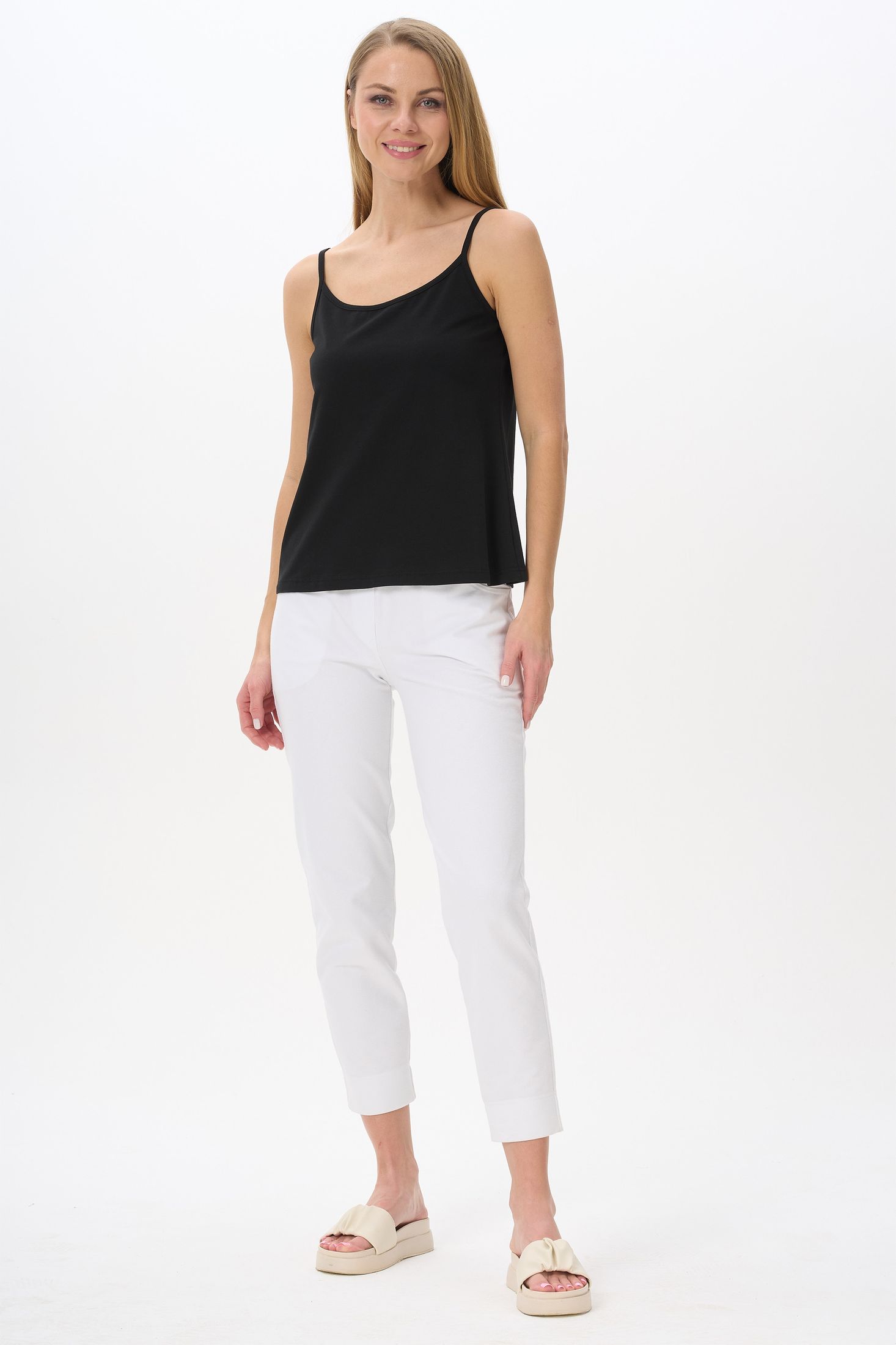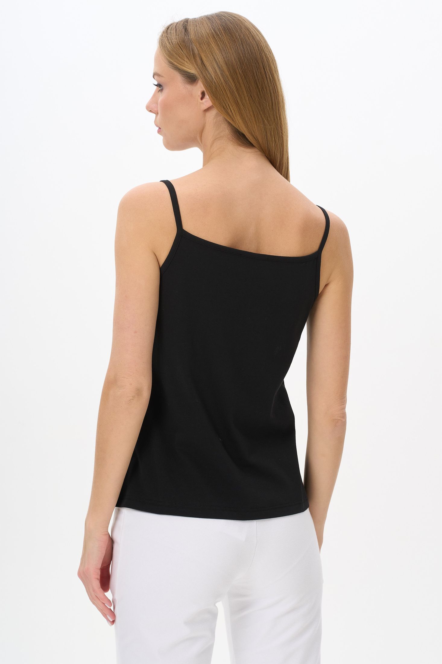 Описание: Майка на тонких бретелях из хлопкового трикотажного полотна с эластаном. Рост модели на фото 175см.