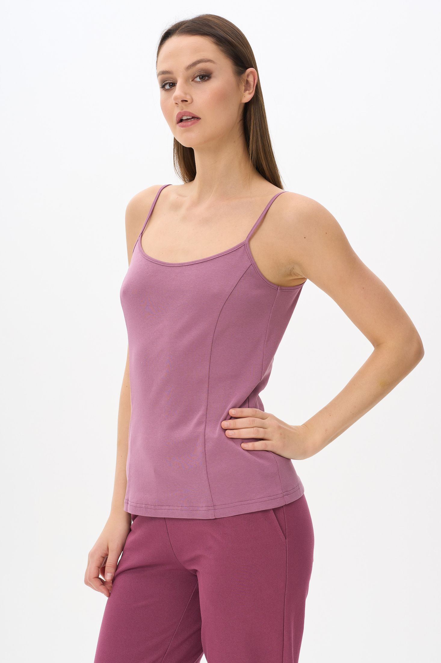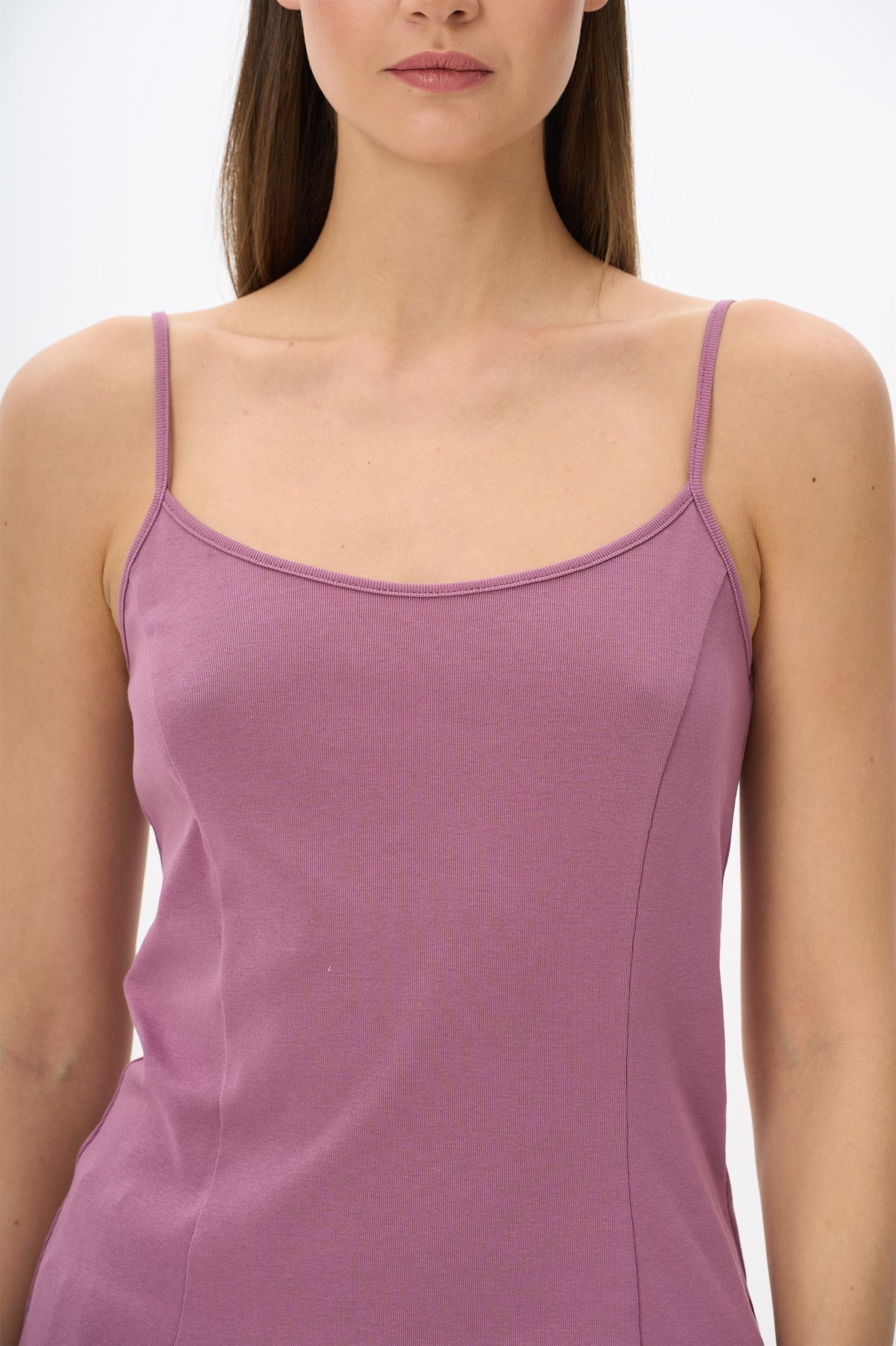 Описание: Майка на тонких бретелях из хлопкового трикотажного полотна - рибана. Рост модели на фото 177см.