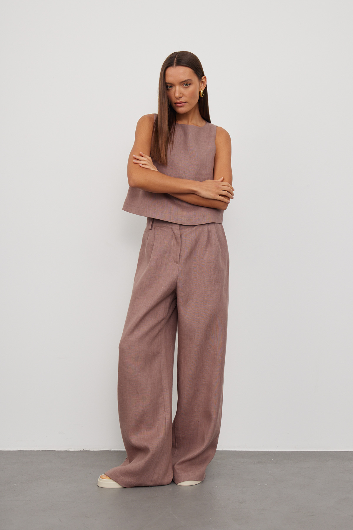 Брюки палаццо с высокой талией из натурального высококачественного льна, подойдут для создания непринужденного городского или домашнего образа. Можно дополнить короткой или длинной рубашкой Ypsilon на пуговицах. Такой комплект—идеальный вариант для тех, кто ценит качество и минимализм. Сделано в России на собственном производстве.