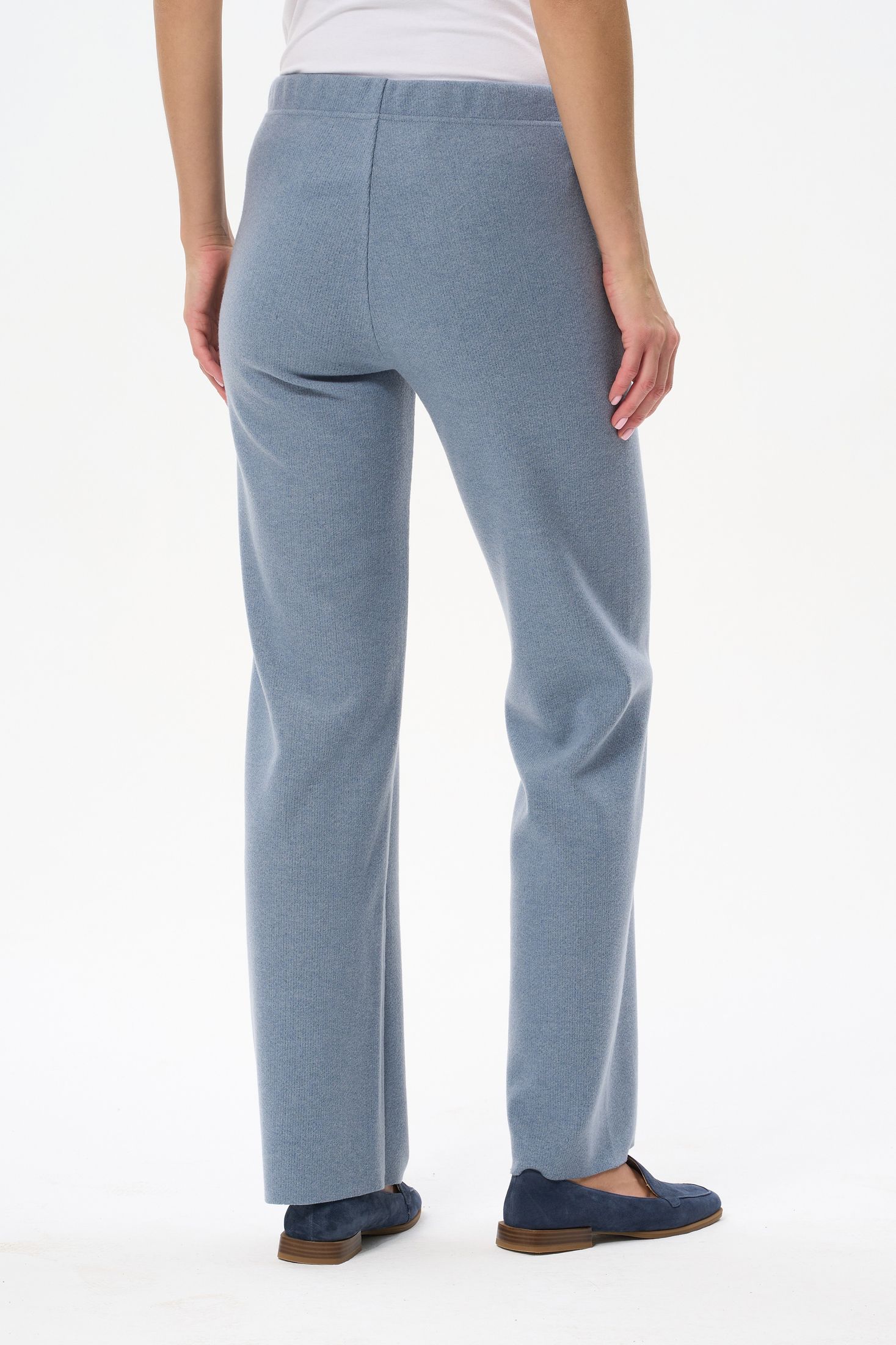 Описание: Длинные прямые брюки из вязаного вискозного полотна. Цельнокроенный пояс с эластичной тесьмой внутри, брюки без боковых швов. Длина по боку ( без пояса) в 44 размере - 105 см. Рост модели на фото 178 см.