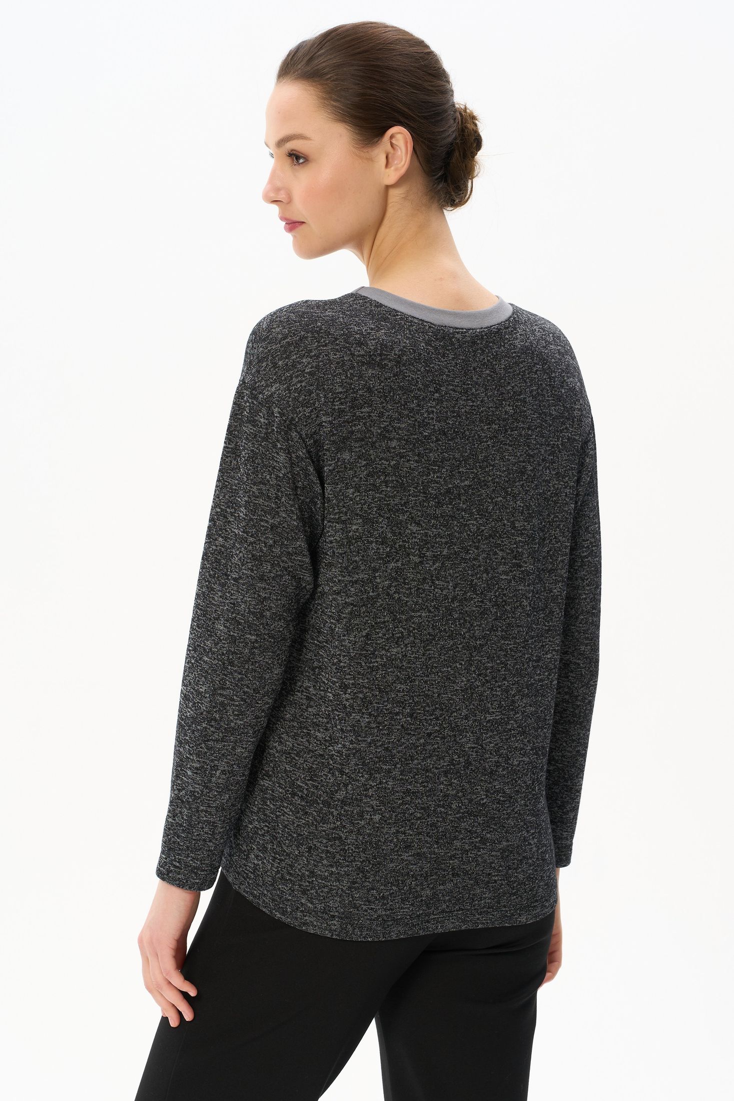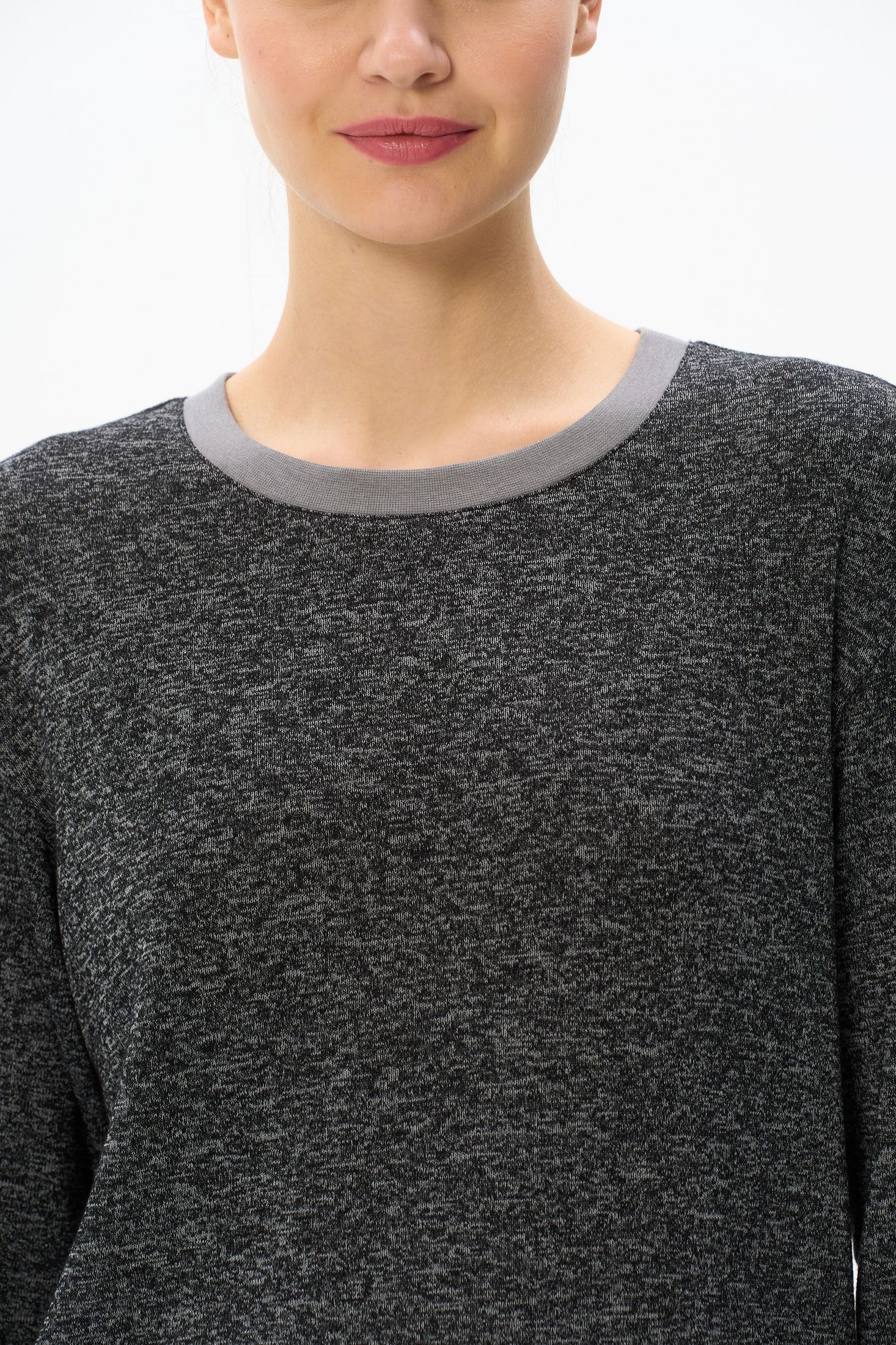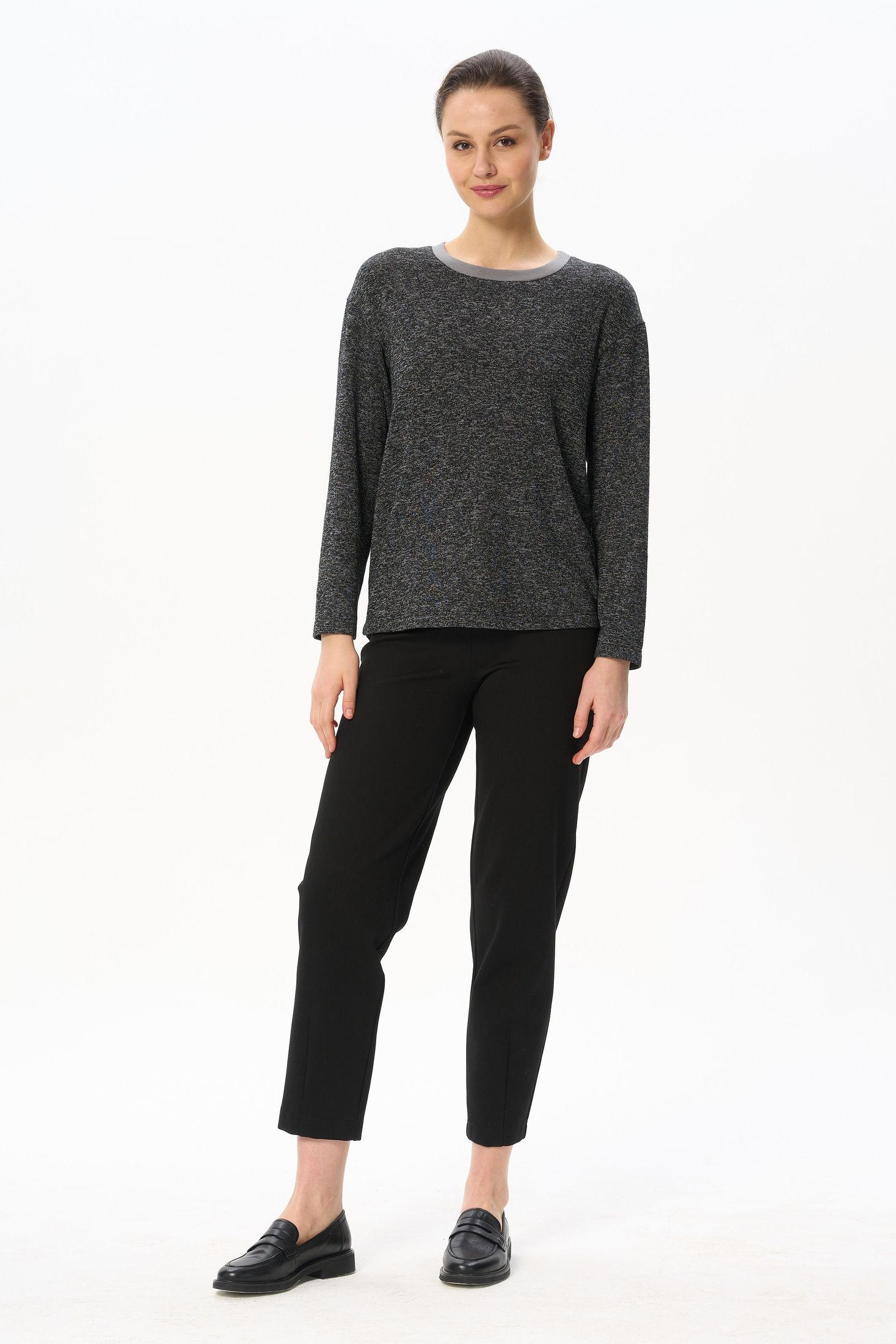 Описание: Джемпер из мягкого вискозного трикотажного полотна с легким начёсом на изнанке. Прямого силуэта с длинным рукавом и круглой формой горловины. Вырез горловины оформлен хлопковым полотном - рибаной. Рост модели 178 см