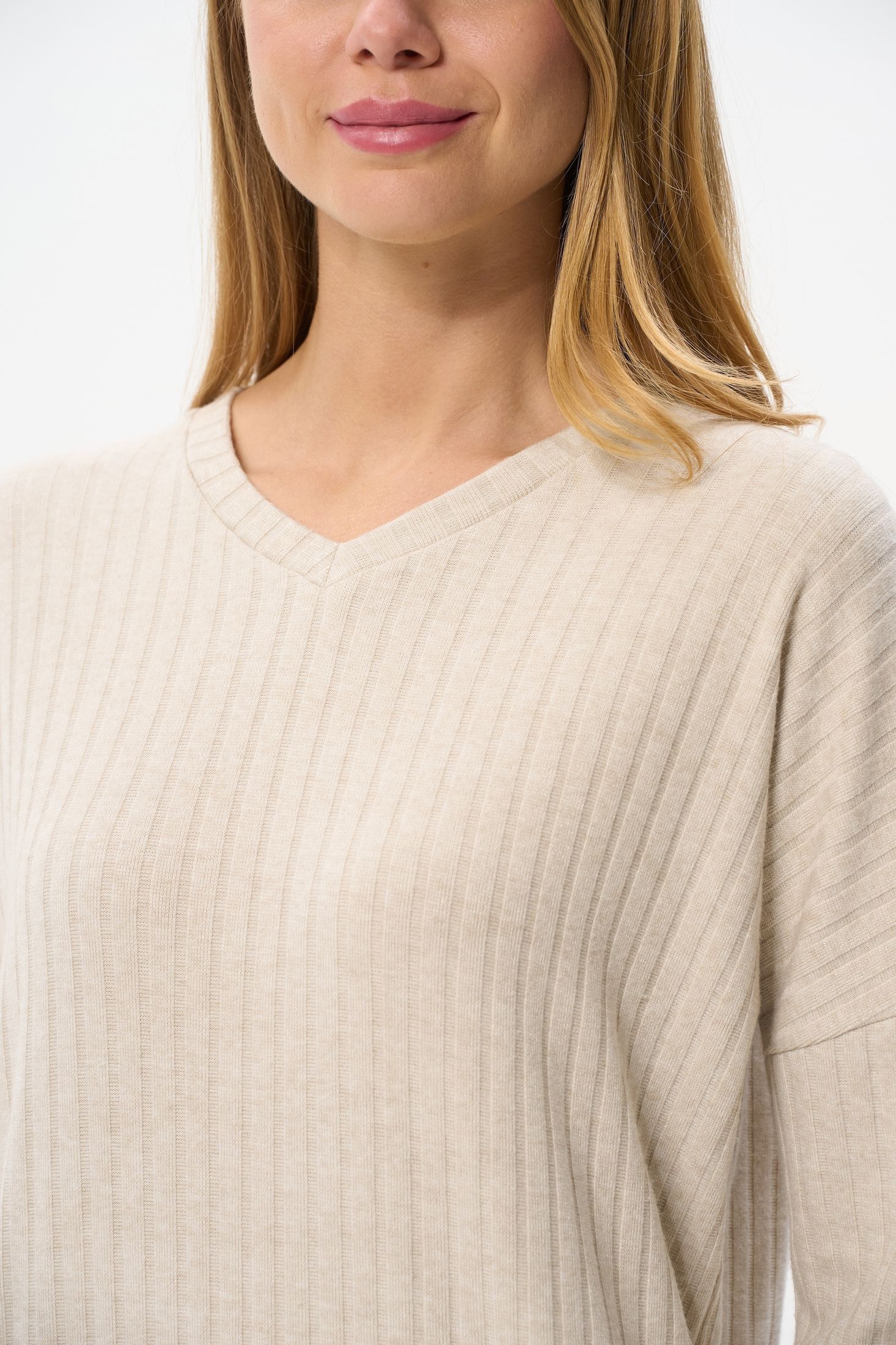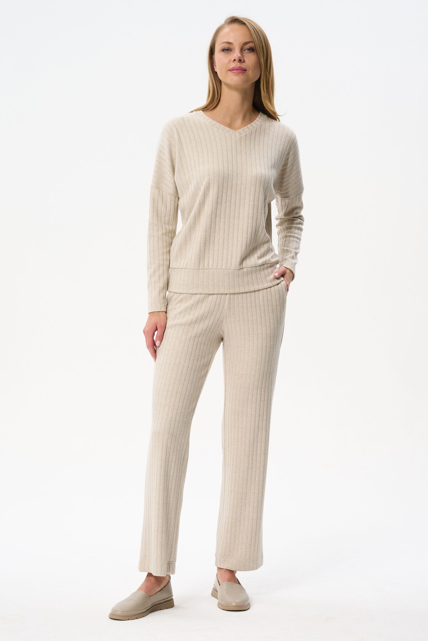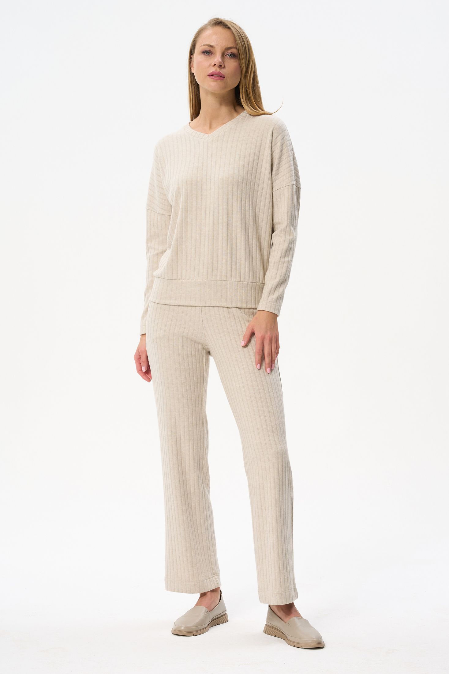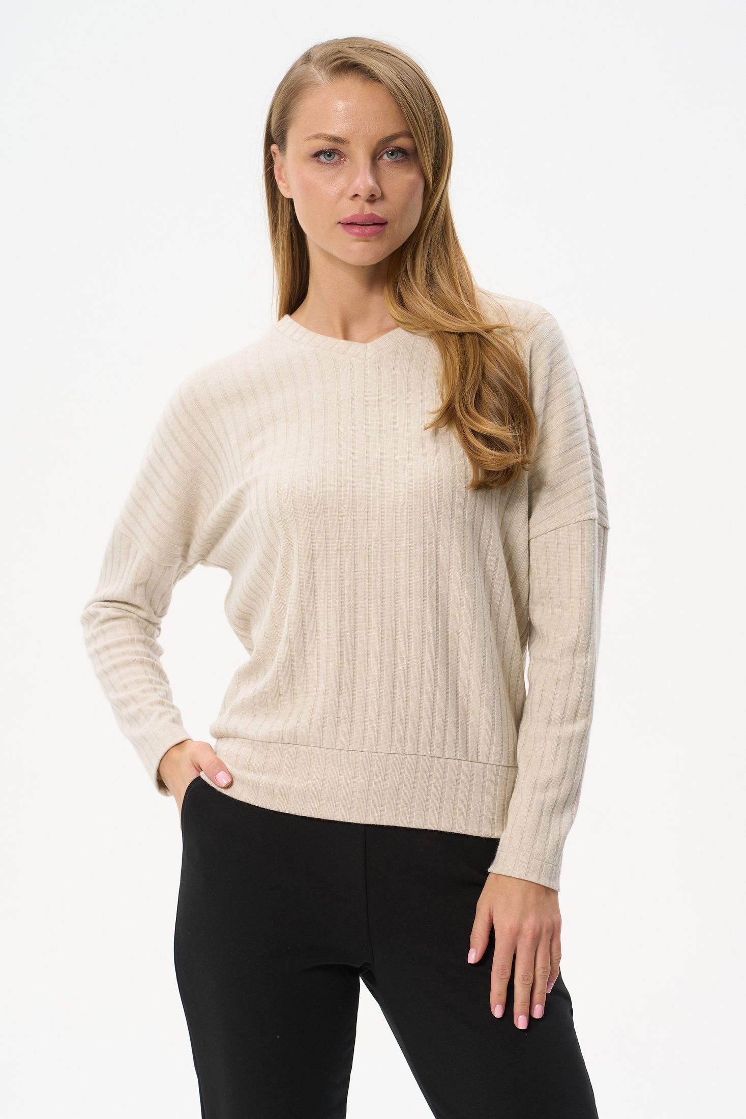 Описание: Теплый джемпер из фактурного вискозного полотна. V - образный вырез горловины, спущенная линия плеча, длинные рукава. Рост модели на фото 178 см.