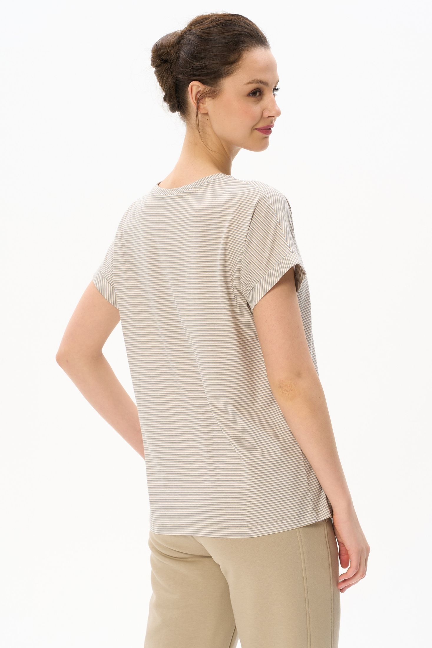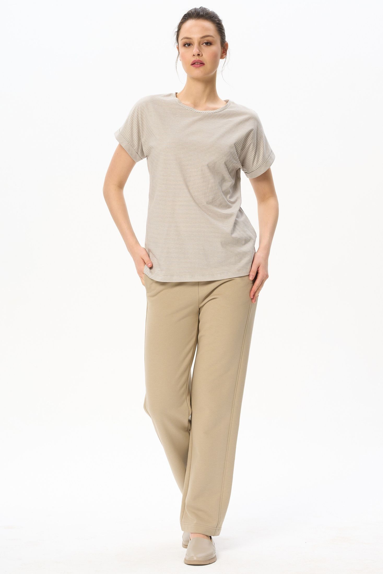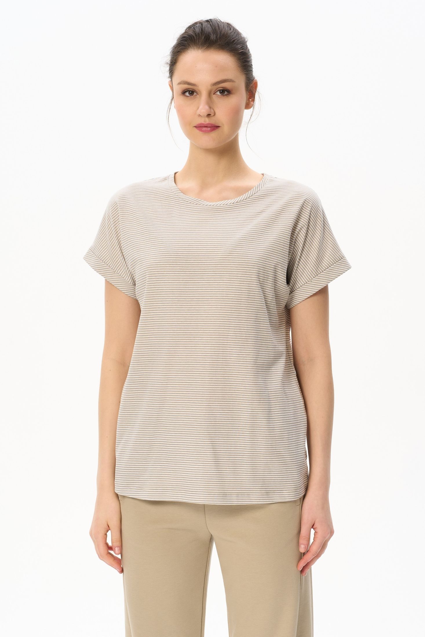 Описание: Футболка из хлопкового трикотажного полотна. Круглый вырез горловины, цельнокроеные короткие рукава с отворотами. Рост модели на фото 178см.