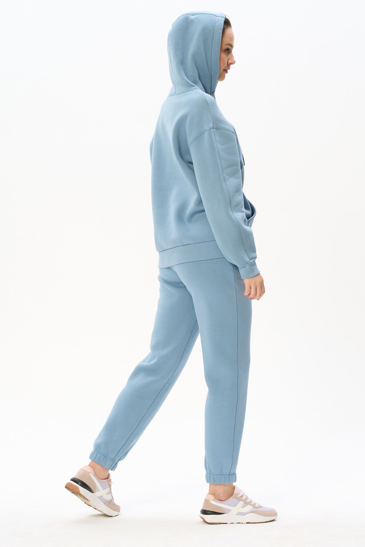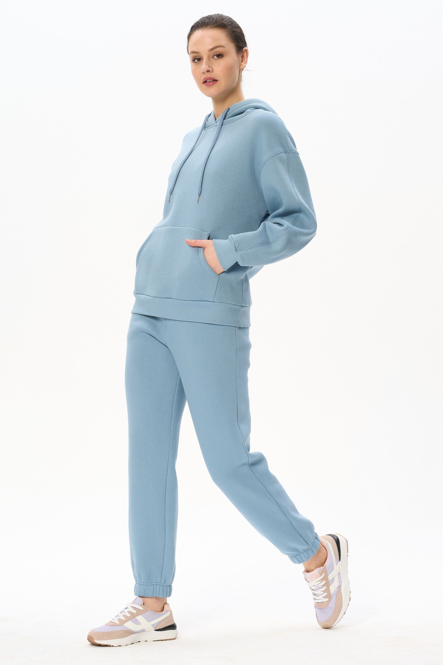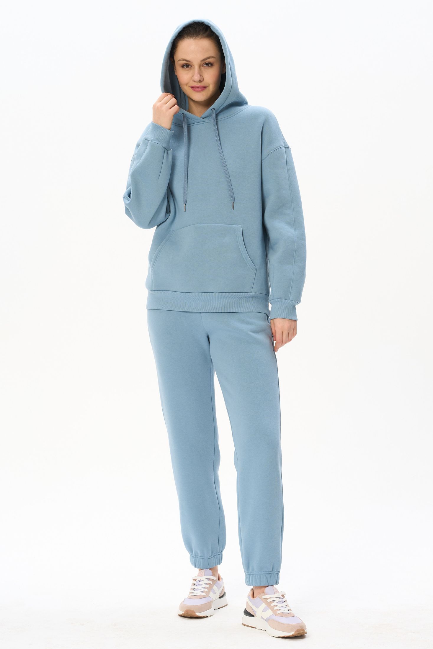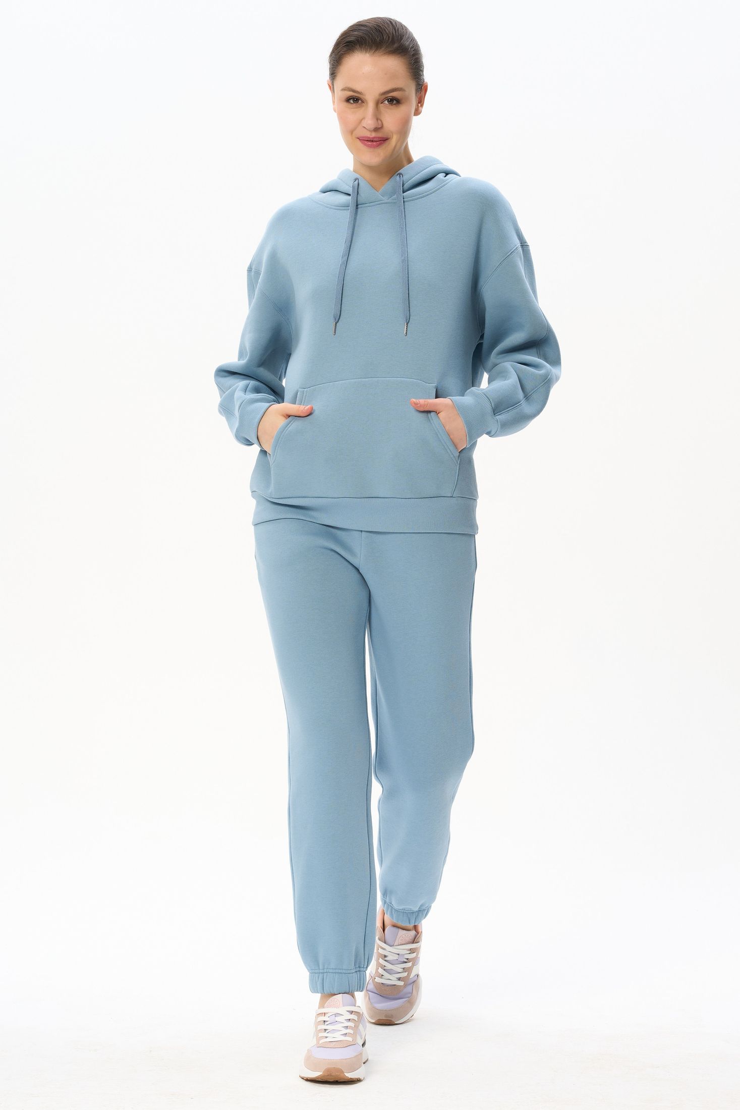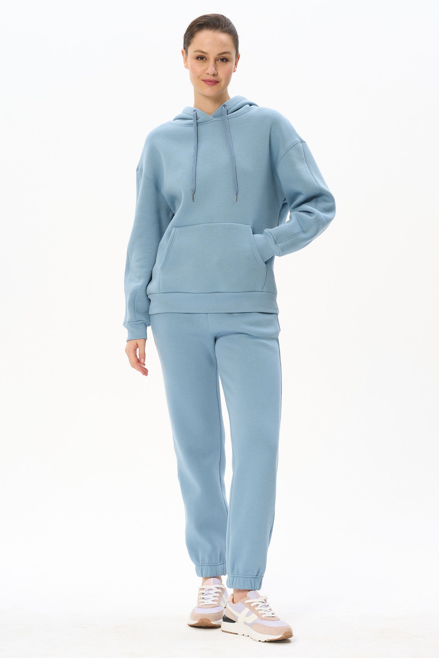 Описание: Комплект из хлопкового футера высокого качества 3-х нитки стриженный начес, состоит из толстовки и брюк. Толстовка имеет капюшон и карман. Длинные прямые брюки с карманами и цельнокроеным поясом с эластичной тесьмой внутри, по низу цельнокроеные манжеты. Рост модели на фото 178 см.