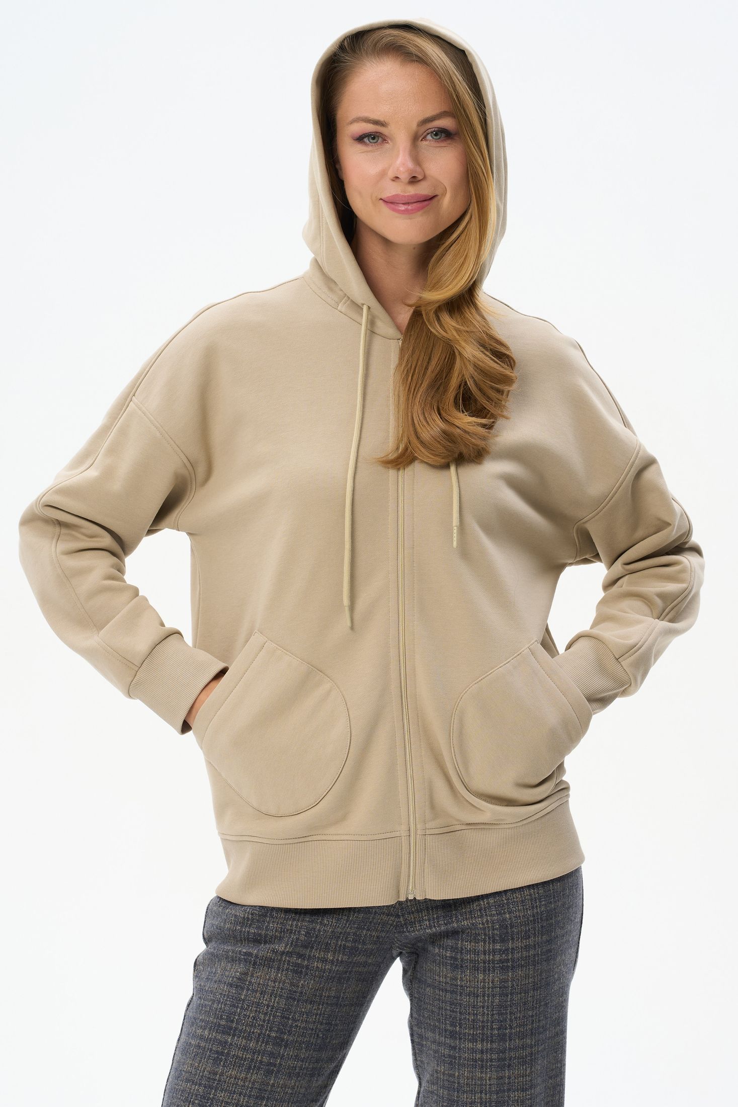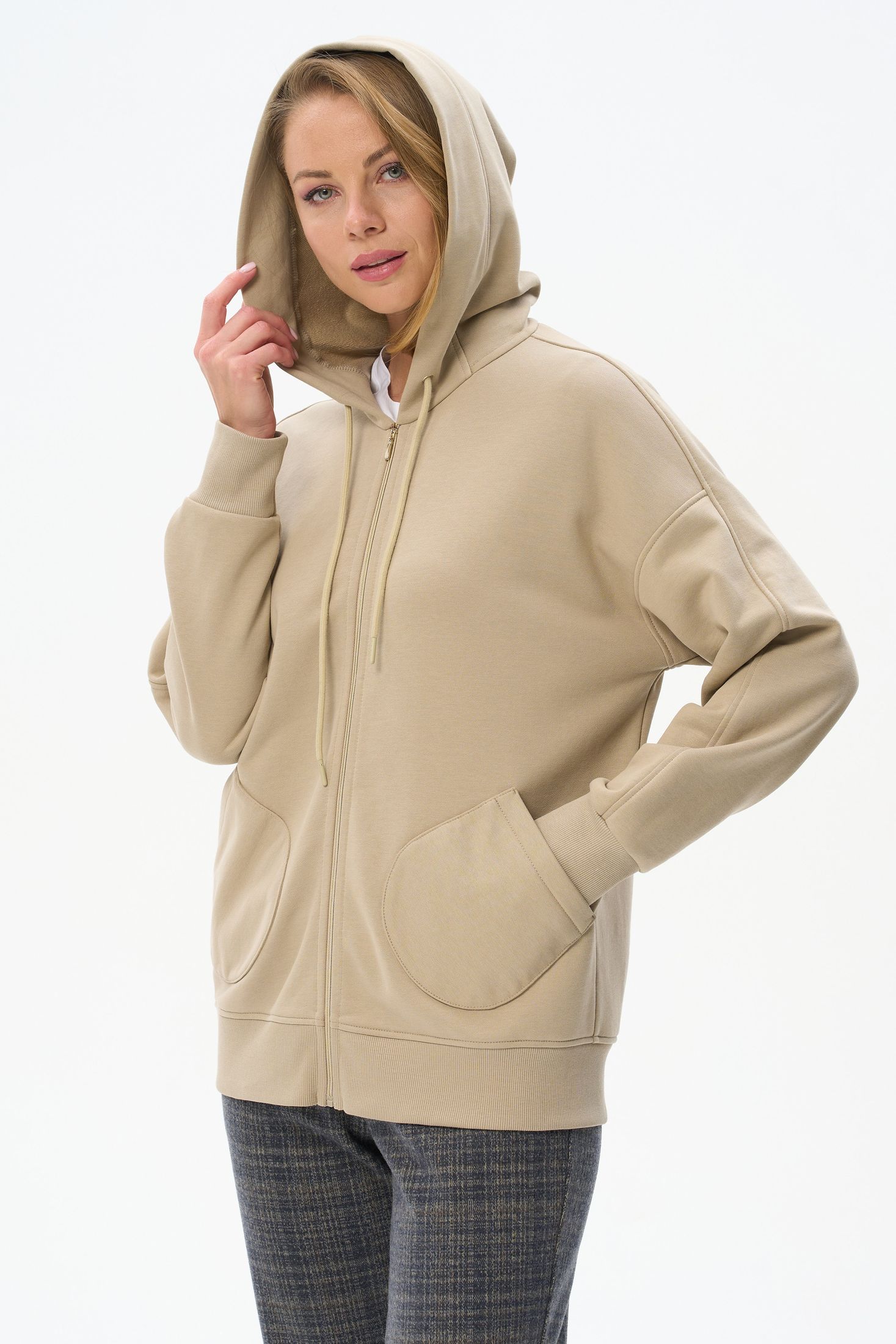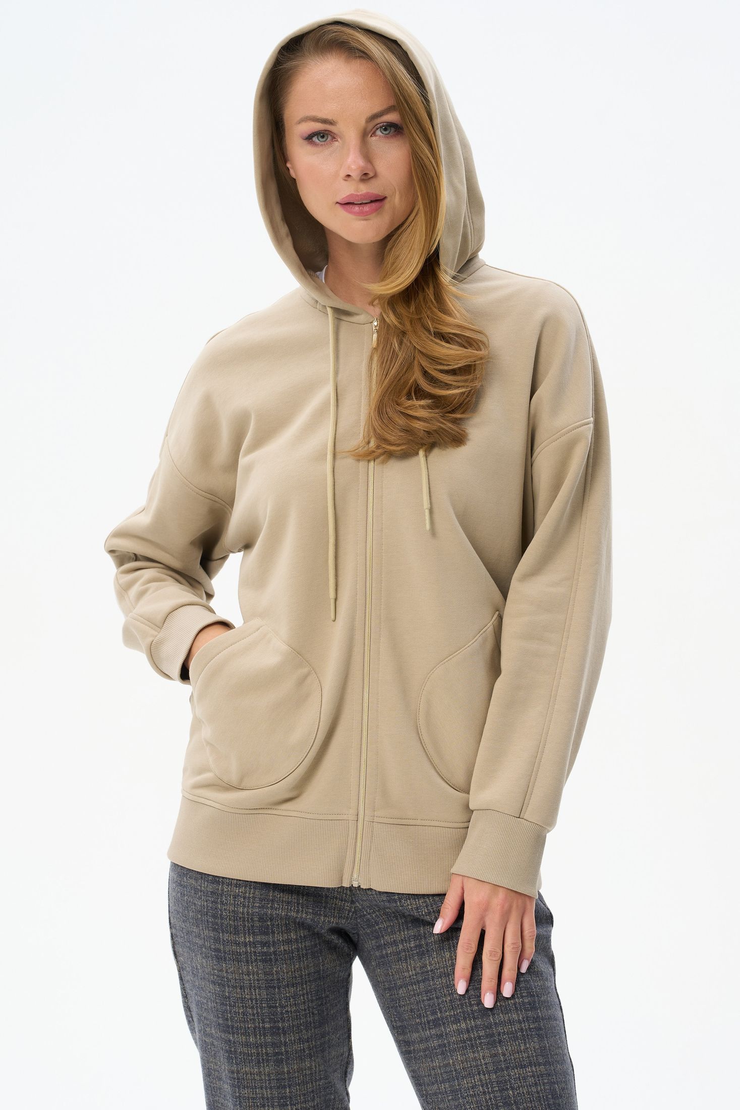 Описание: Новая модель куртки из хлопкового футера 3-хнитки с устойчивым рубчиком с изнанки. Капюшон, спущенная линия плеча, длинные втачные рукава на манжетах. Спереди застежка - молния, накладные карманы скругленной формы на подкладке. Манжеты и притачной пояс по низу куртки выполнены из кашкорсе. Рост модели на фото 178 см.