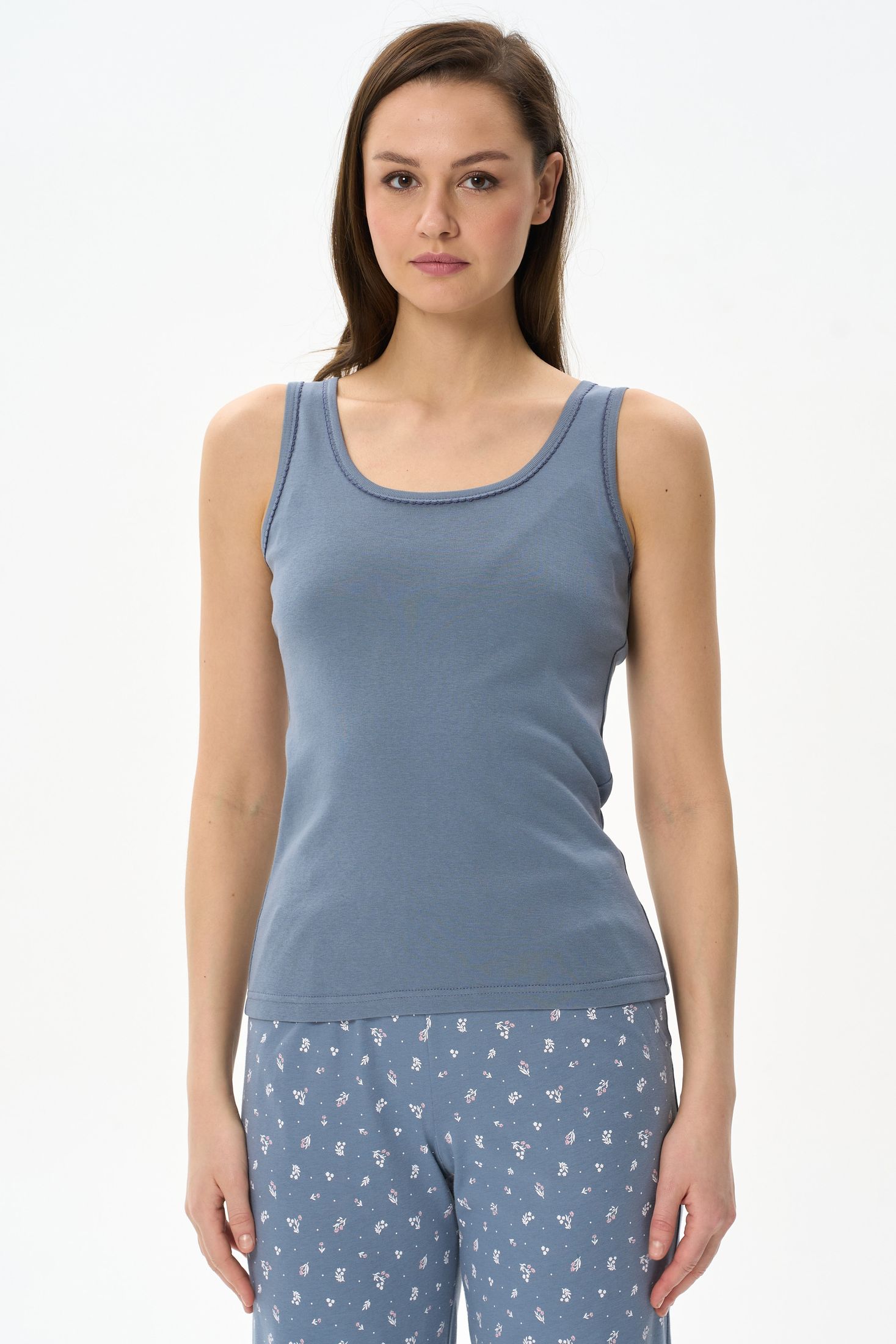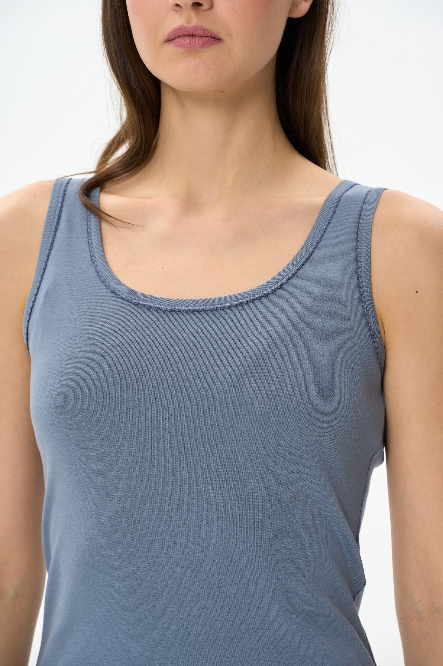 Описание: Комфортная майка из хлопкового трикотажного полотна рибана. Вырез горловины и проймы окантованы. Рост модели на фото 178 см.