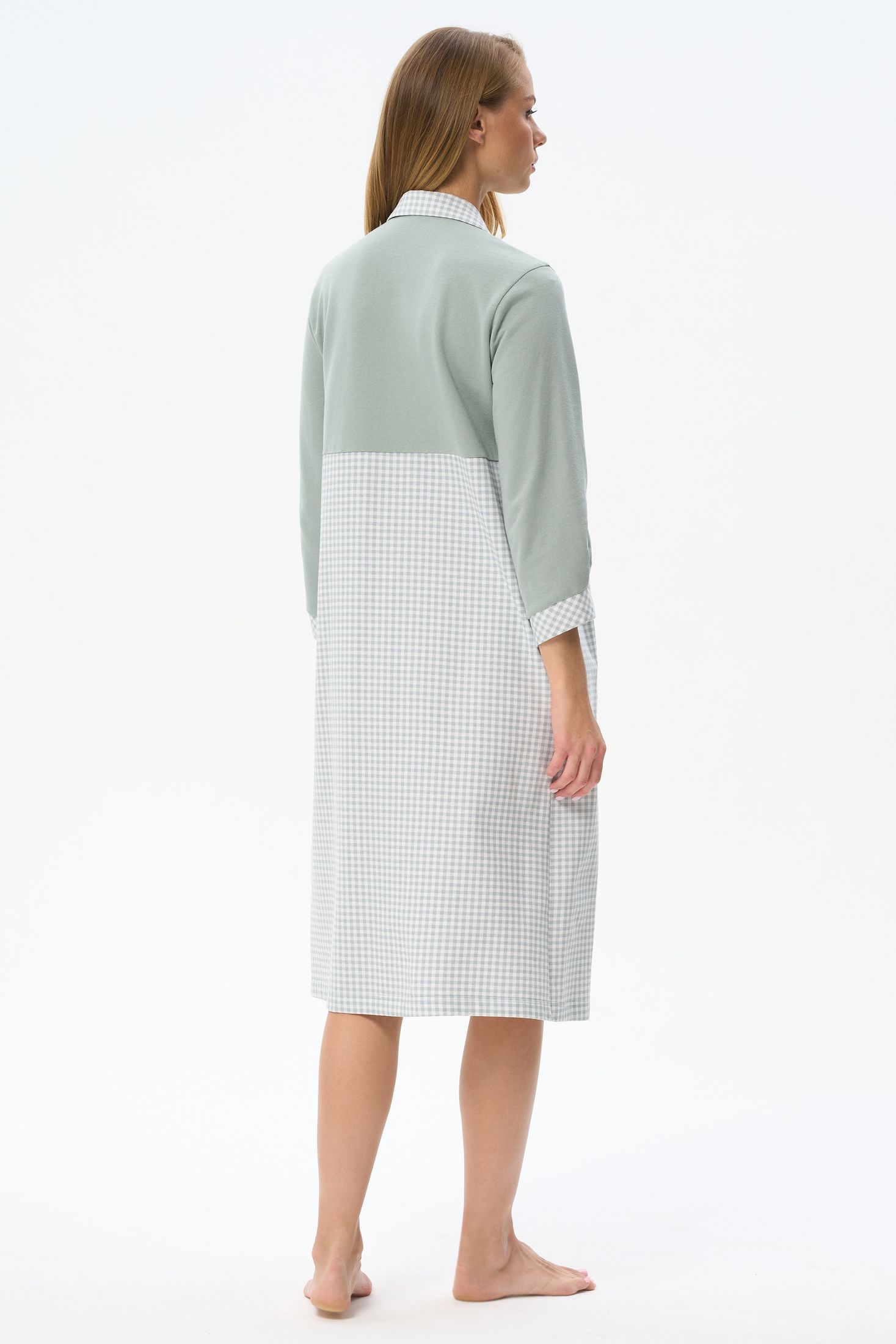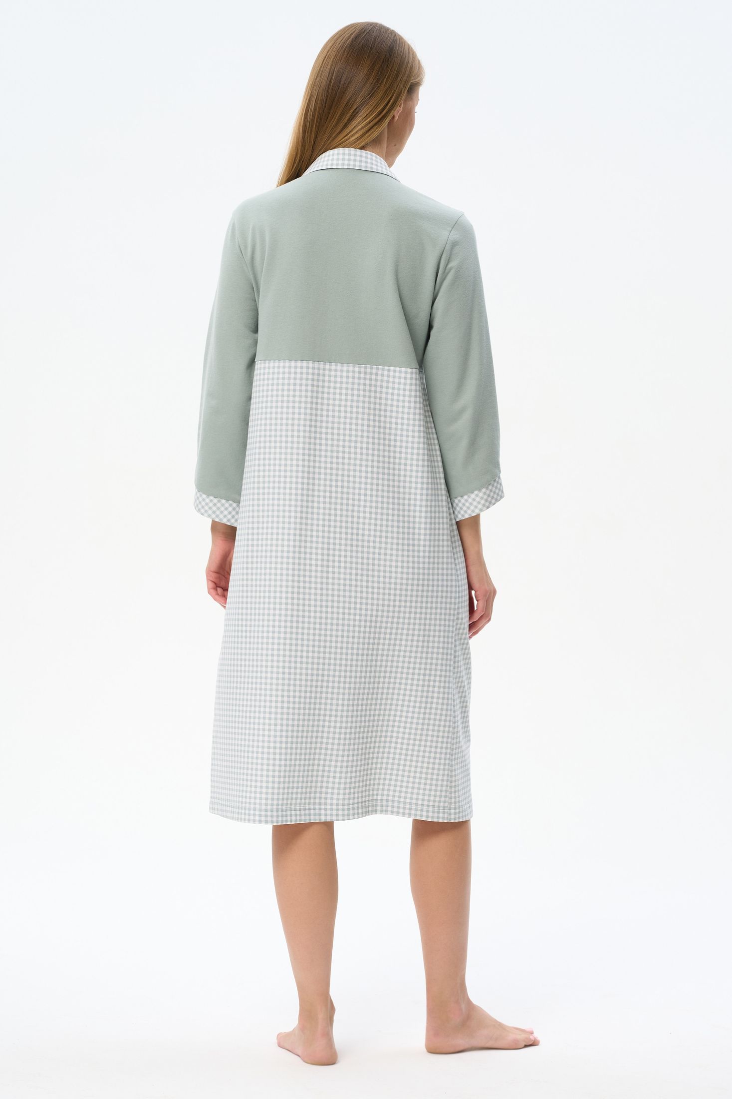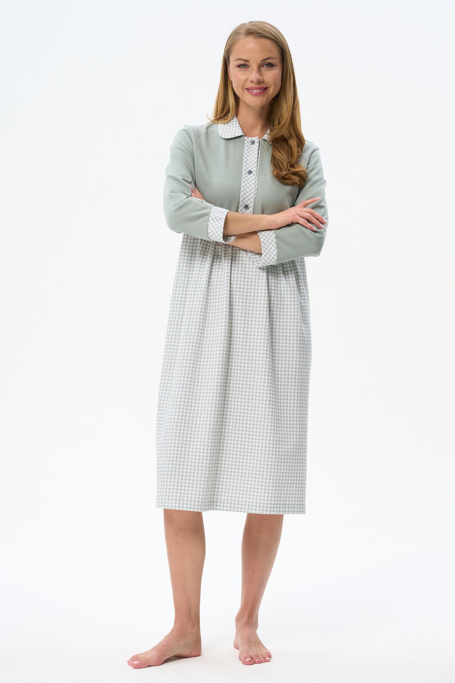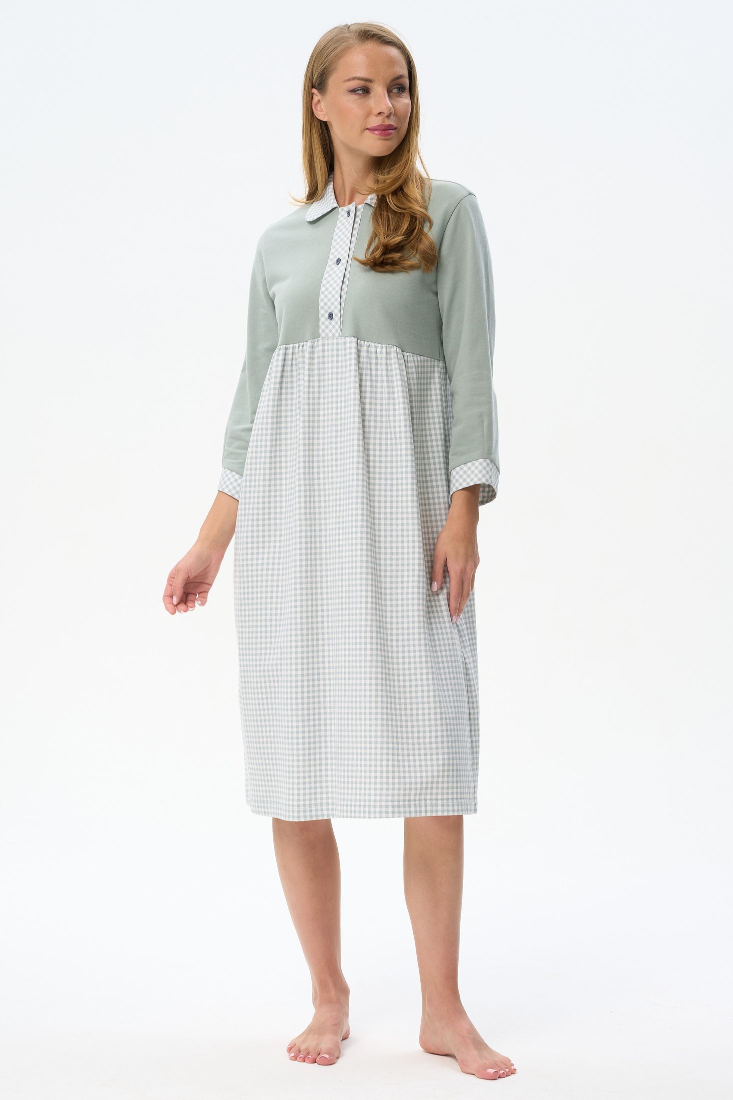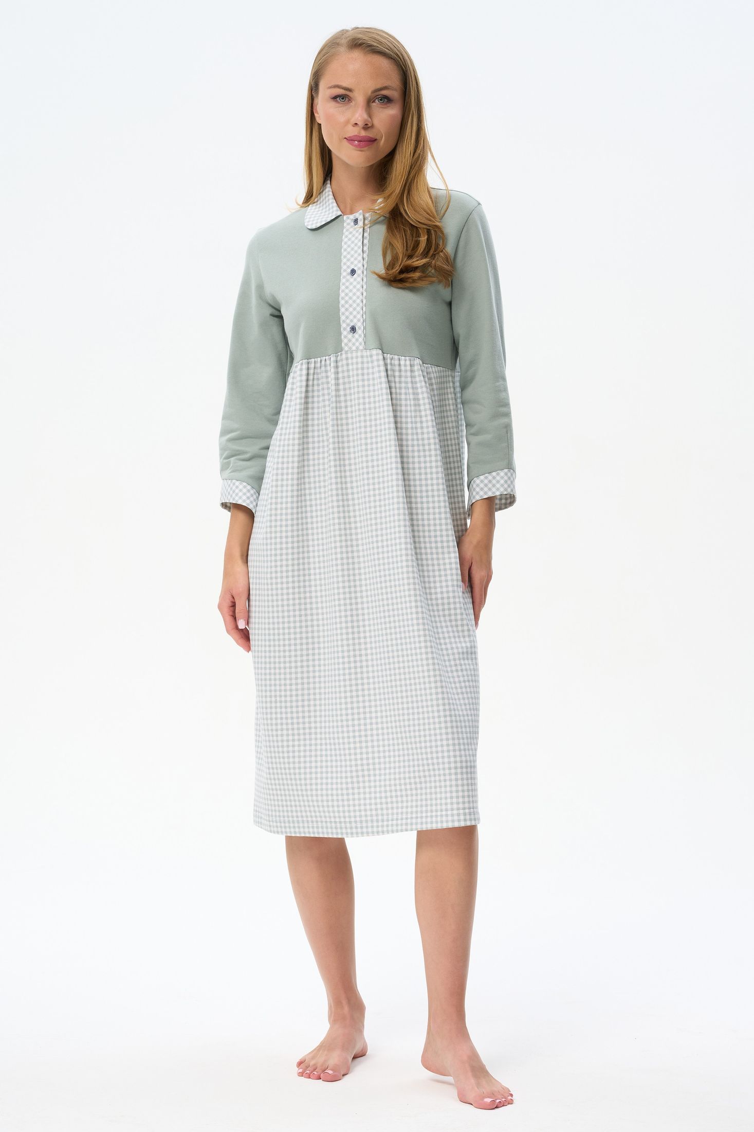 Описание: Ночная сорочка из футера 2х-нитки с начесом. Удлиненная планка с застёжкой на пуговицы. Укороченный рукав с вытачкой. Рост модели на фото 175см.