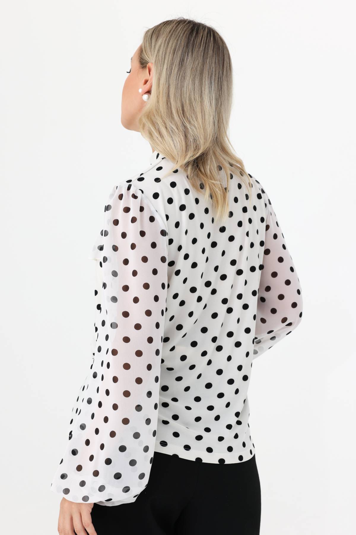 Описание: Блузка выполнена из трикотажного полотна, рукав  - шифон, внизу собран на сборку и окантовку. Воротник - стойка. Блузка спереди украшена шифоновым воланом. Элегантно смотрится, легко стирается, не теряет и не меняет цвет.  Блуза представлена в ярких, современных и модных расцветках. Блузка станет неотъемлемой частью Вашего образа.  Блуза прекрасно подходит для торжеств и повседневных мероприятий. Сочетайте блузу с брюками, юбками, и с любым типом обуви. Блузка бренда RISE - это стиль, качество и комфорт!