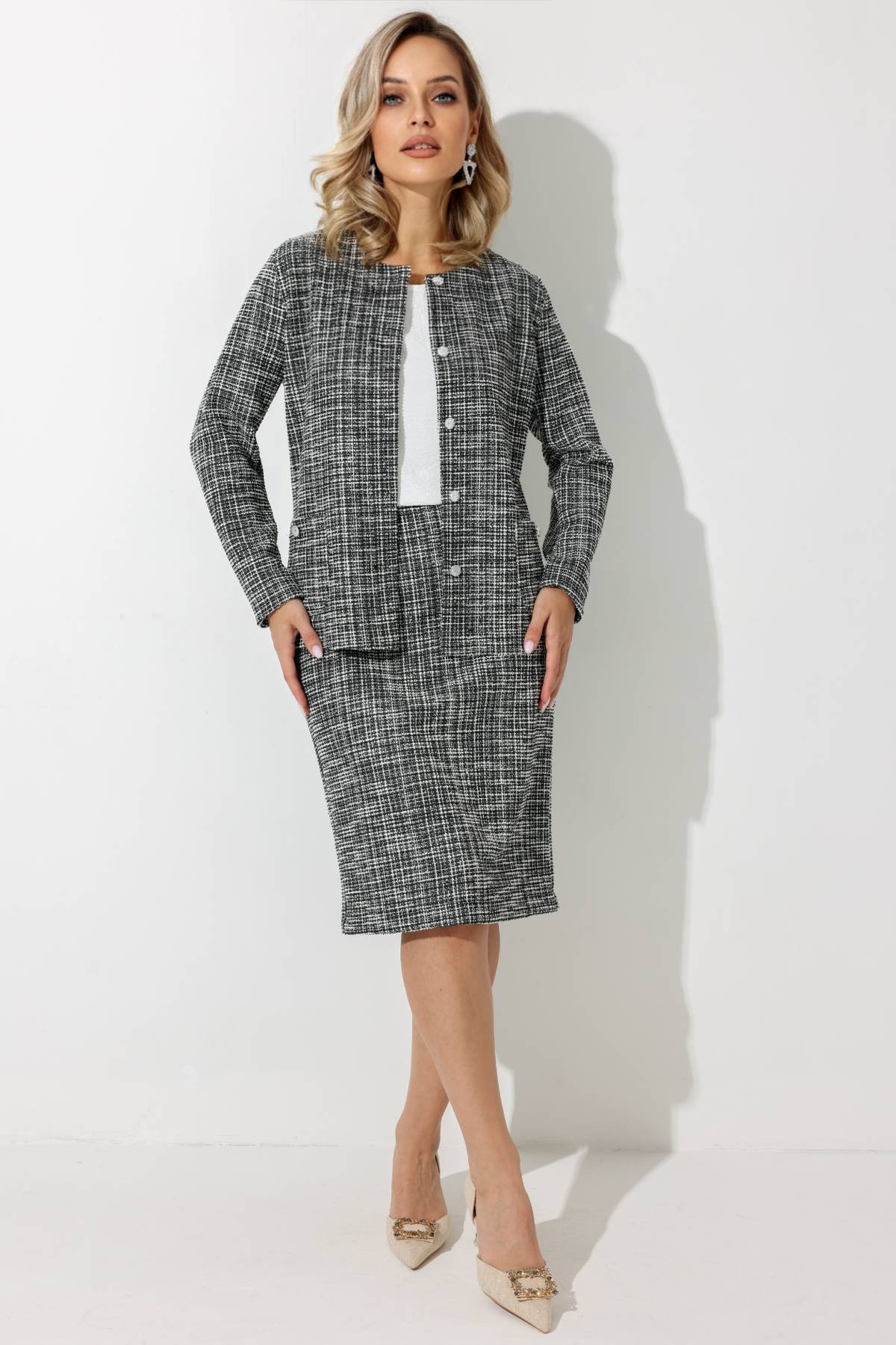 Описание: Элегантная облегающая офисная юбка из трикотажа под "шанель" на резинке. Юбка с высокой талией прекрасно садится на разные фигуры за счет особенности кроя и эластичности ткани. Материал приятен к телу, мягко ложится по любой фигуре, хорошо тянется, не мнется, не сыплется. Юбка без подкладки идеально подходит для важных мероприятий и создания делового образа в офисе, визуально удлиняет ноги, стройнит, подчеркивает линию бедер. Юбка - универсальная незаменимая вещь в гардеробе!