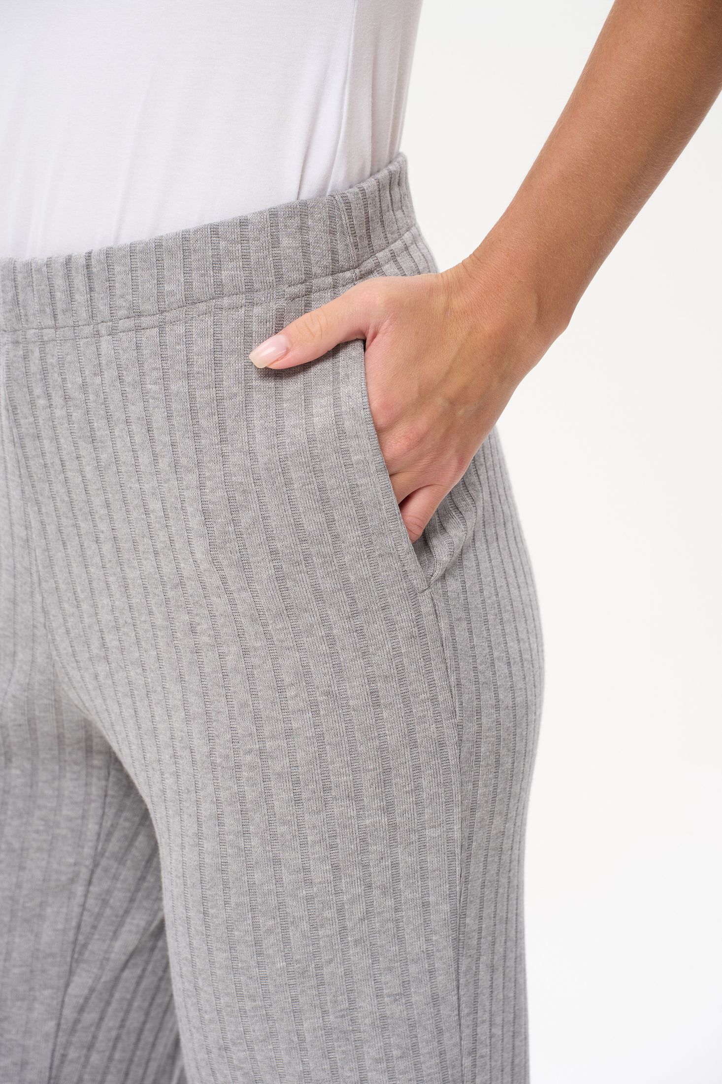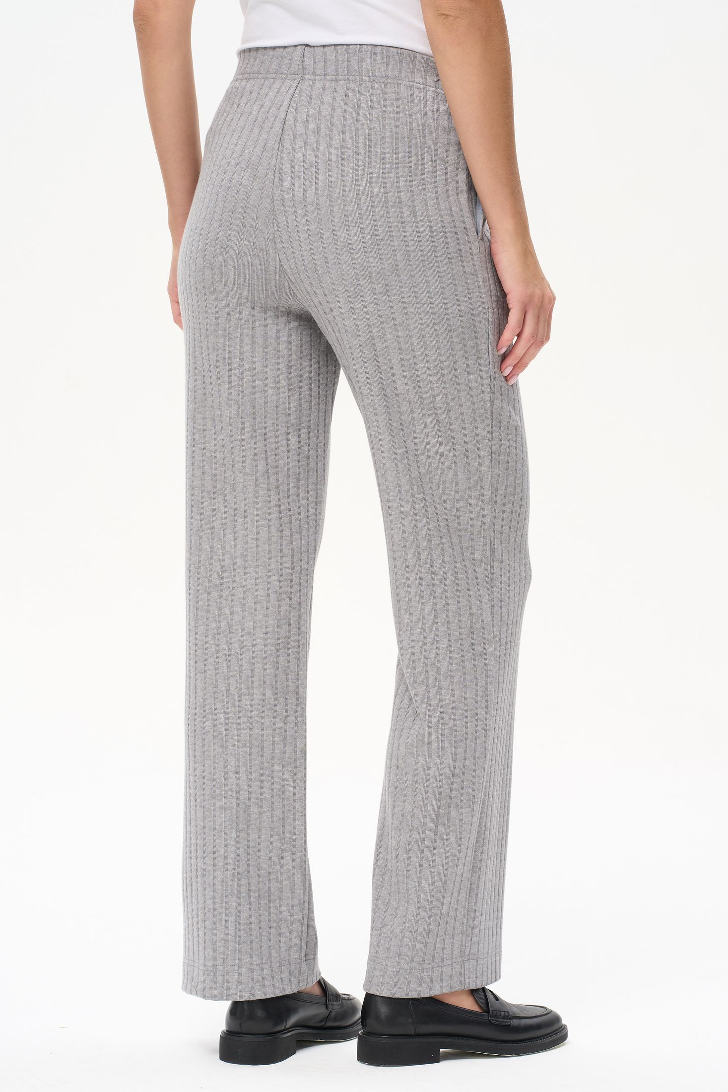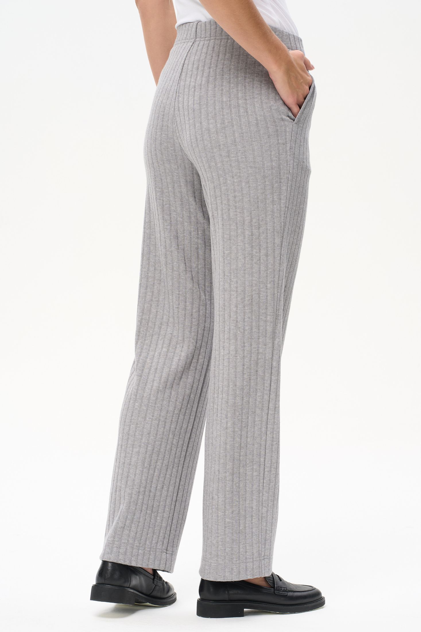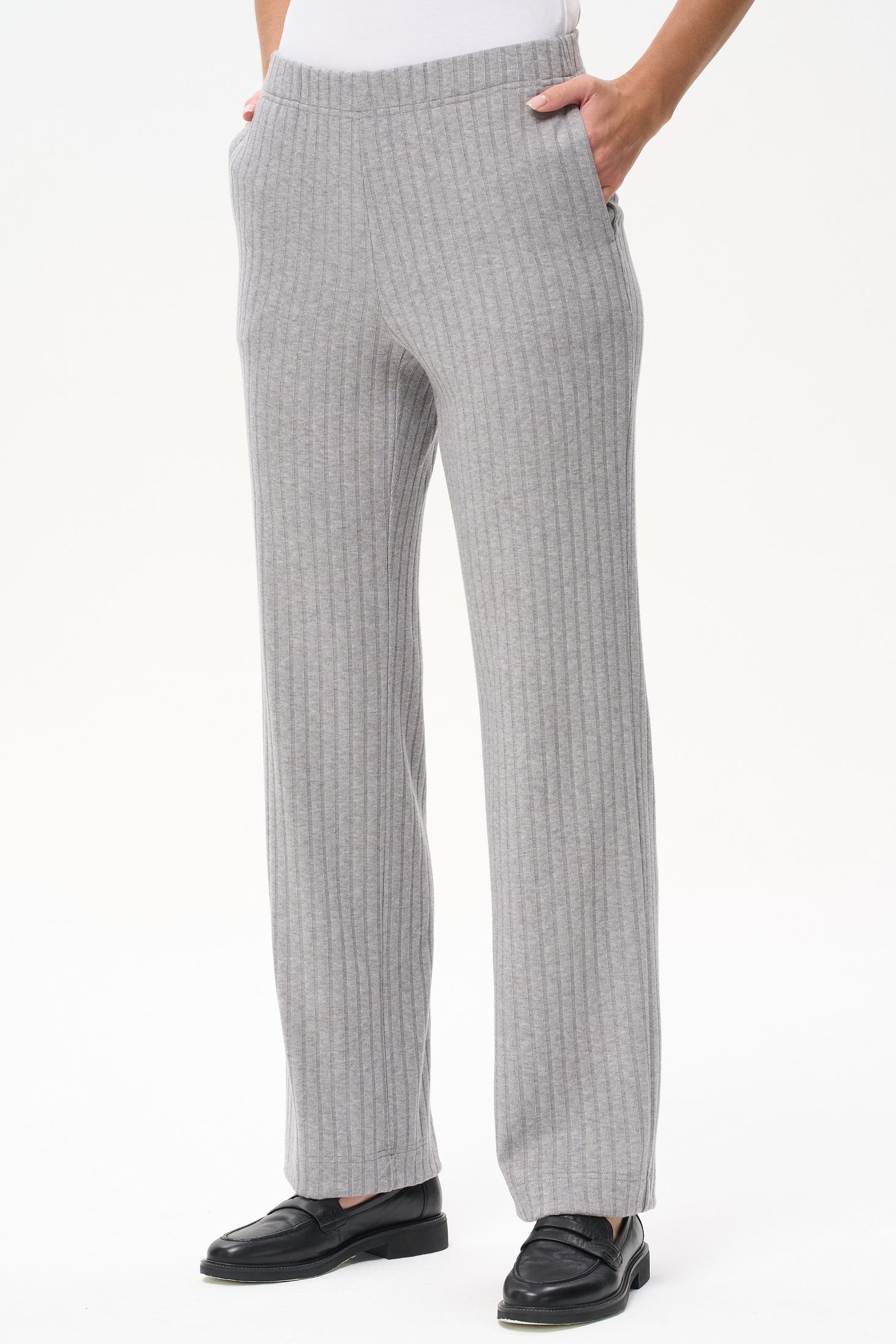 Описание: Прямые брюки из фактурного вискозного полотна серого цвета. В боковых швах карманы, пояс с эластичной лентой внутри. Длина брюк по боковому шву в 44 размере - 103 см. Рост модели на фото 178 cм.