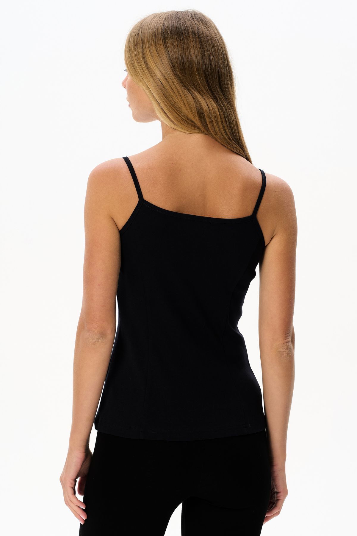 Описание: Майка на тонких бретелях из хлопкового трикотажного полотна. Рост модели на фото 178см.