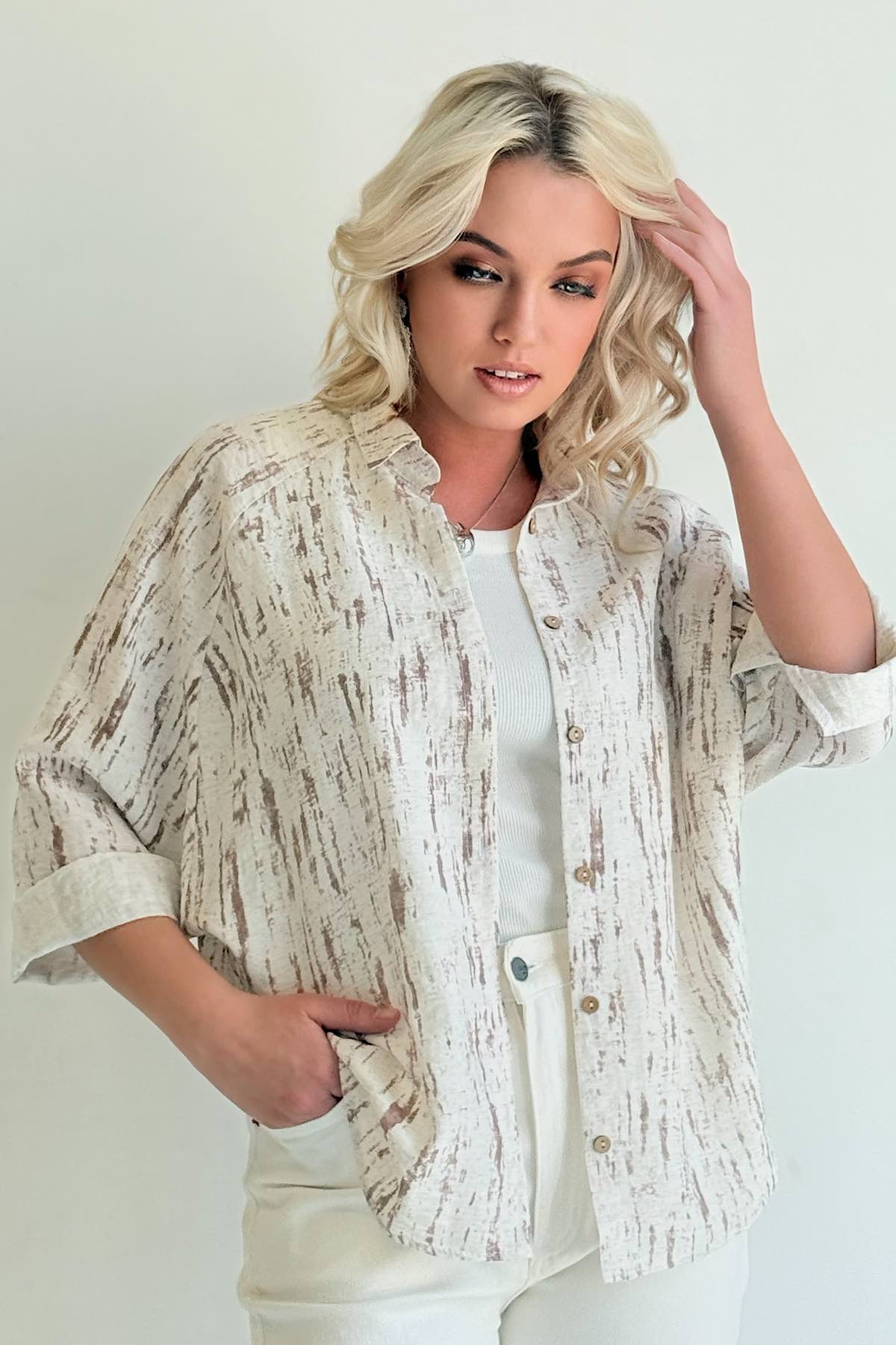 Описание: Стильная рубашка свободного силуэта из вискозной органзы. Модель "летучая мышь". Отложной воротник. Длина рукава 3/4. Идельно подходит для работы и отдыха.