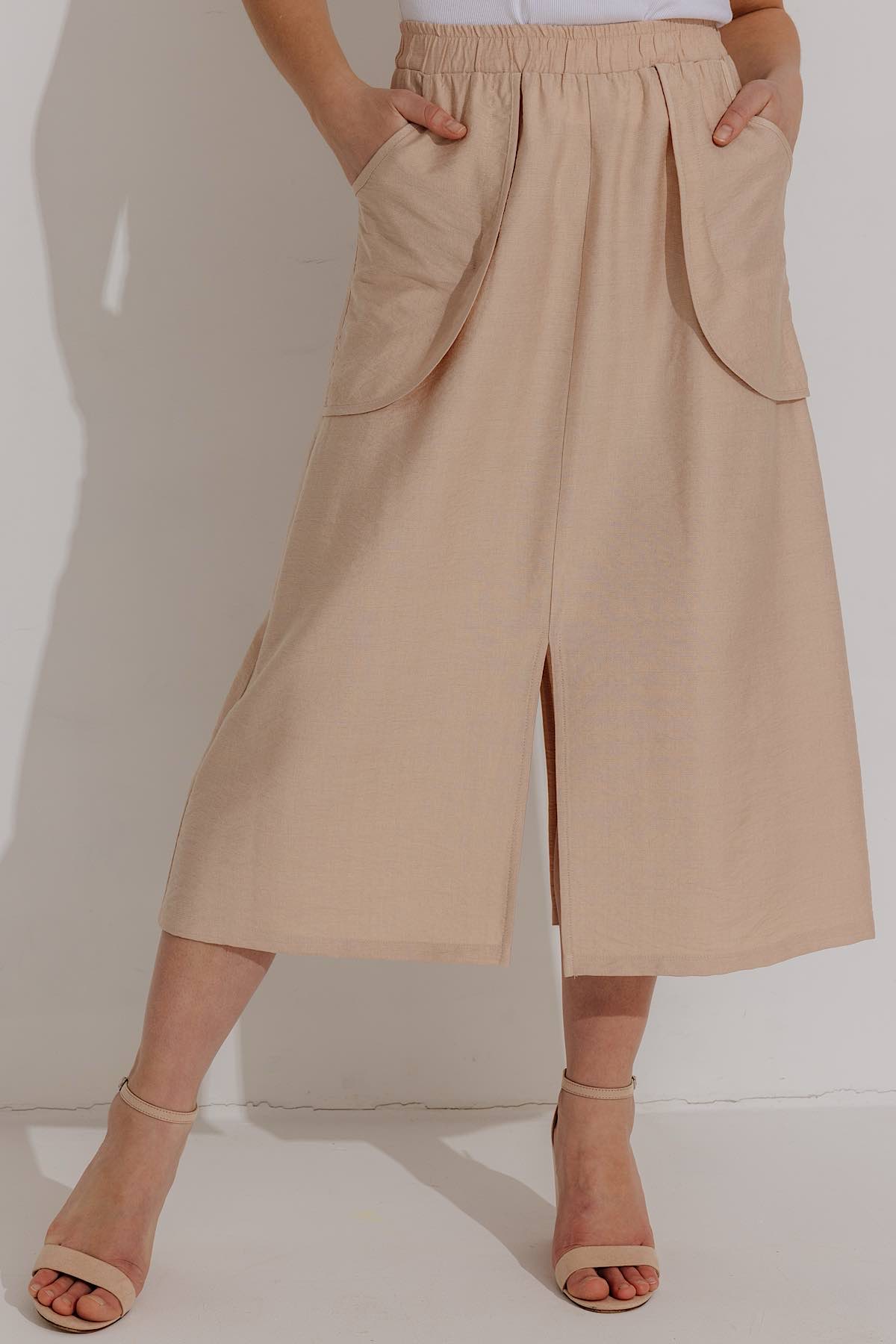Описание: Юбка лён-бохо, с эффектом "варенки, благодаря этому изделие не даёт усадку при стирке. Юбка женская из льна с притачным поясом на резинке, что обеспечивает дополнительный комфорт при носке. Два накладных кармана.