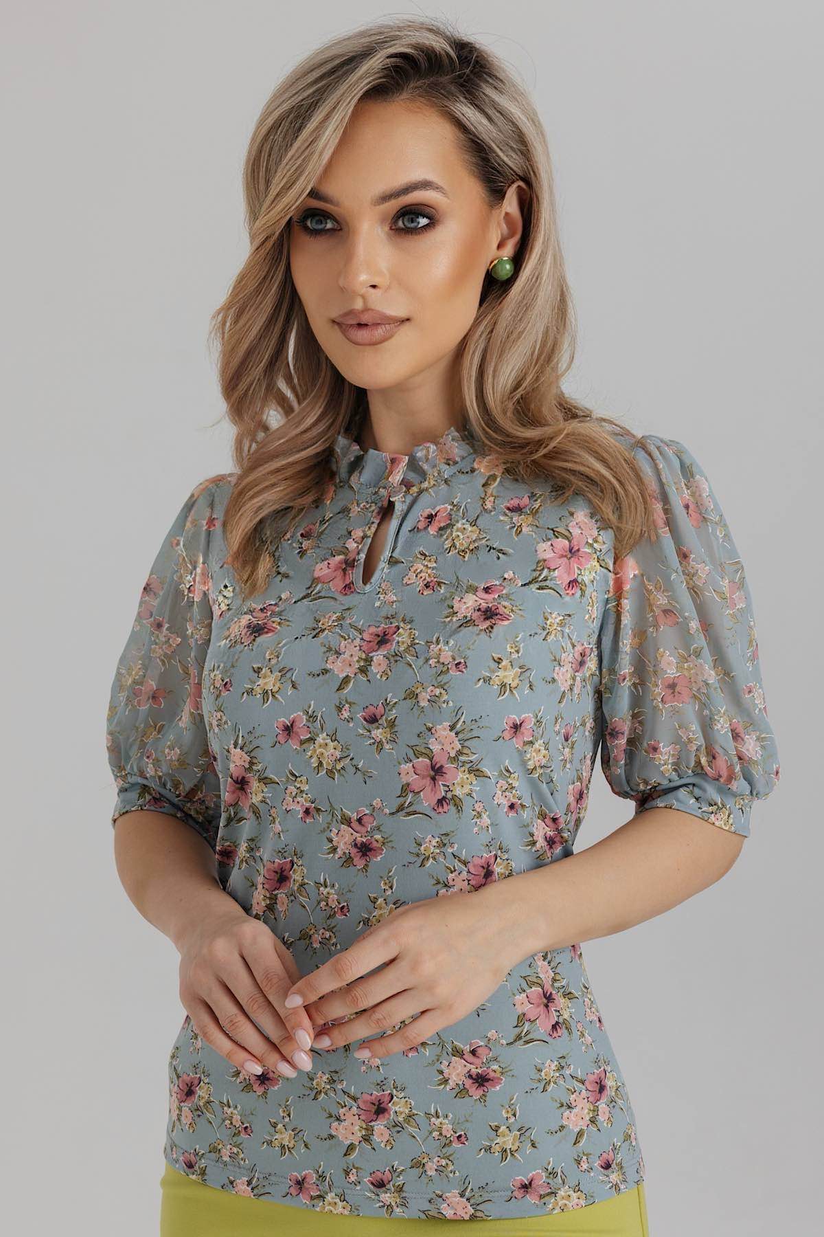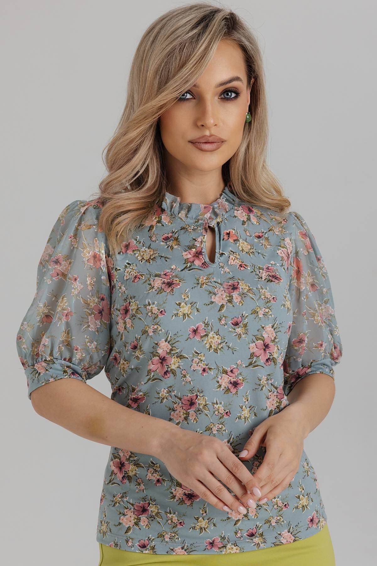 Описание: Блузка выполнена из трикотажного полотна, рукав короткий. Горловина украшена рюшей с застежкой на петлю и пуговицу. Элегантно смотрится, легко стирается, не теряет и не меняет цвет. Так как в ткани используется большое количество вискозы, ткань дышащая и легко пропускает воздух, сохраняет форму и посадку даже после многочисленных стирок. Блузка представлена в ярких, современных и модных расцветках. Блузка станет неотъемлемой частью Вашего образа. Блуза прекрасно подходит для торжеств и повседневных мероприятий. Сочетайте блузу с брюками, юбками, и с любым типом обуви. Блузка бренда RISE - это стиль, качество и комфорт!