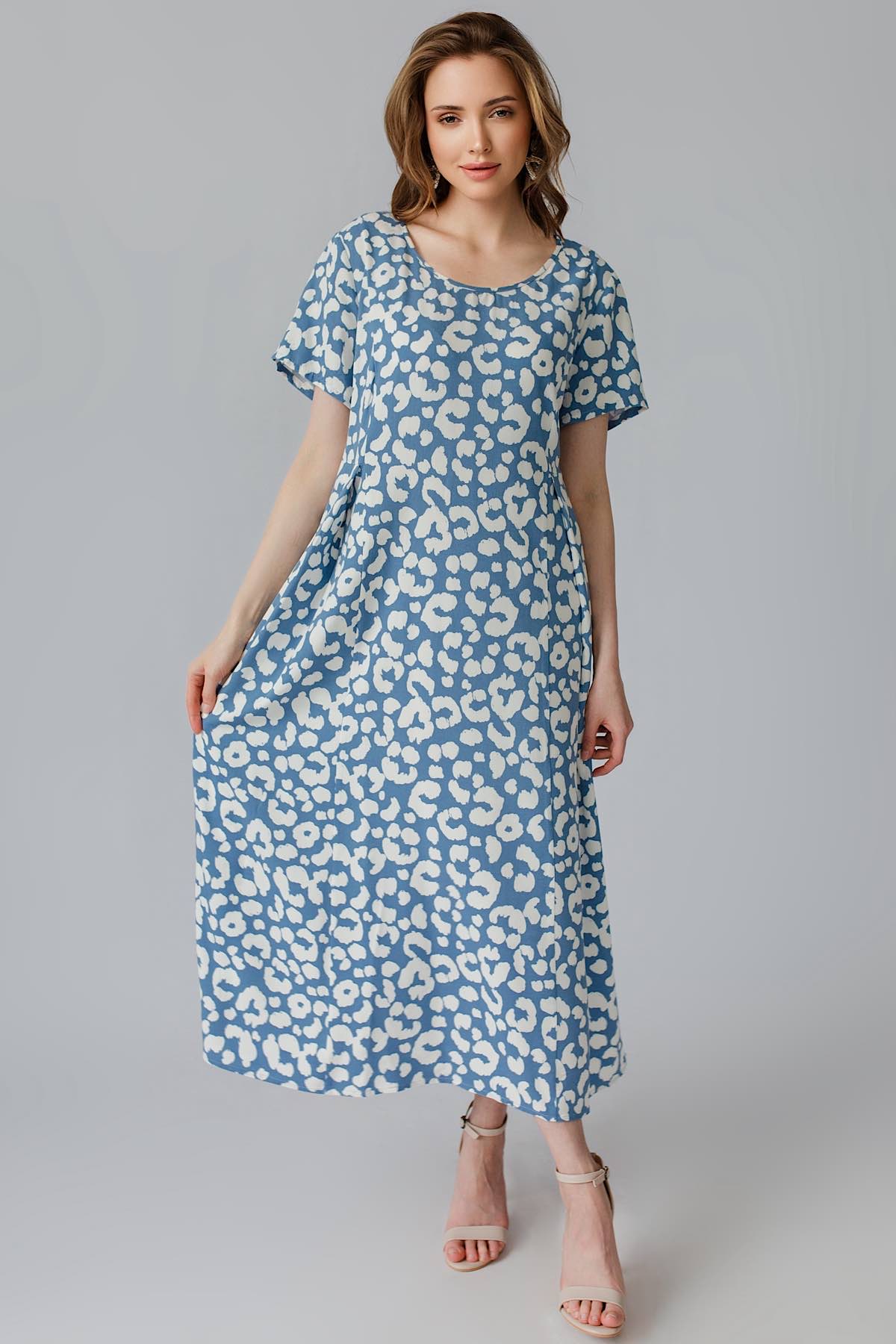 Описание: Летнее женское платье из штапеля твил. Вы будете чувствовать себя комфортно даже в самую жаркую погоду. Эффектно струится при ходьбе. Этот образ подчеркнет вашу женственность и романтичность. Фирменные лекала гарантируют хорошую посадку. Стирка при 30 градусов, усадка 5%, учитывайте при выборе размера.