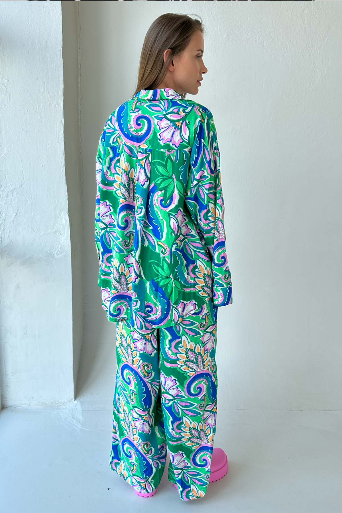 Описание: Тренд сезона! Стильный костюм с широкими брюками из 100% вискозы. Брюки с высокой линией талии, расширяются от пояса, карманы в боковом шве. Они прекрасно подчёркивают особенности женской фигуры. Длина изделия см. Рубашка удлиненная свободного кроя. Пуговицы сделаны из скорлупки кокоса. Длина изделия см. Для кроя костюма используются качественные лекала и премиум ткань, что опеспечивает ровную посадку по фигуре, удобство и практичность в уходе и долгую носку.