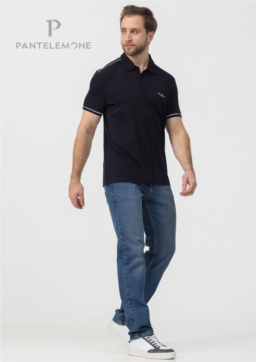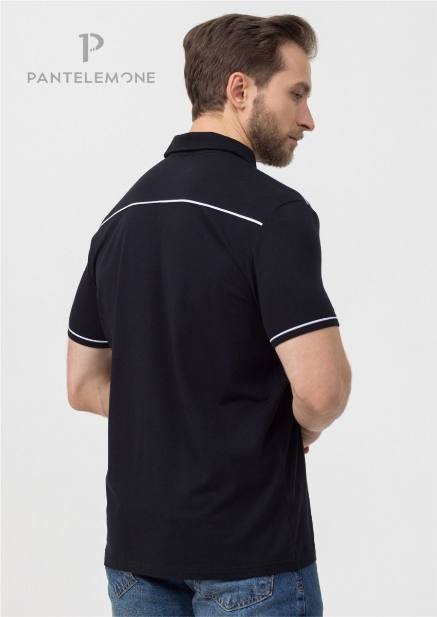 Футболка поло с втачным рукавом, полуоблегающего силуэта, с отложным воротником, застежка на пуговицах. На передней детали и на спинке контрастные канты.