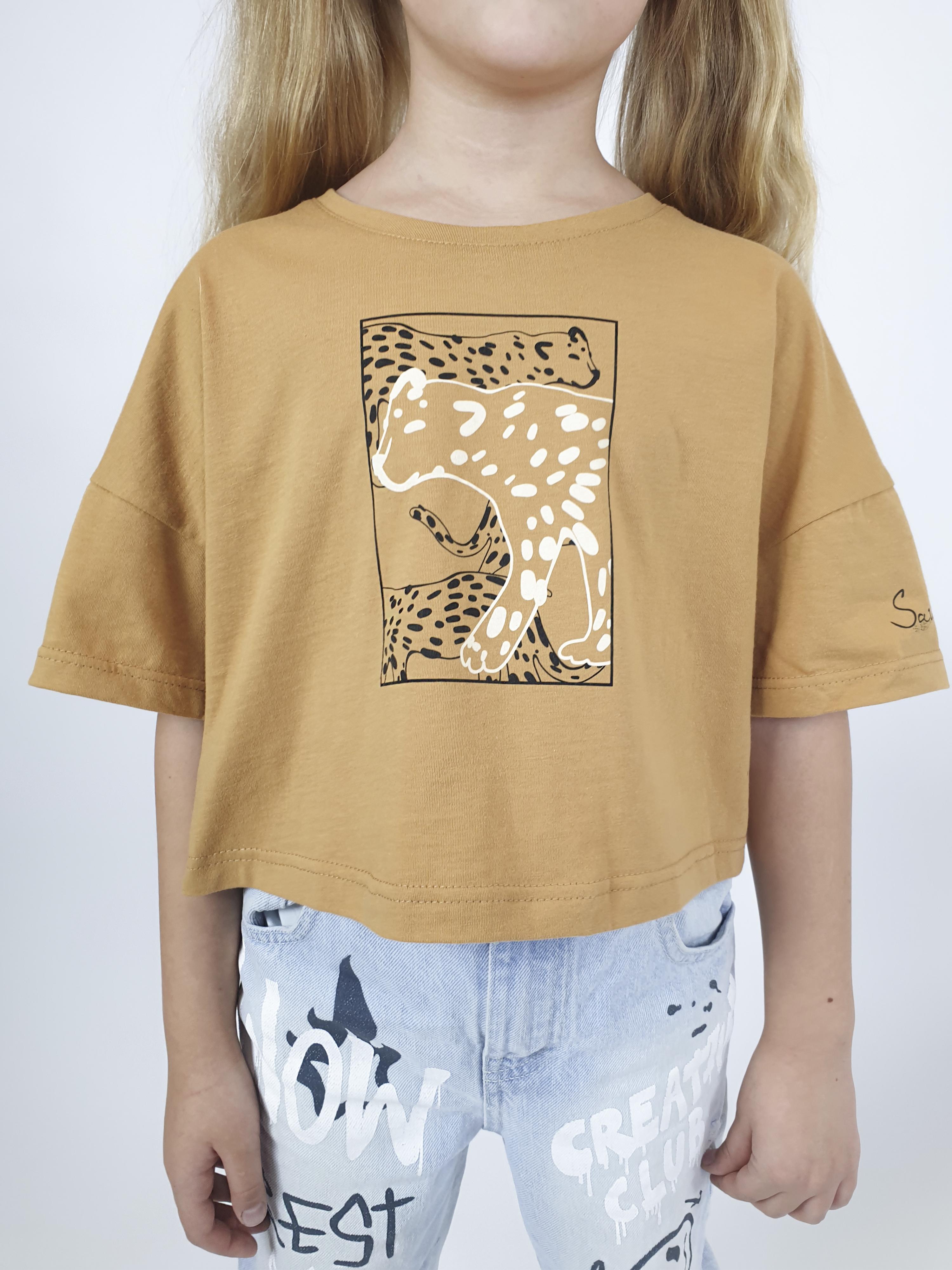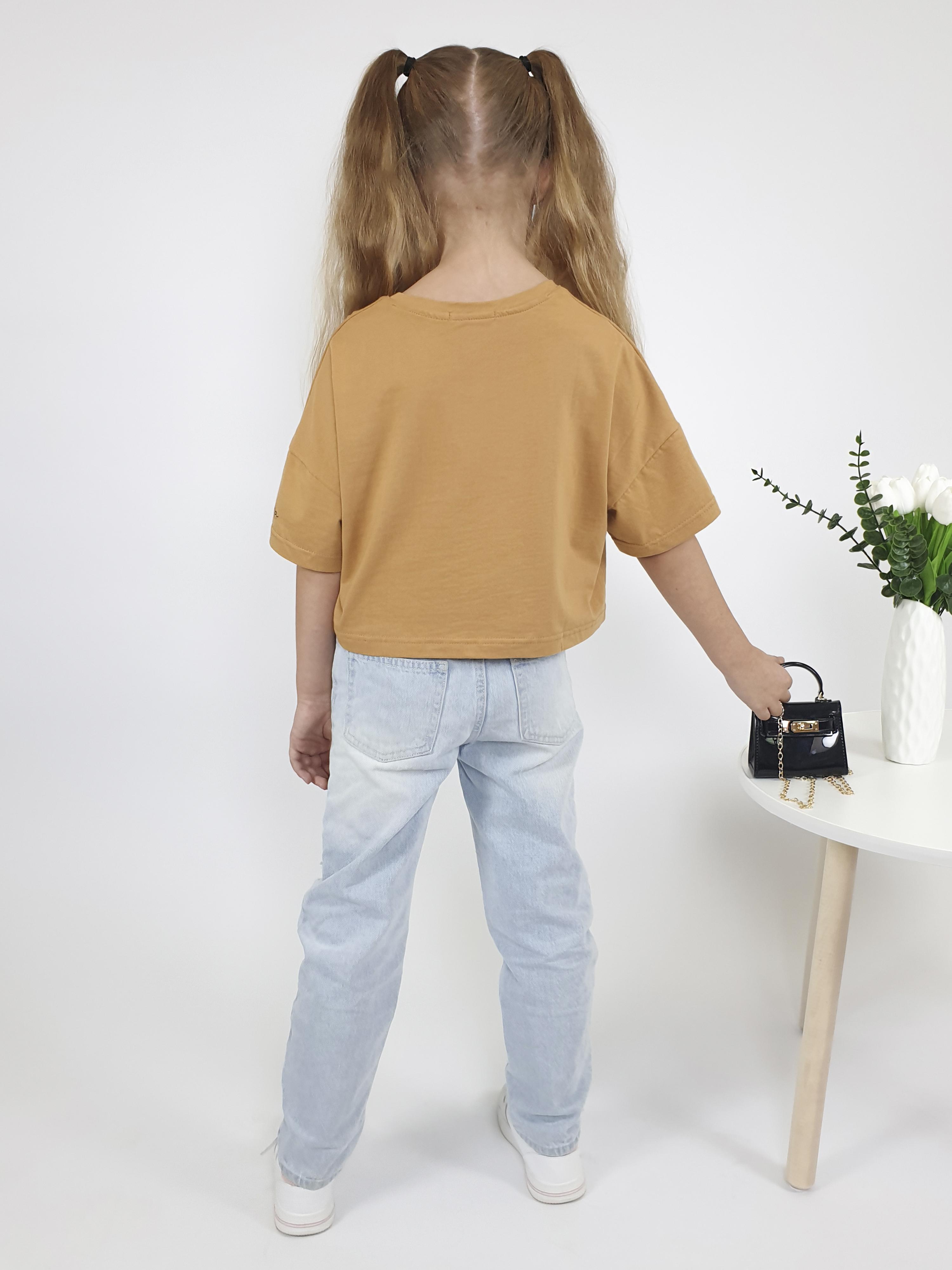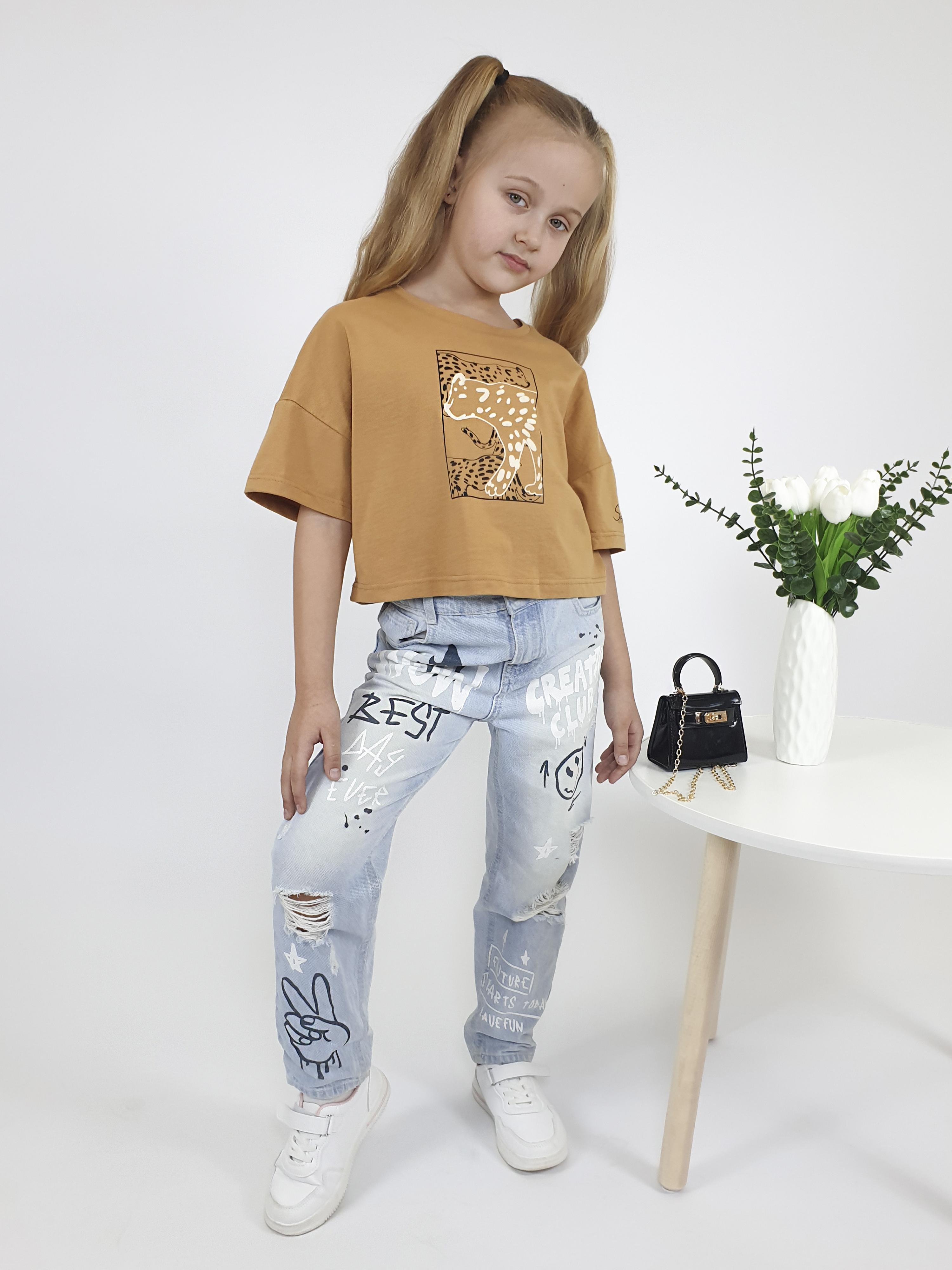 Фуфайка(оверсайз)-укороченная, спущенное плечо, короткий рукав. Печать на переде, горловина обработана планкой.