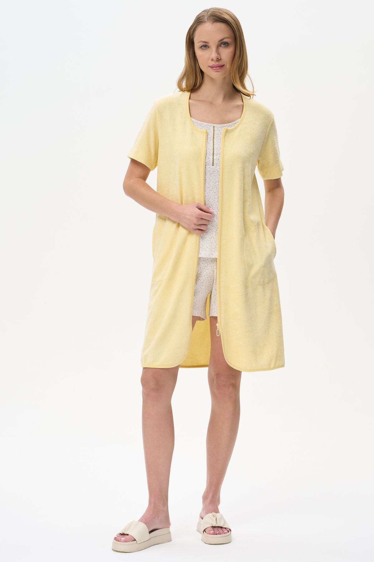 Описание: Пижама выполнена из хлопкового полотна. Майка с круглым вырезом горловины. Спереди подрез и средний шов декорирован мережкой. Шорты без карманов, пояс с эластичной лентой внутри. Рельефные швы шорт декорированы мережкой. Рост модели на фото 178см.