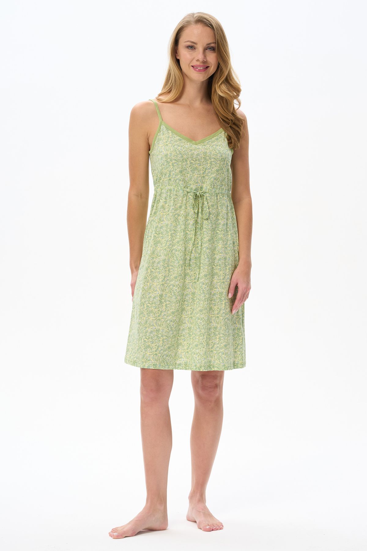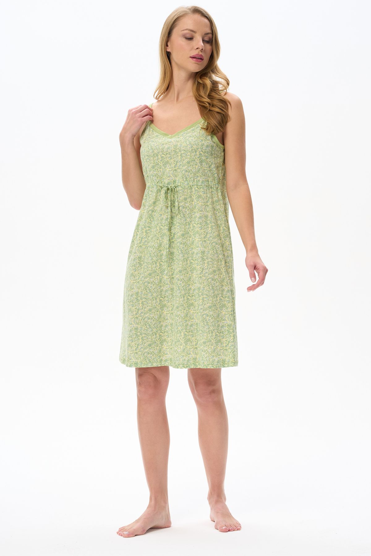 Описание: Ночная сорочка полуприлегающего силуэта, выполнена из хлопкового трикотажного полотна. Посадка по фигуре регулируется кулиской. Длина изделия до колена. Рост модели на фото 178см.