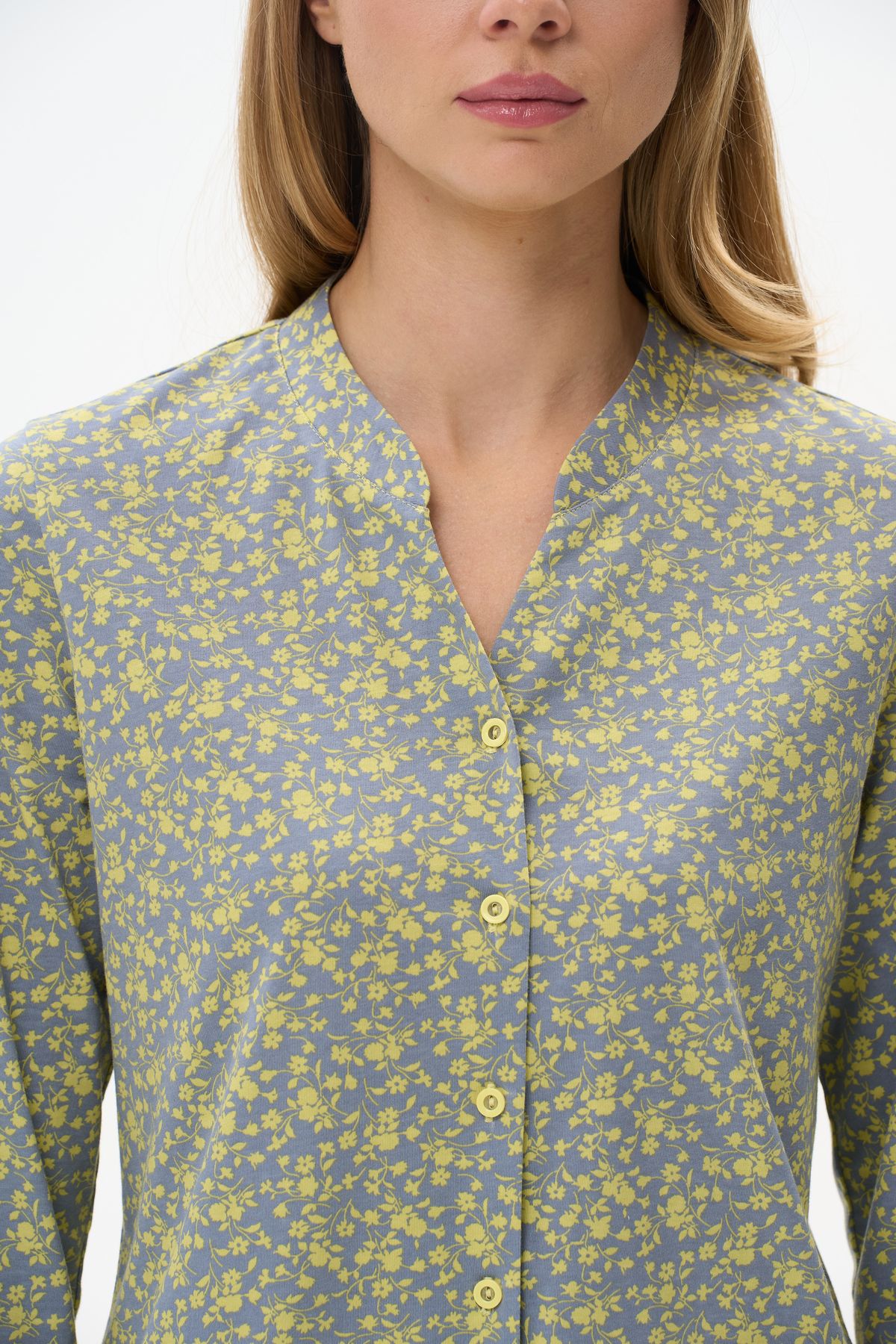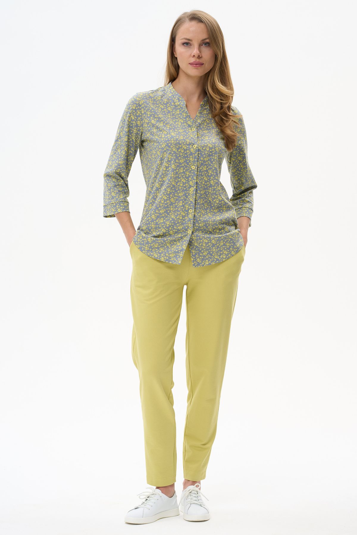 Описание: Блузка прямого силуэта из хлопкового полотна. Воротник стойка, застежка на пуговицы. Втачной рукав 7/8 . Рост модели на фото 178см.