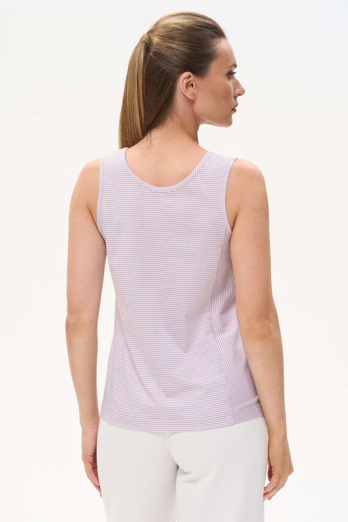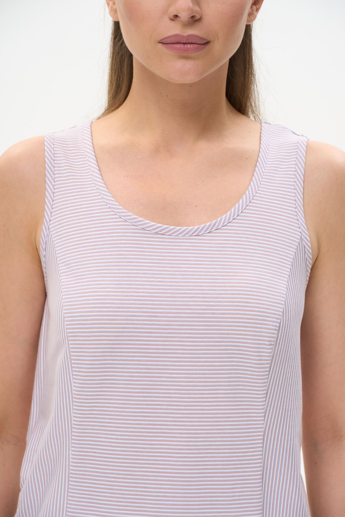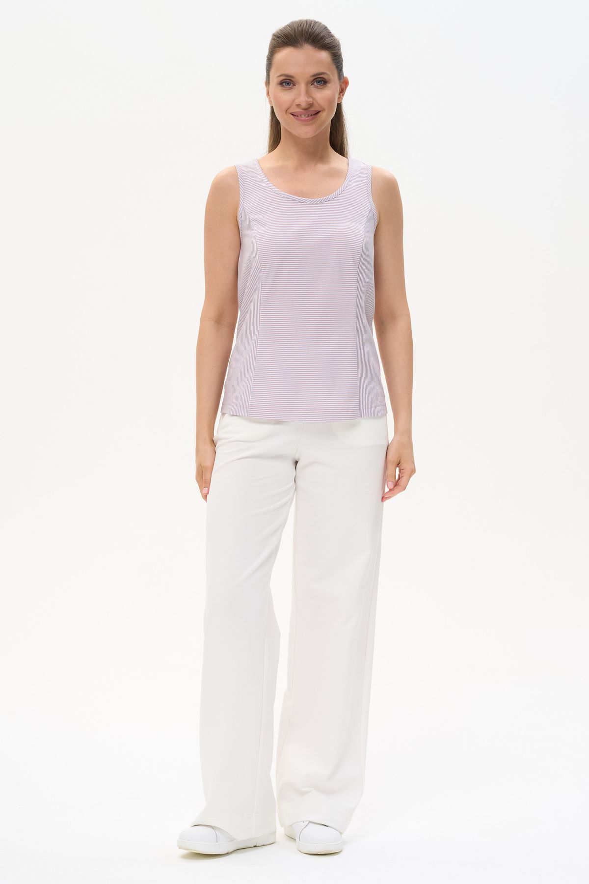Описание: Майка из хлопкового трикотажного полотна. Круглый вырез горловины и проймы окантованы, рельефные швы. Рост модели на фото 175 см.