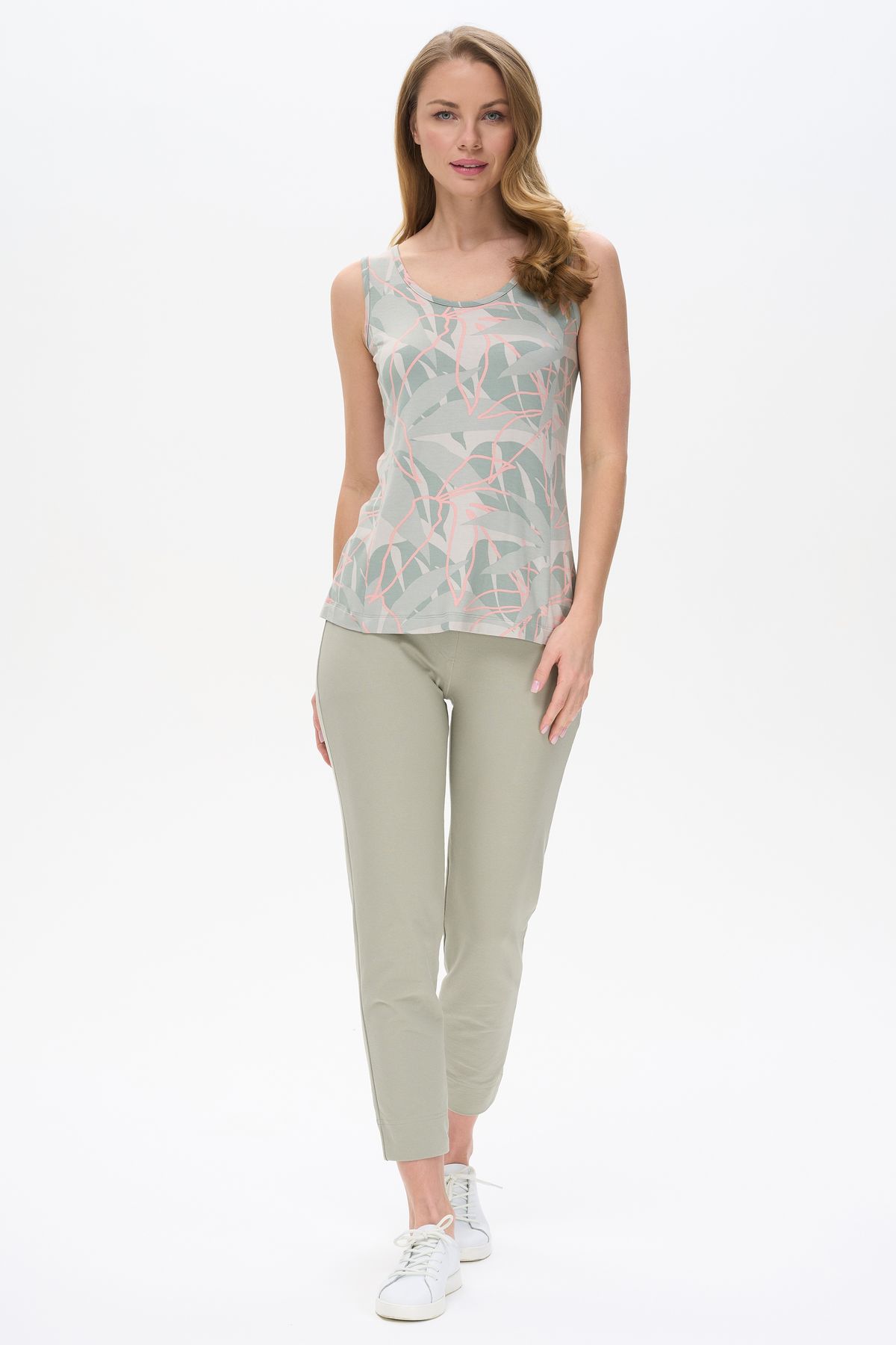 Описание: Комфортная майка из вискозного трикотажного полотна с эластаном. Круглый вырез горловины и проймы окантованы, рельефные швы. Рост модели на фото 177
