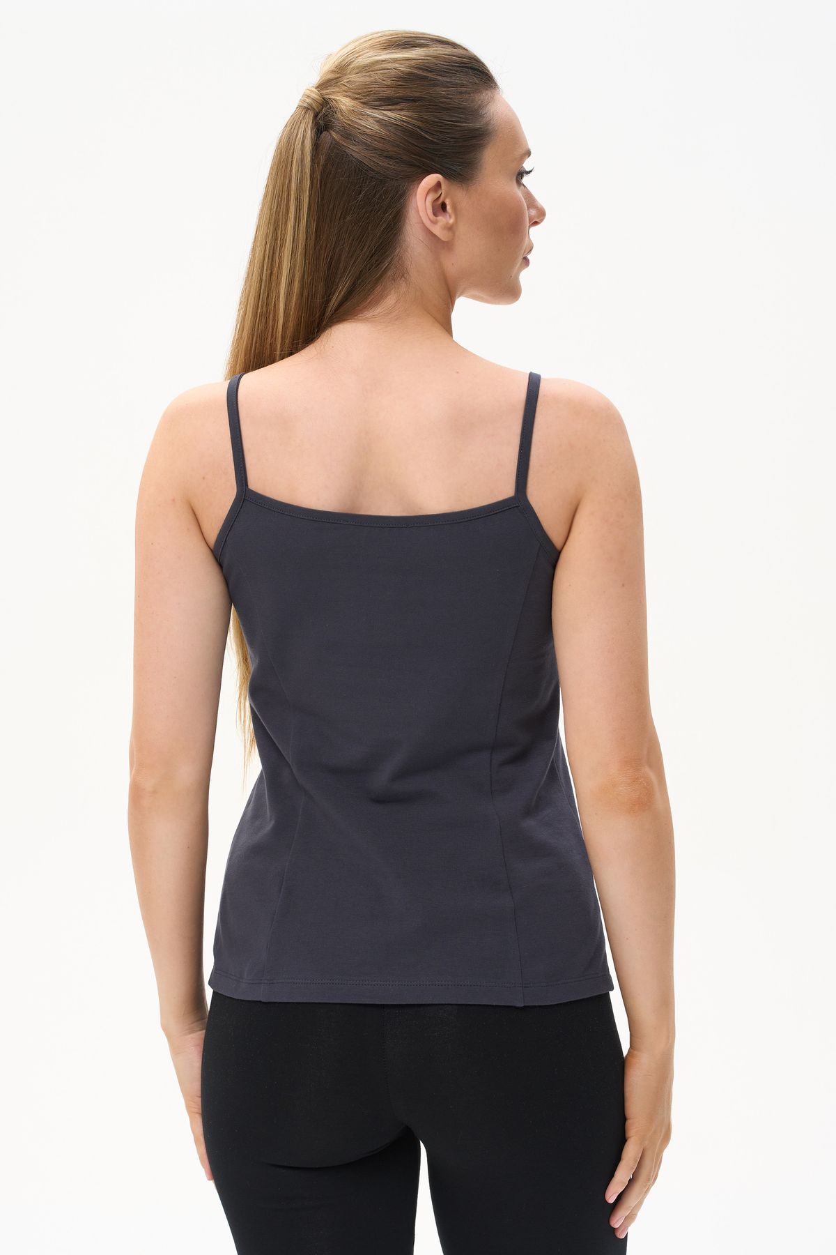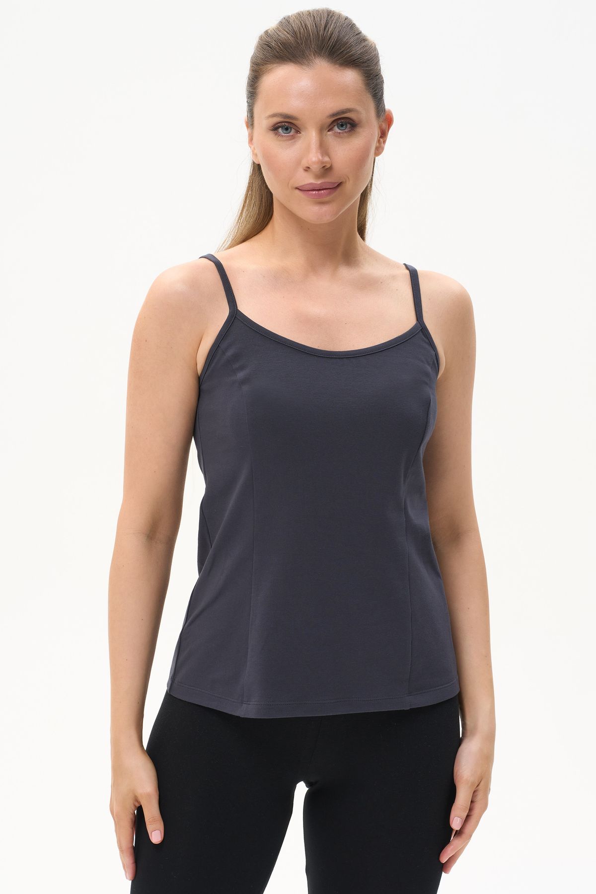 Описание: Майка на тонких бретелях из хлопкового трикотажного полотна с эластаном. Рост модели на фото 177см.
