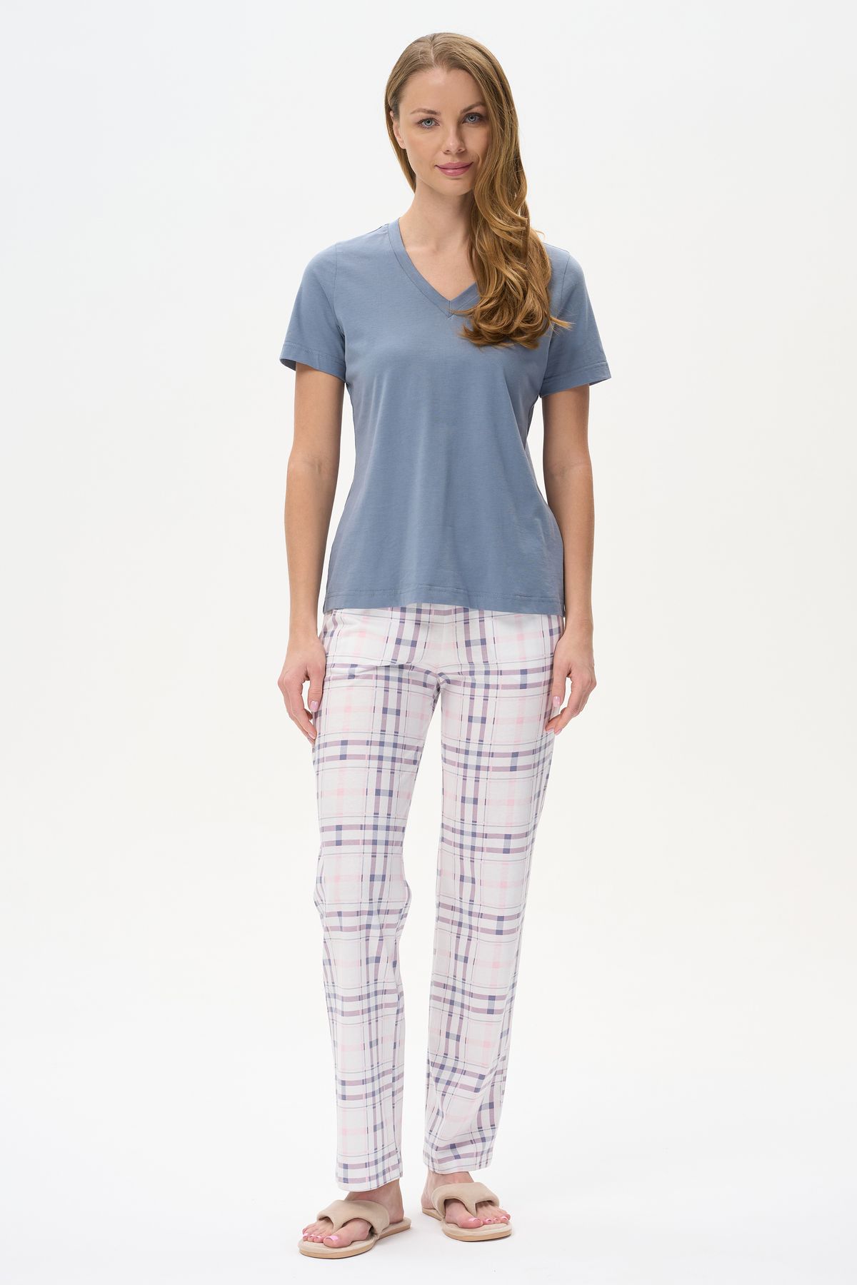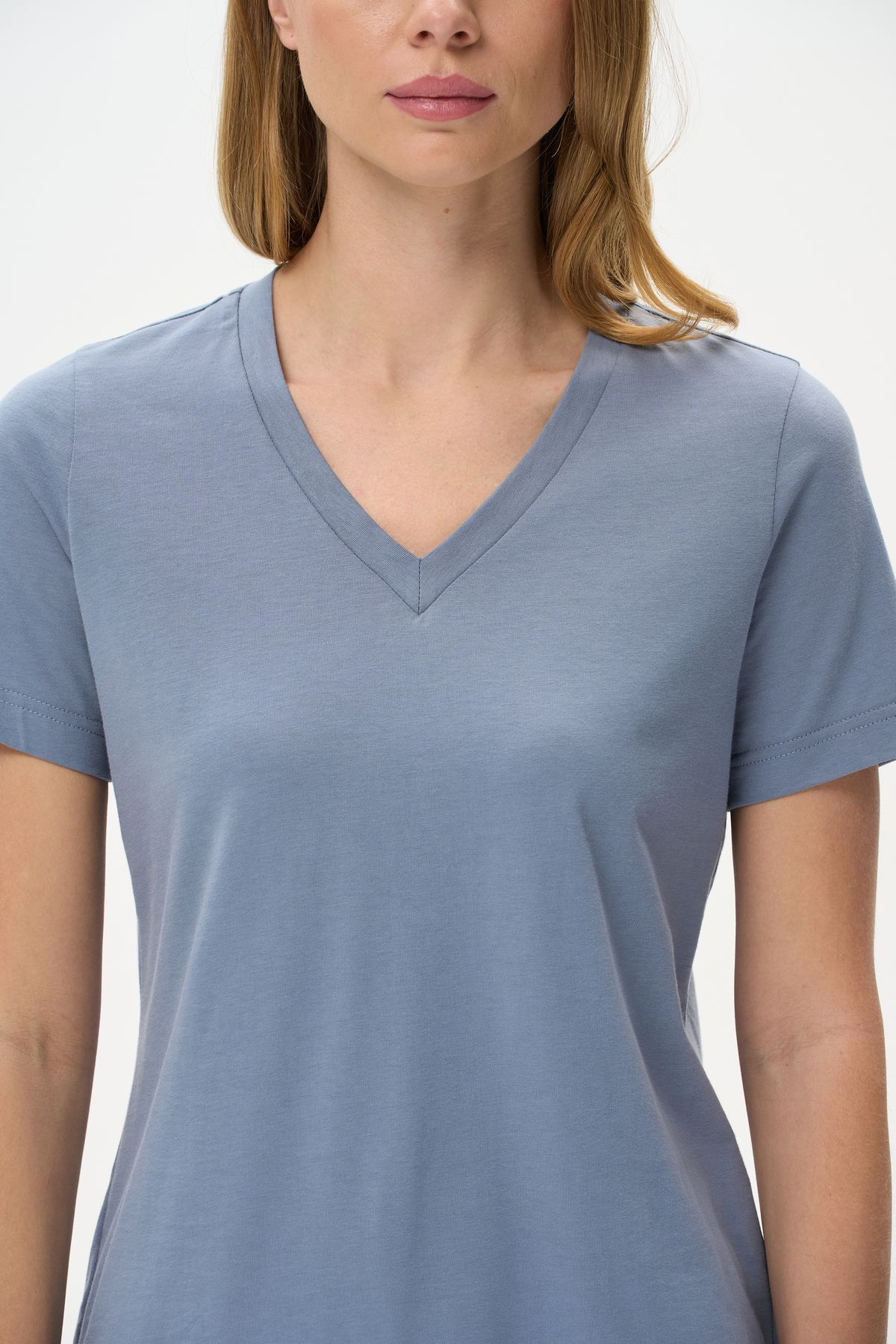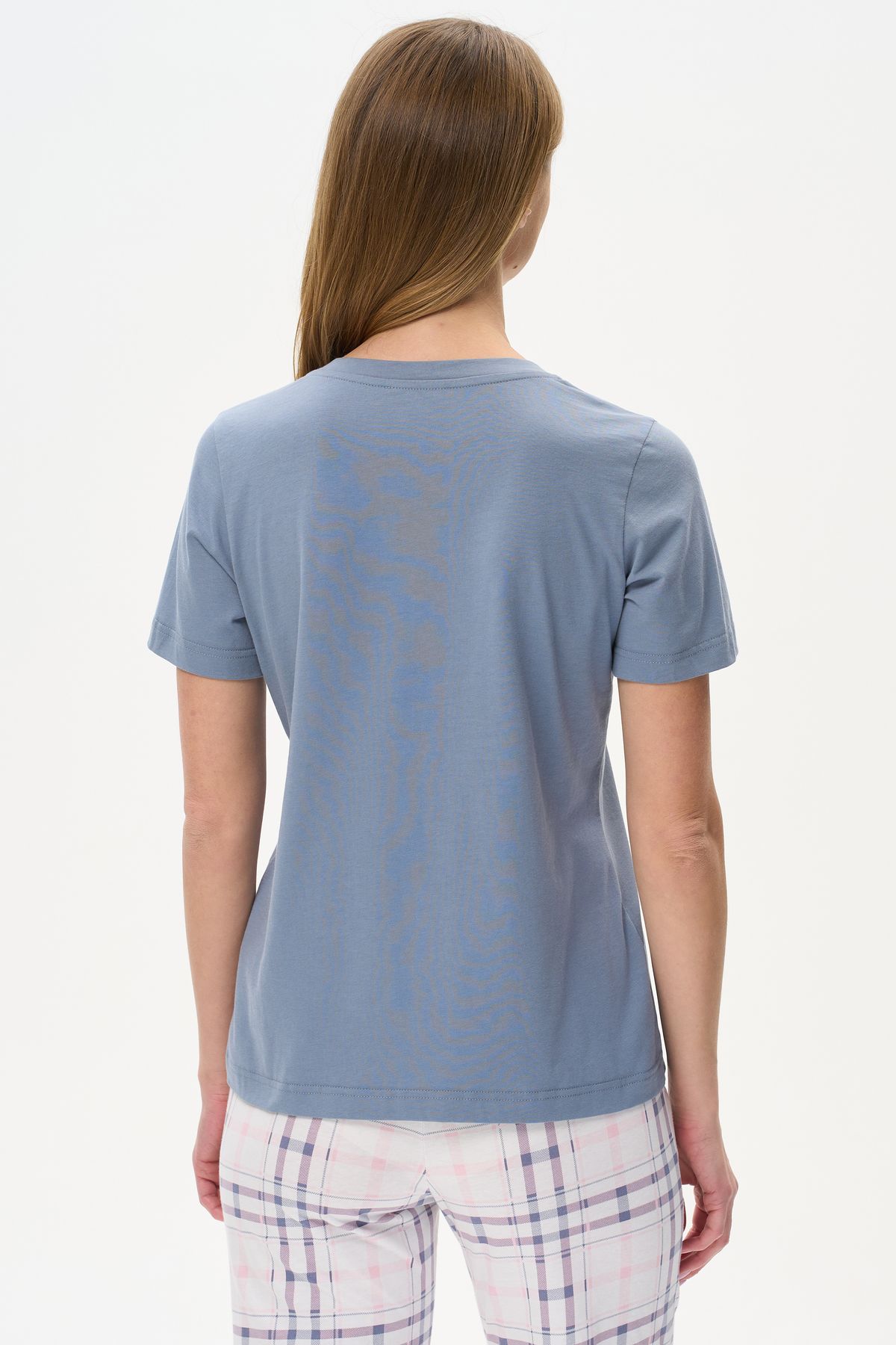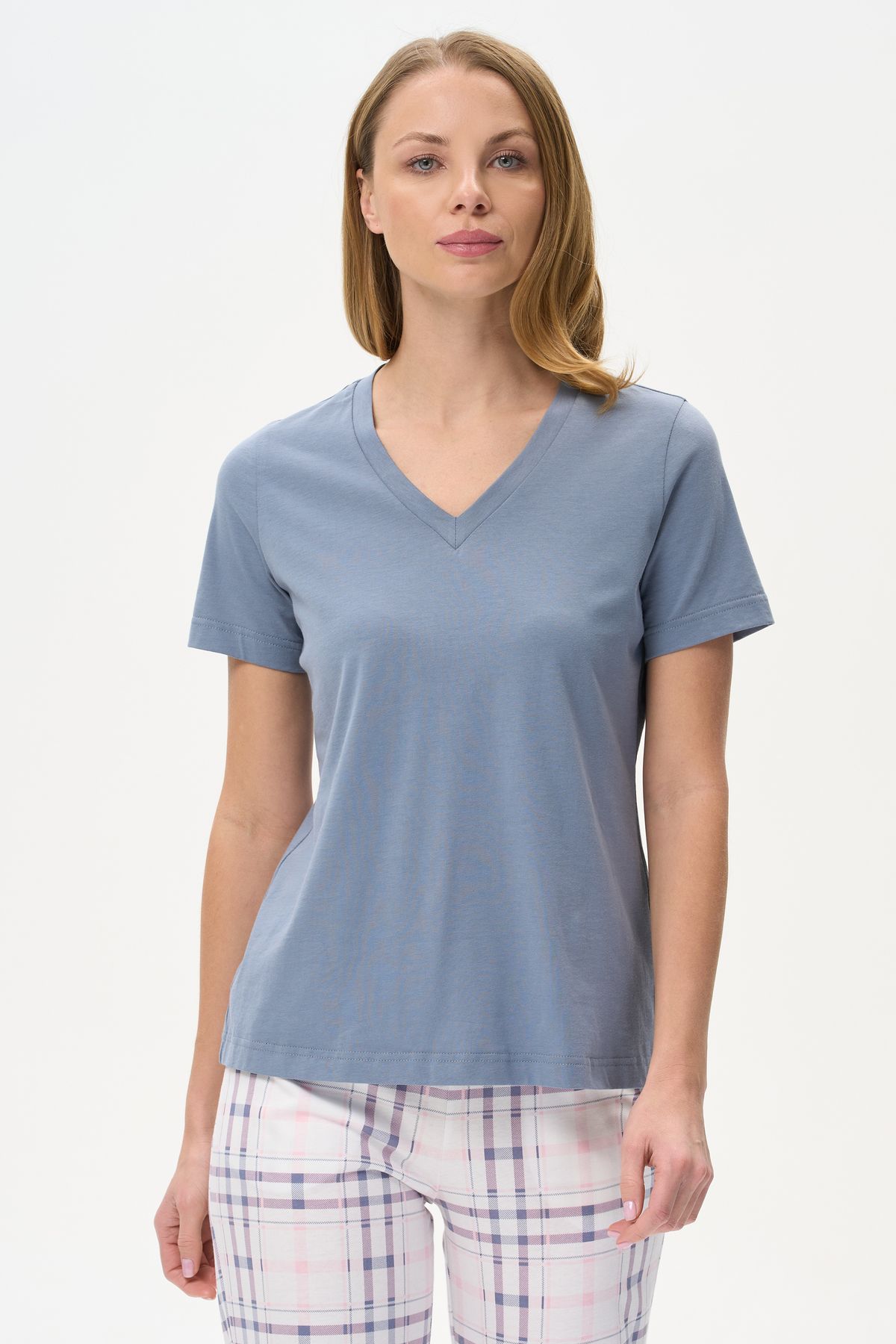 Описание: Футболка выполнена из хлопкового полотна. V-образный вырез горловины, короткие рукава. Рост модели на фото 175 см